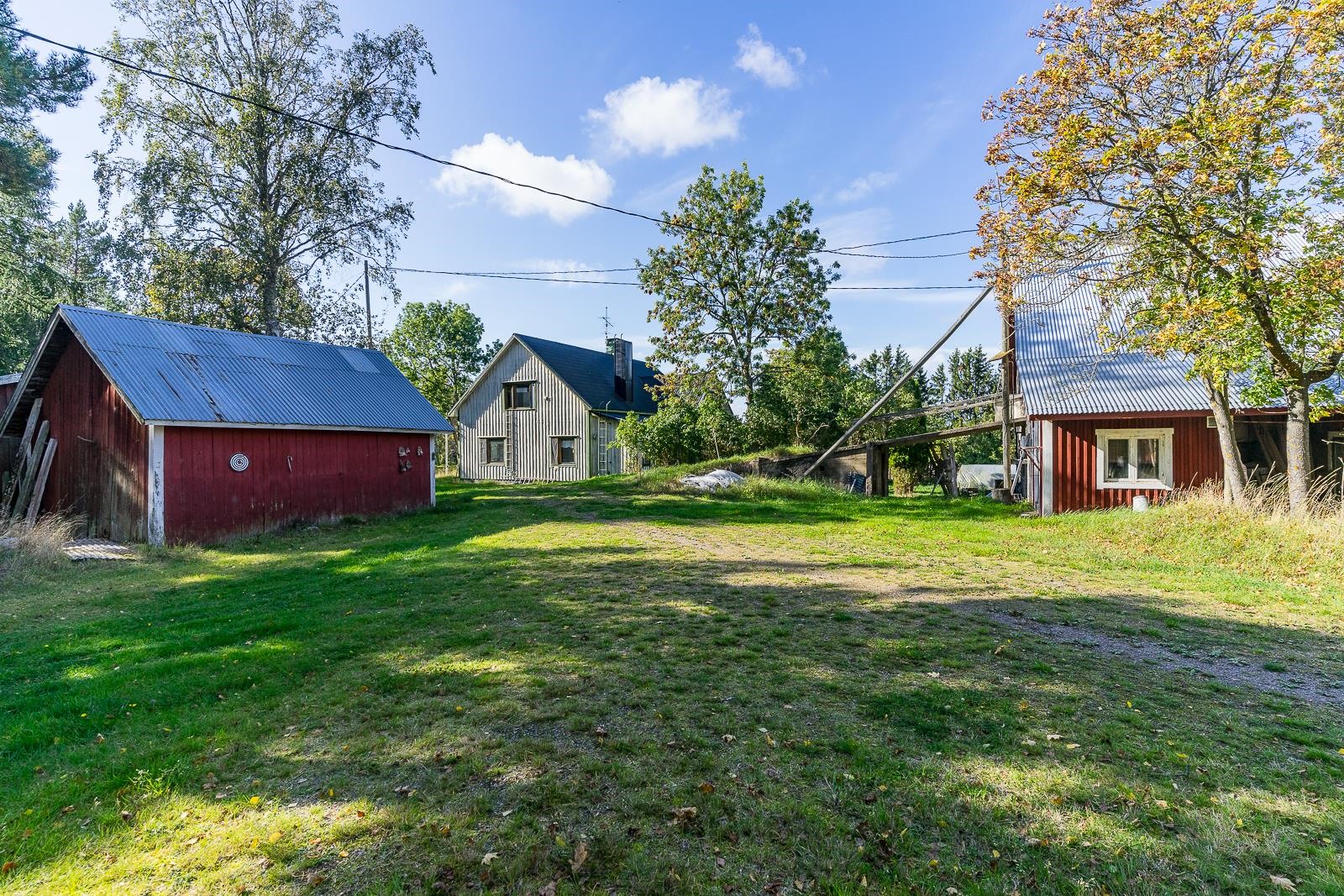 Vanhan tuvan ikkunasta avautuu merinäköala. Pihapiirissä on iso navettarakennus, vanha sauna, jossa 1 huone ja autotalli, erillinen autotalli sekä kaksi varastorakennusta. Lisäksi purkukuntoinen vaja. Rakennukset mahdollistavat useita käyttömahdollisuuksia. Piha on tasaista puutarhaa, jossa on omenapuita ja istutuksia.