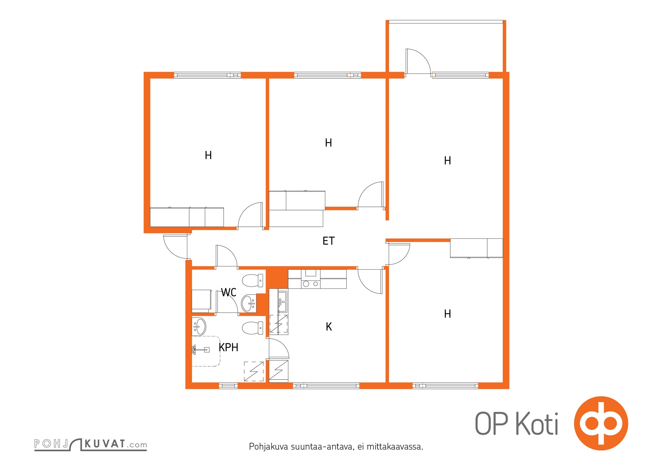 - 4h + k + wc + kph + lasitettu parveke (yht.j. 4h + k)