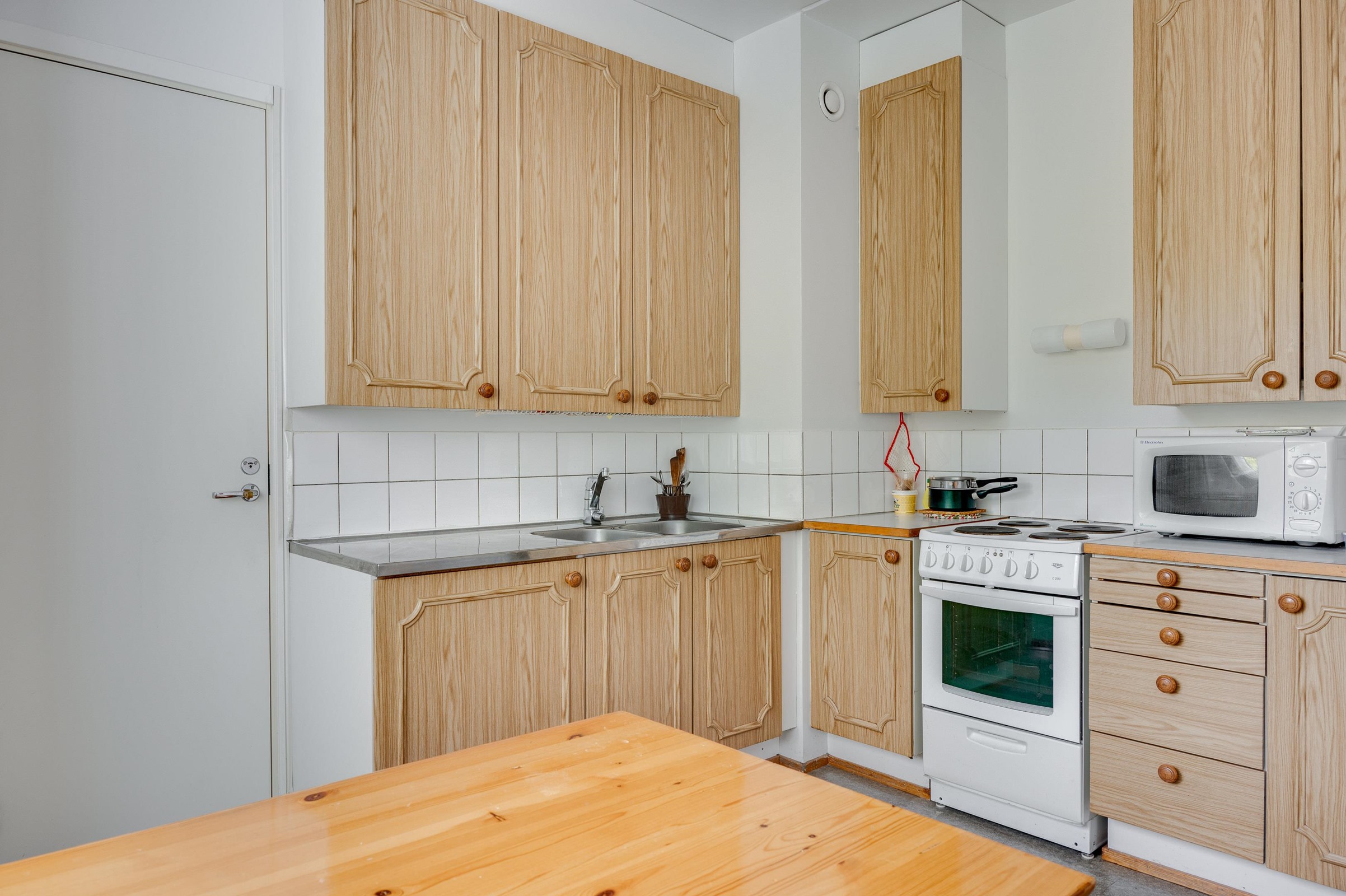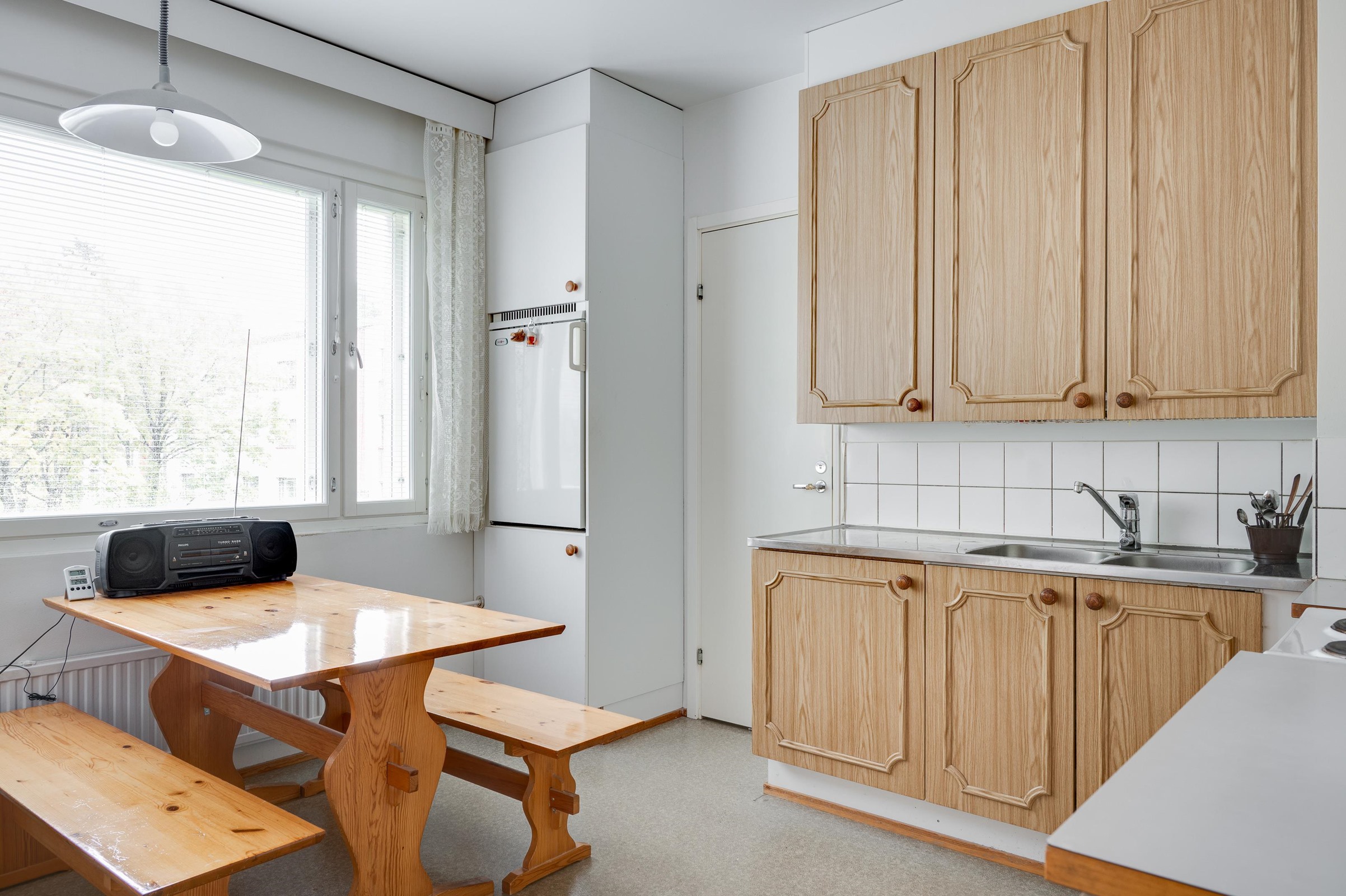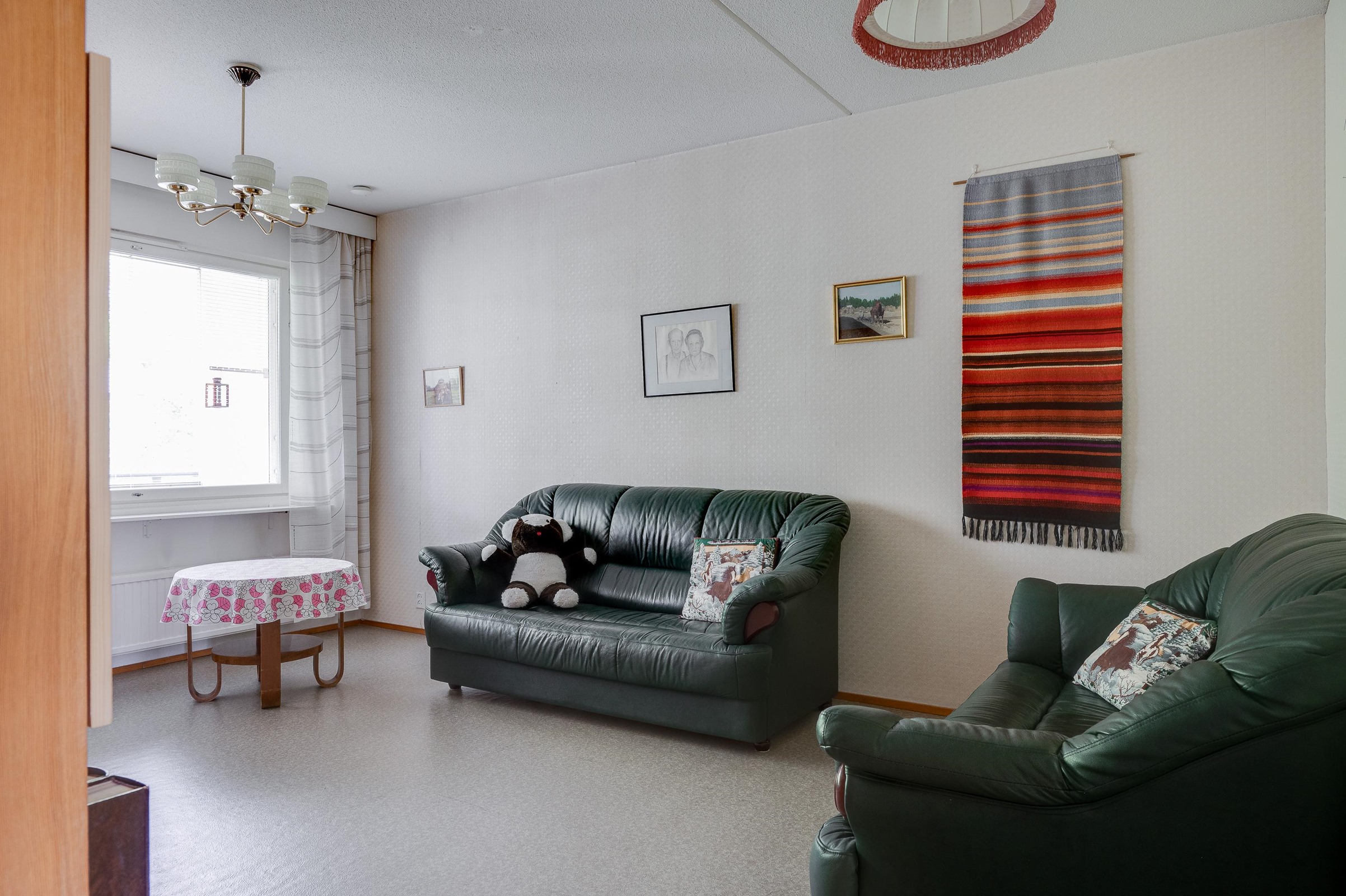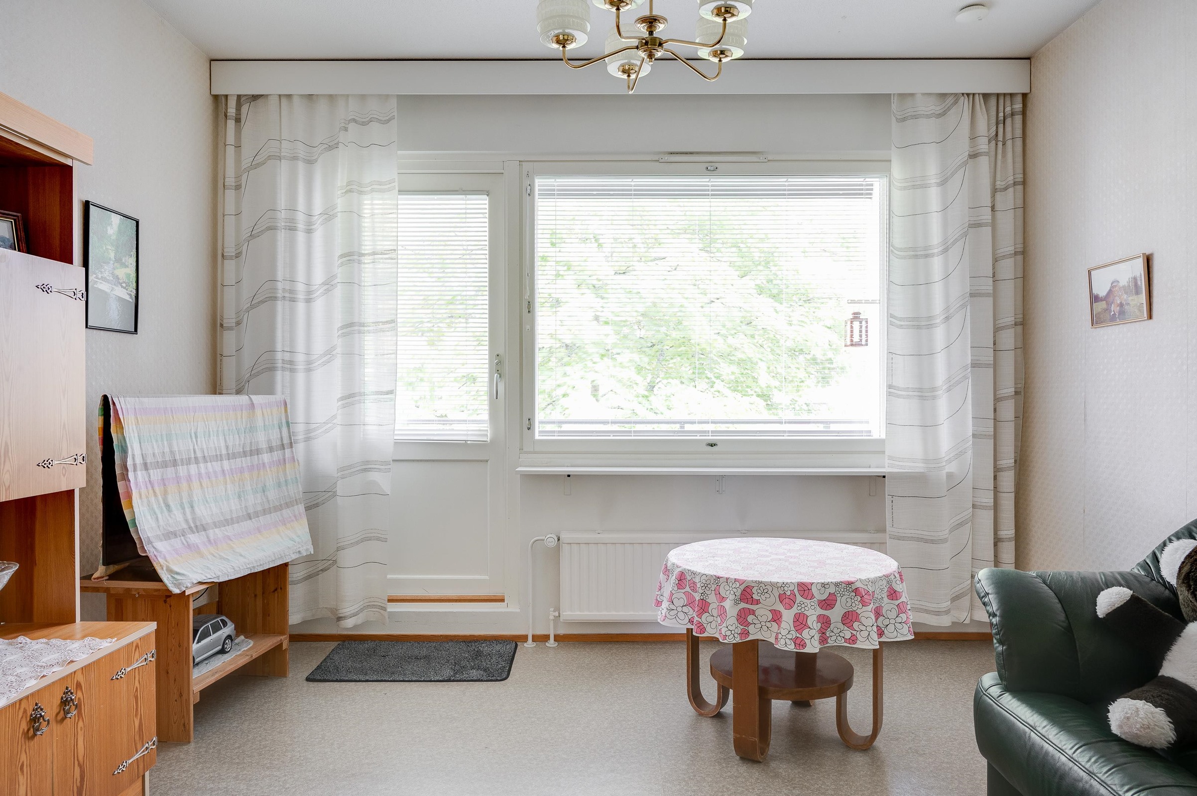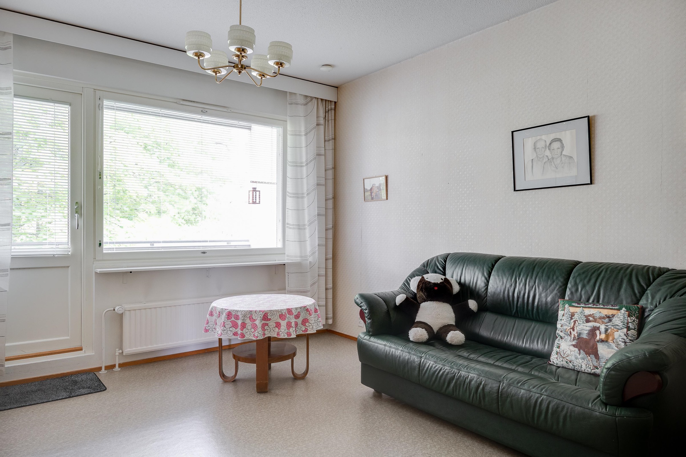 Asunnon huonejako on toimiva ja makuuhuoneet sijaitsevat erillään olohuoneesta. Lasitettu parveke tuo lisätilaa ja mahdollistaa oleilun myös sateisina päivinä.