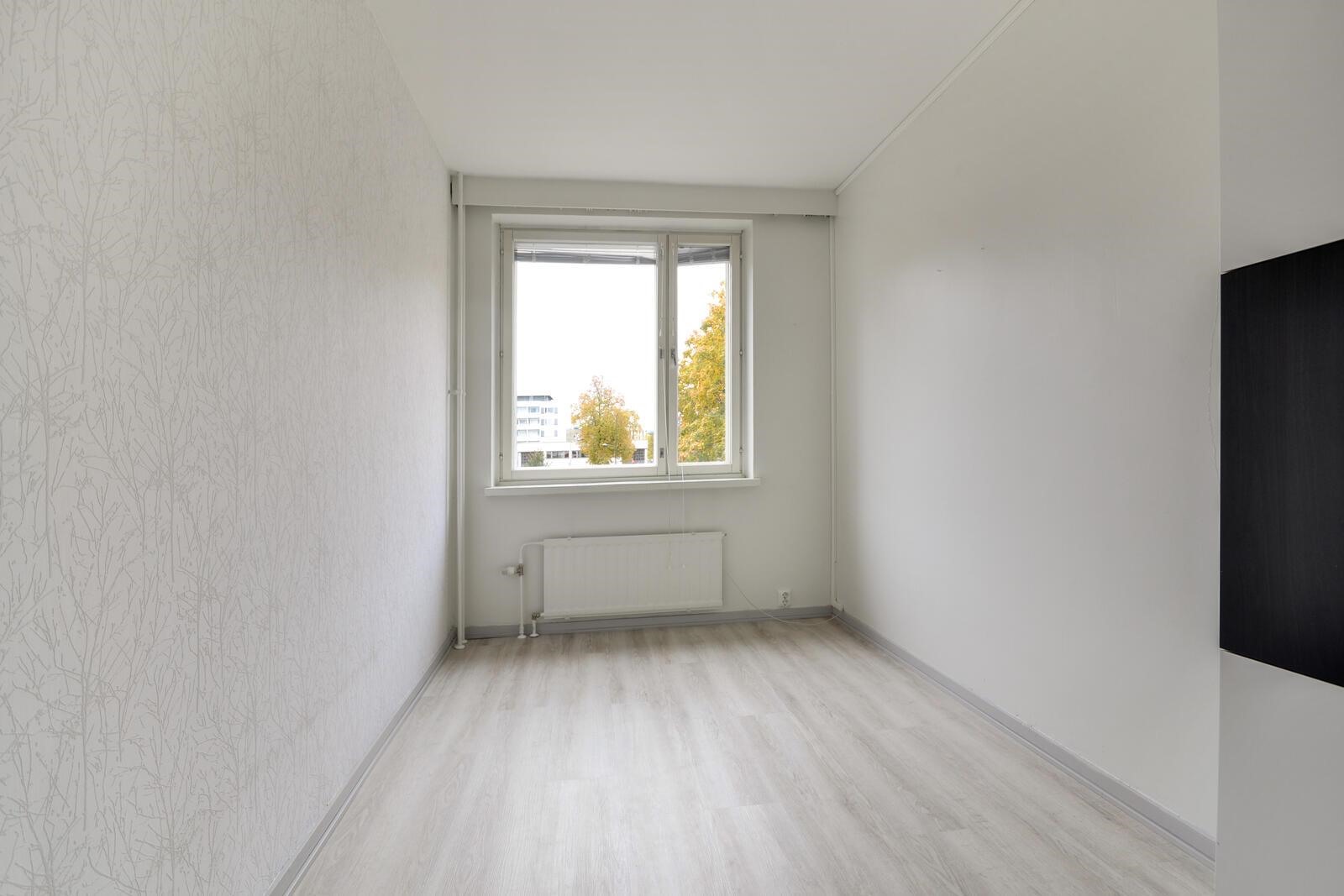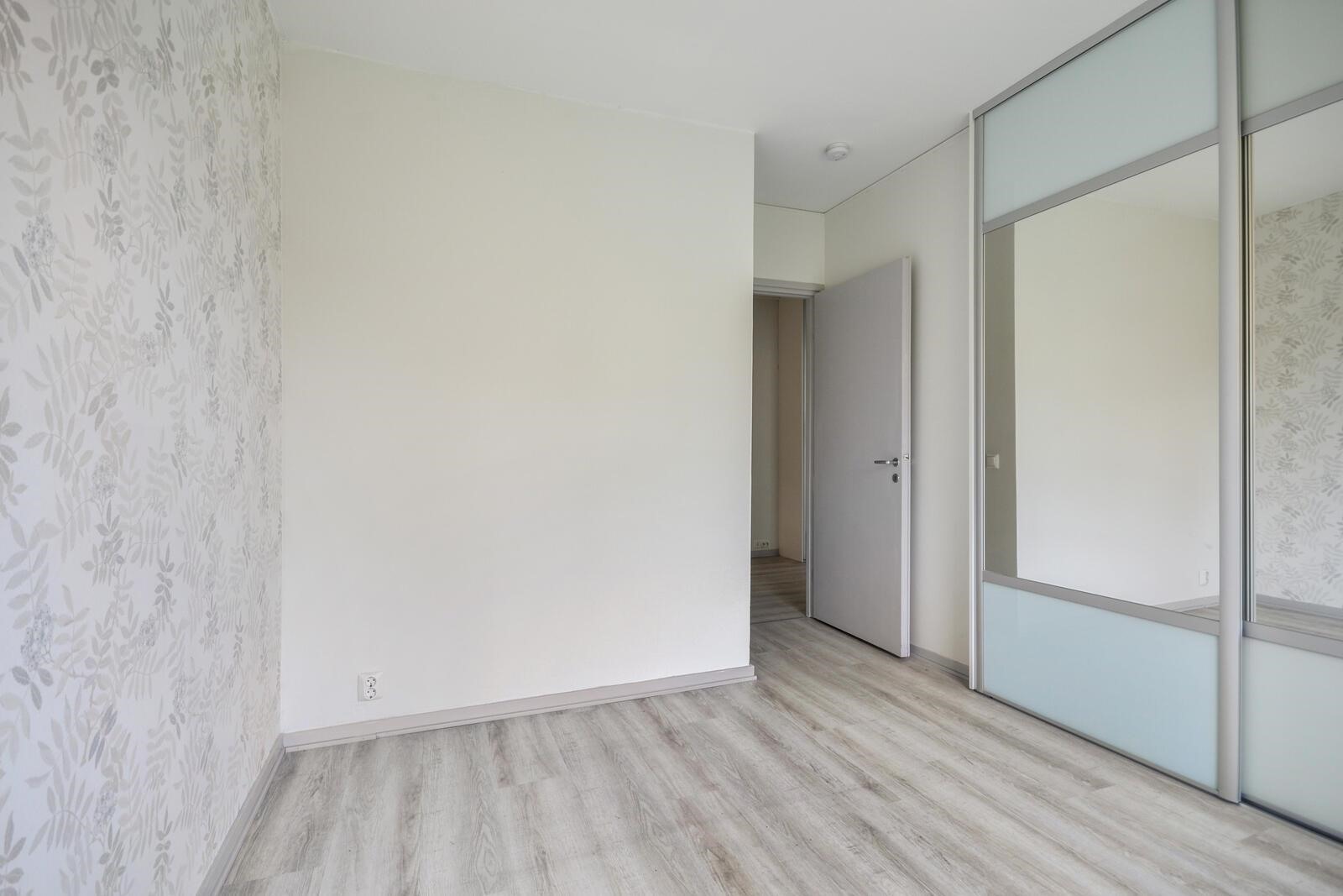 Keittiö: maalia, vinyylikorkki. Olohuone: tapettia/maalia, vinyylikorkki. Makuuhuone 1: tapettia/maalia, vinyylikorkki. Makuuhuone 2: tapettia/maalia, vinyylikorkki. Kylpyhuone: kaakelia, laattaa. Eteinen: maalia, vinyylikorkki.