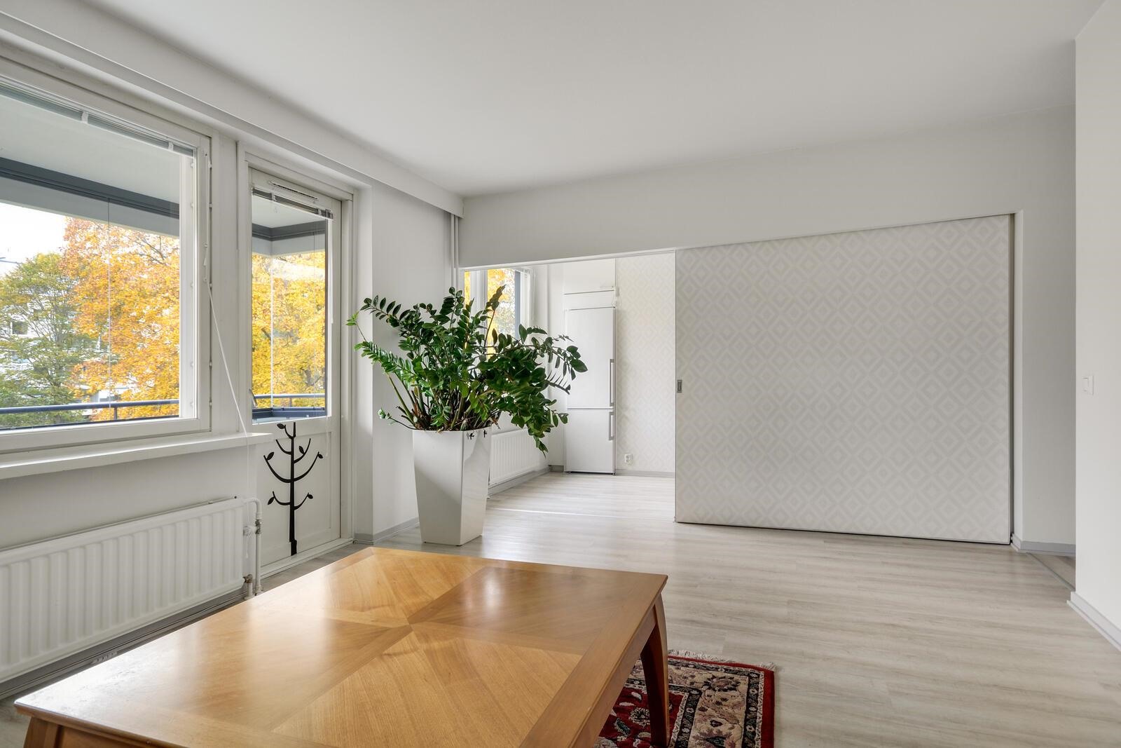 Tähän tunnelmalliseen kulmahuoneistoon varmasti ihastut, ihanat leveät ikkunalaudat, tilava lasitettu parveke sisäpihan puolelle ja harmooninen värimaailma huoneistossa.