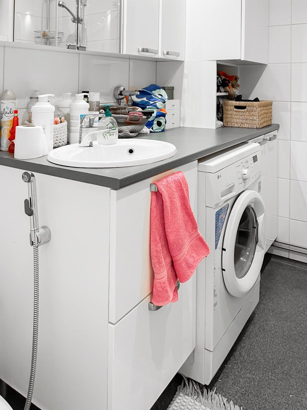- Kylpyhuone jossa wc, suihku, suihkukaappi, peilikaappi, kaapit, allaskaappi, pesukoneliitäntä, lattialämmitys, kiinteät valaisimet.