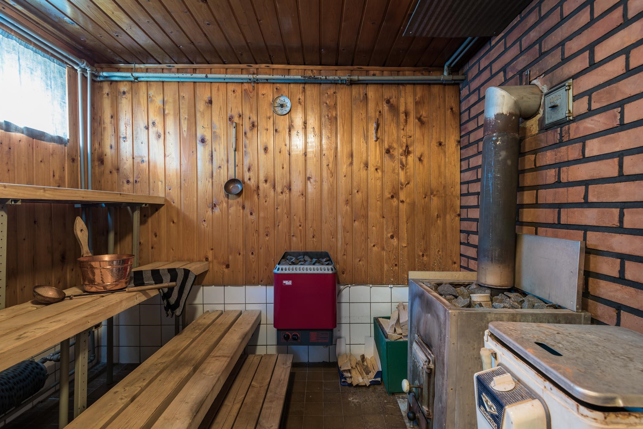 - Sauna, sähkökiuas, puukiuas, kylpyhuone, erillinen wc (3 kpl, joka kerroksessa), suihku, peilit, pesukoneliitäntä (kph). Kph ja sauna remontoitu 1990-luvulla.