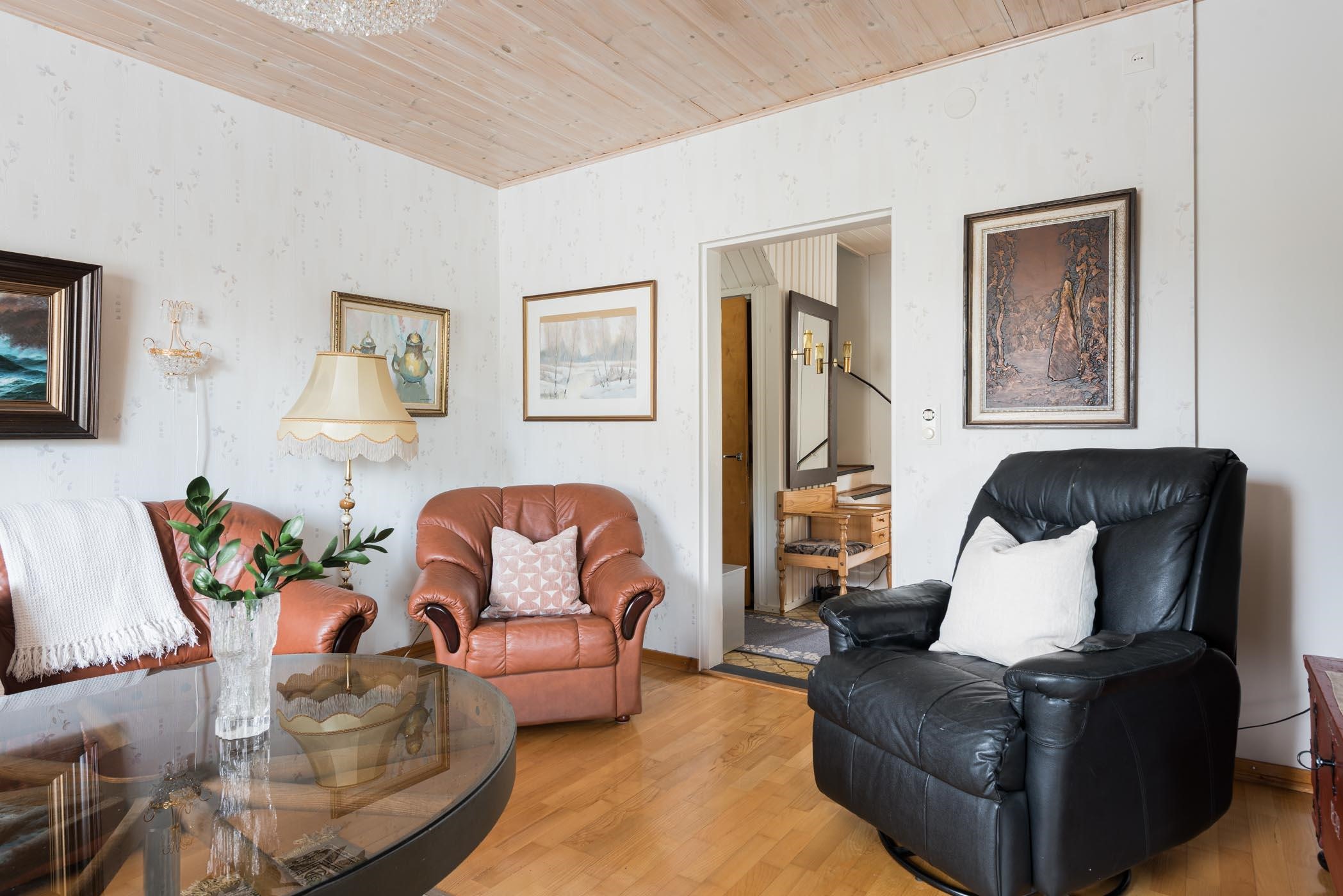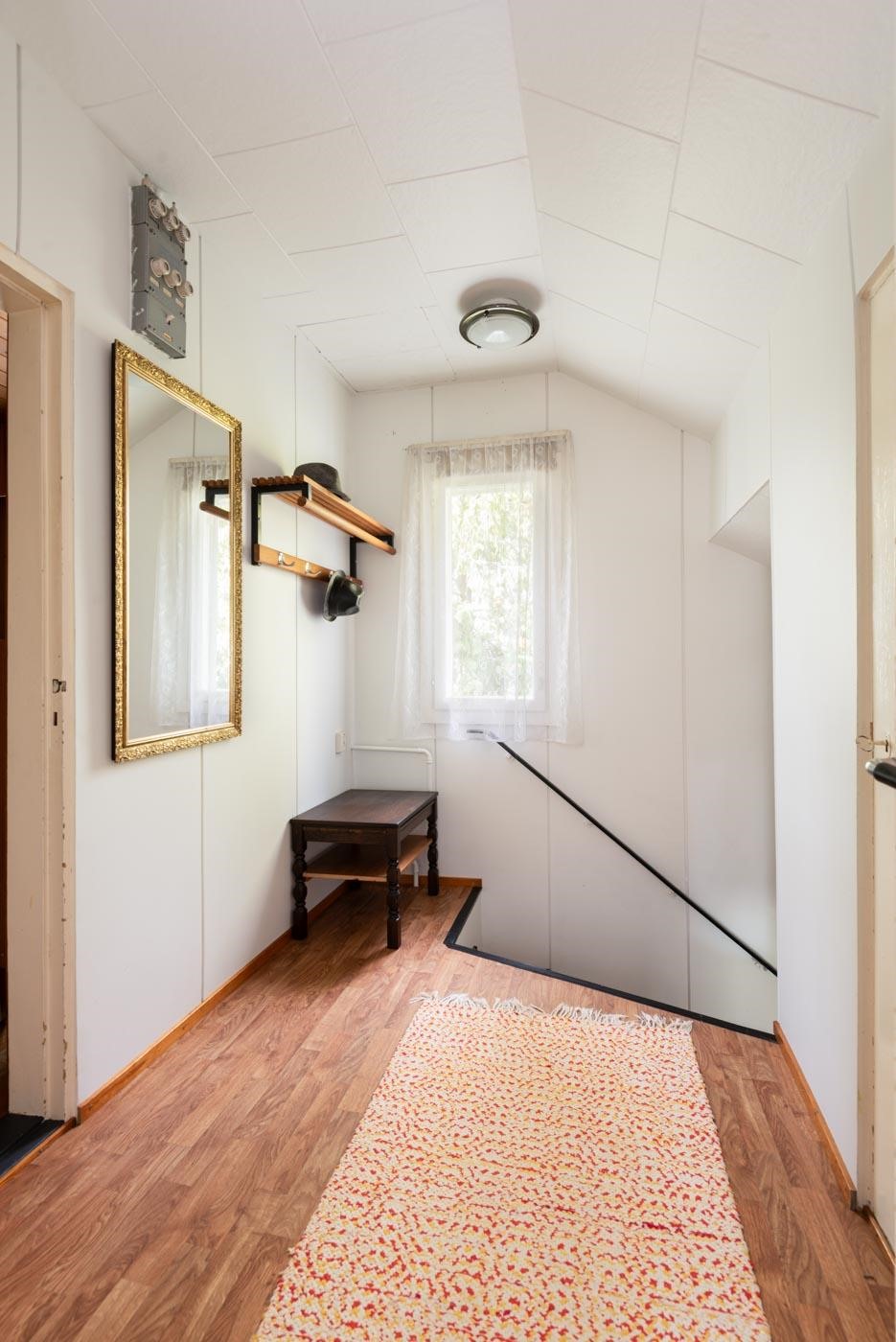 - Keittiö: maali, muovimatto. Olohuone: tapetti, parketti. Makuuhuone 1: paneeli, parketti. Makuuhuone 2: maali/tapetti, muovimatto. Sauna: paneeli/tiili, laatta. Kylpyhuone: laatta, laatta. Eteinen: paneeli, muovimatto. Wc: maali, muovimatto. Pukuhuone: paneeli, vinyyli. Alakerran 2. huone: tapetti, parketti.