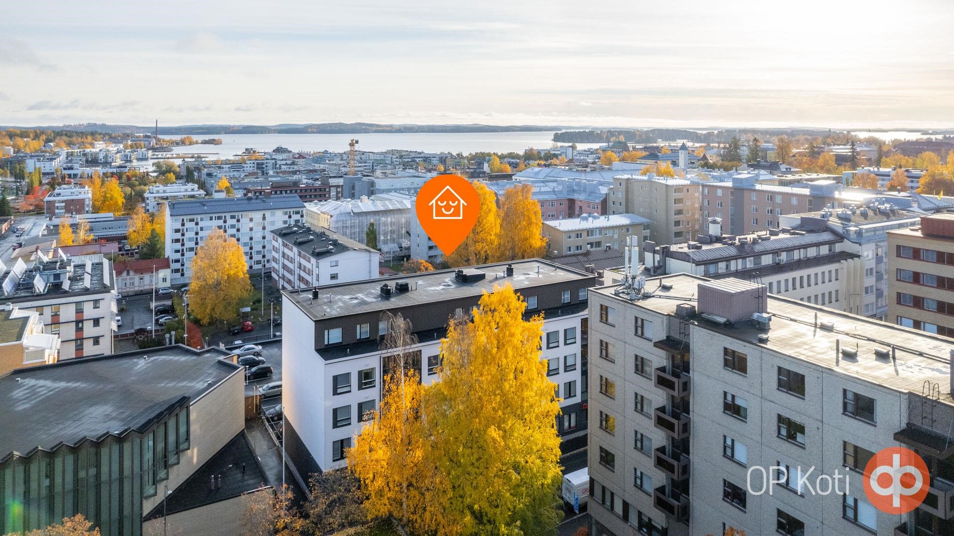 Tämä kaupunkikoti tarjoaa vaivattoman ja huolettoman arjen keskeisellä mutta rauhallisella paikalla kaupungin sydämessä. Kaikki palvelut, kuten tori, satama, museo, musiikkikeskus ja kirjasto, ovat vain kävelymatkan päässä. Linja-auto- ja rautatieasema ovat myös lähellä, mikä tekee matkalle lähtemisestä helppoa ja vaivatonta.