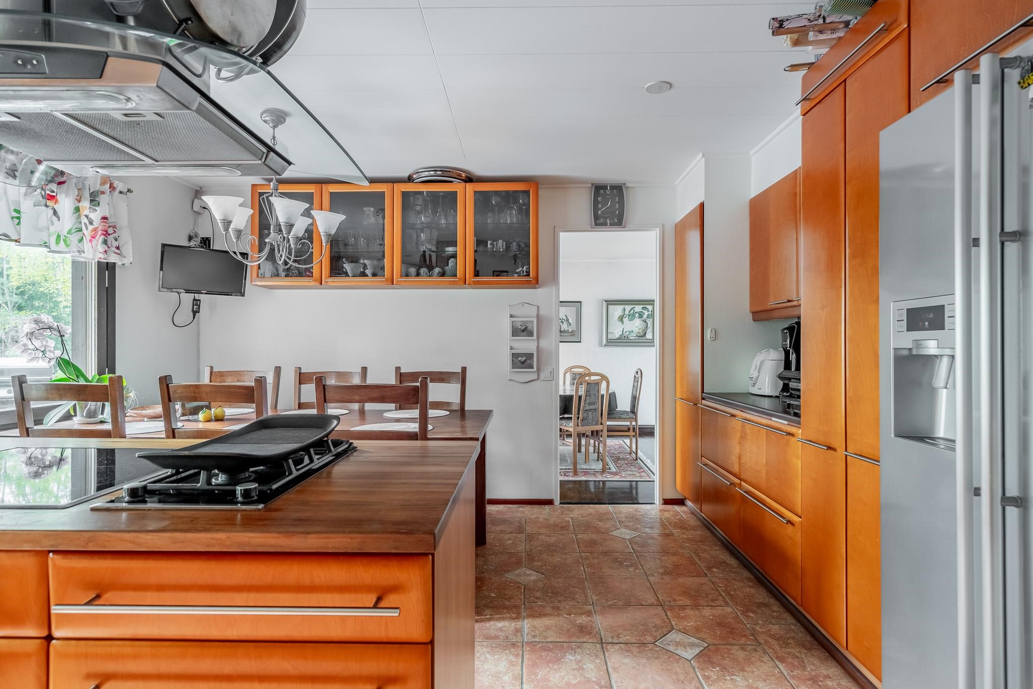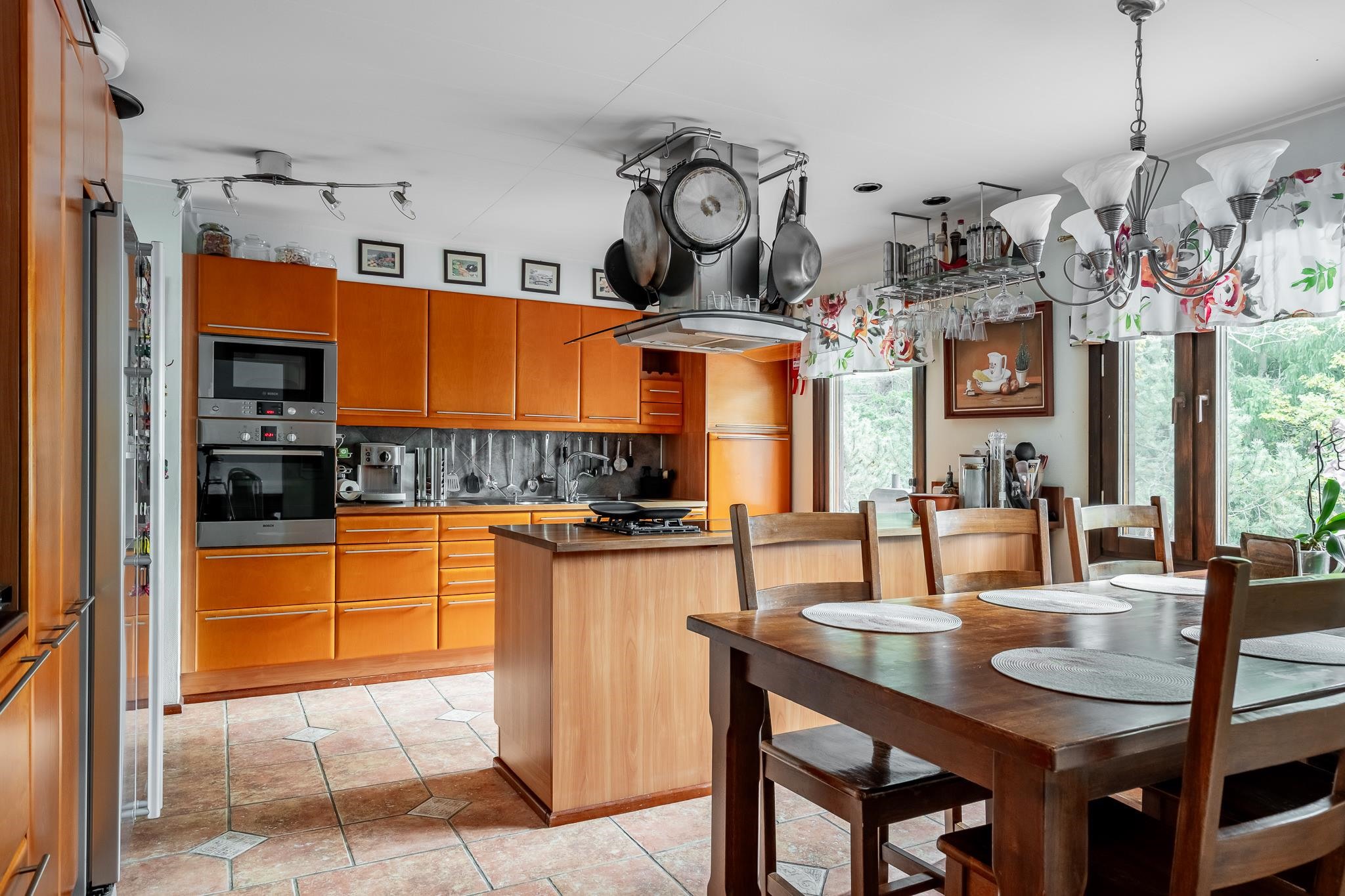 - Jääkaappipakastin jääpala ja vesi toiminnola, erillisuuni, keraaminen liesi 2, induktioliesi 2, kaasuliesi, liesituuletin rasvafiltteri ja suoraan taivaalle, mikroaaltouuni, astianpesukone, kaapistot, kiinteät valaisimet yläkaapien alla, pöytätasojen materiaali pähkinäpuu ja laminaatti. alakaapit ulosvedettävät sekä 2 "apteekki" kaappia