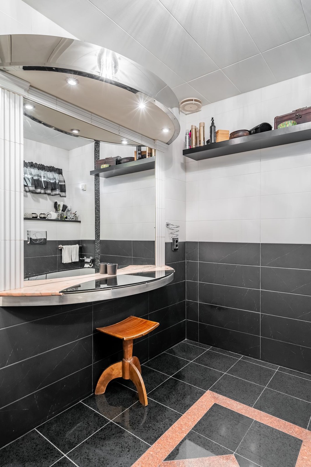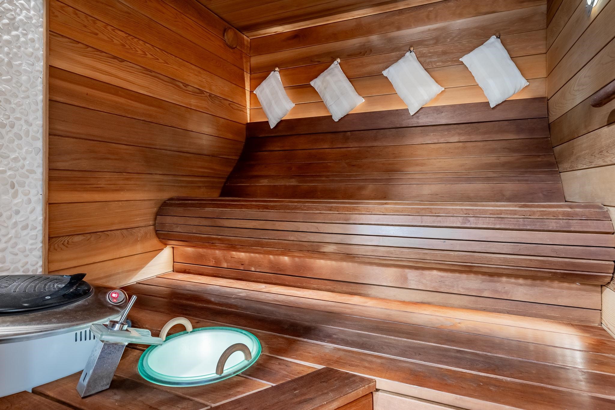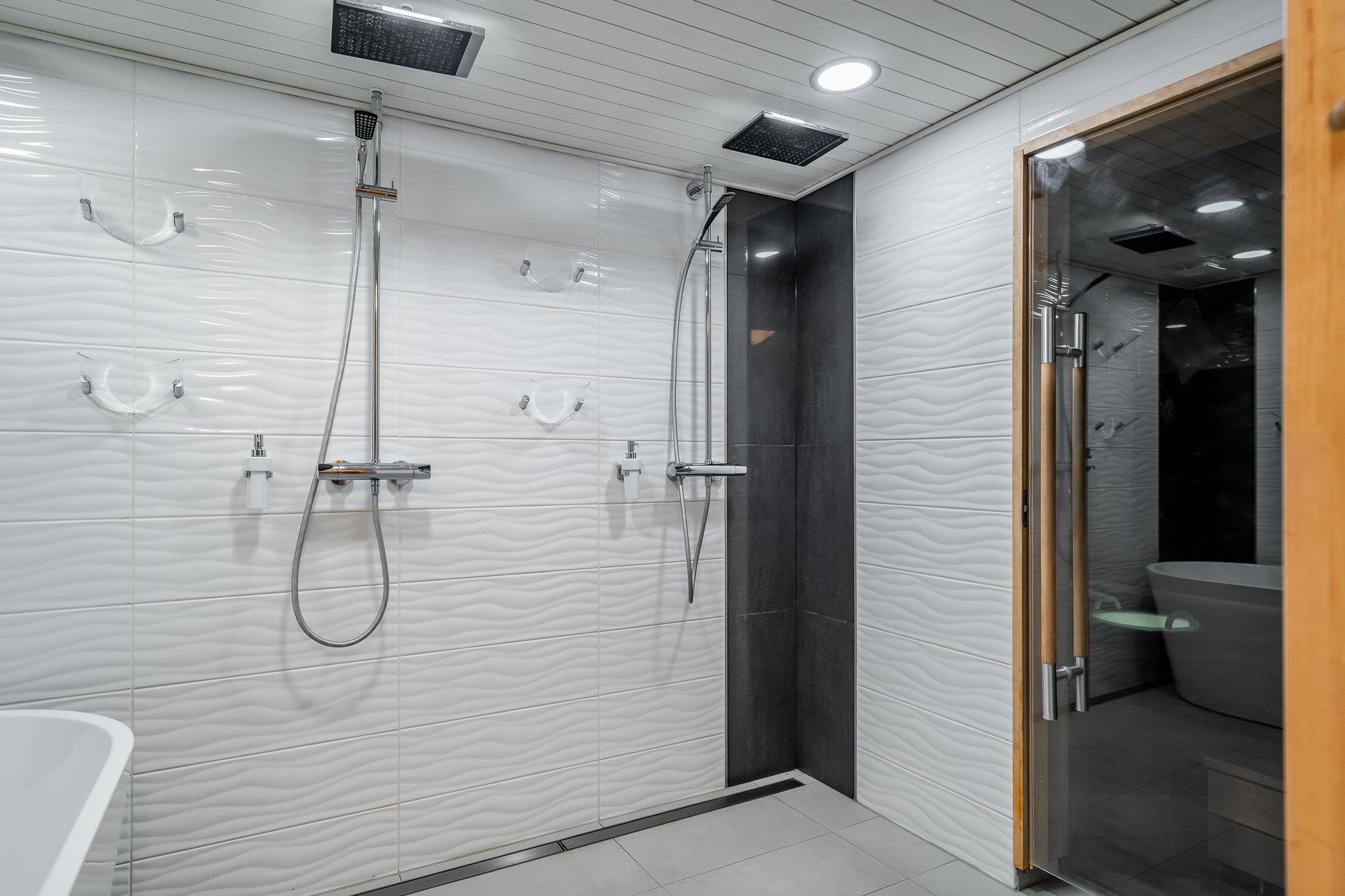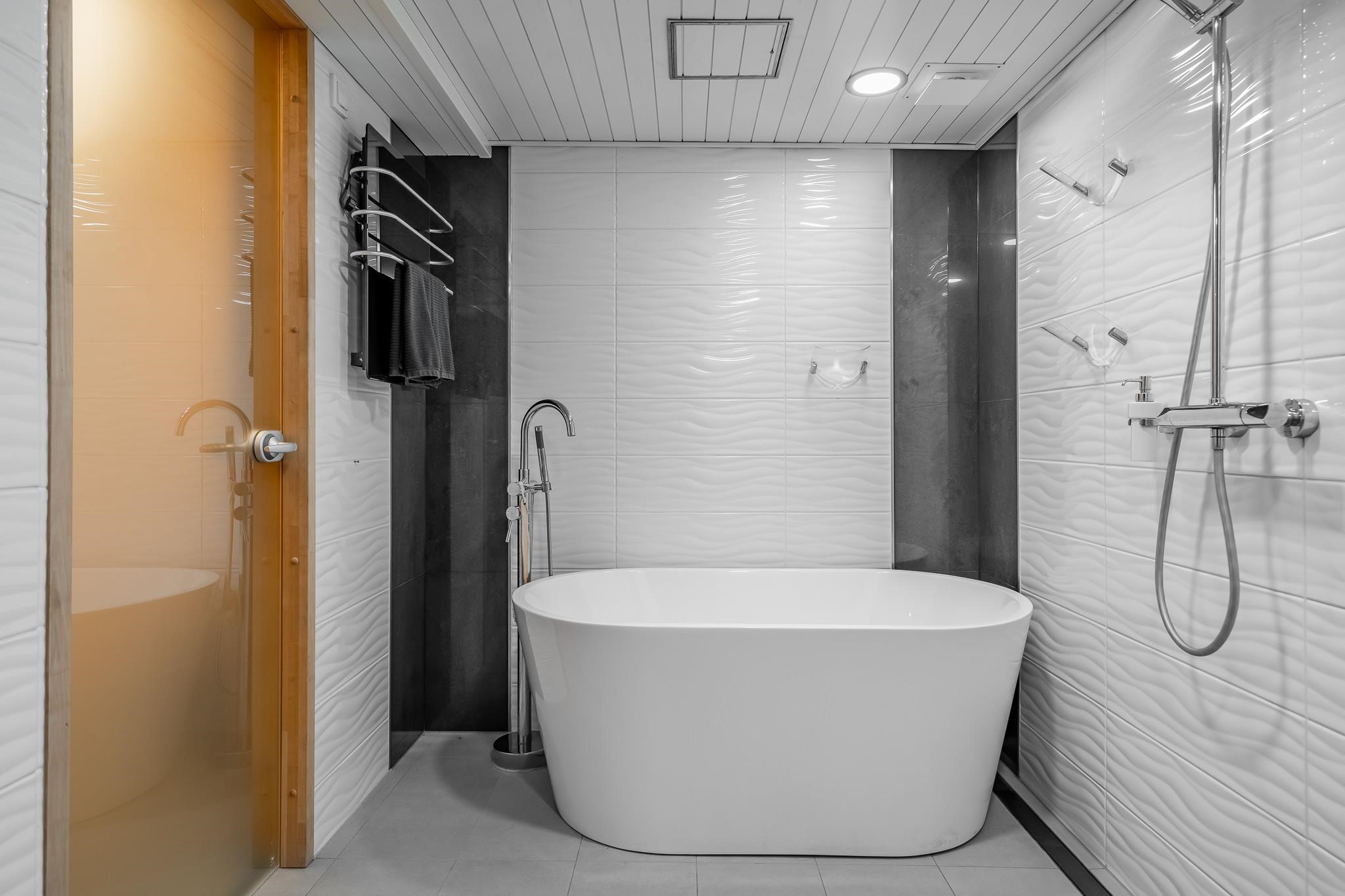 - Sauna muotolauteet, sähkökiuas aina valmis, upotettu ja integroitu vesipiste, kylpyhuone lattian kitkakerroin huomioitu, erillinen wc 2 kpl, suihku 2 kpl sadesuihku, amme, peilit, peilikaappi, kaapit, allaskaappi, lattialämmitys, kiinteät valaisimet. graniittilattia, marmorinen puuteripöytä, valaistus laatta, pöntöntausta marmoria + valaistus