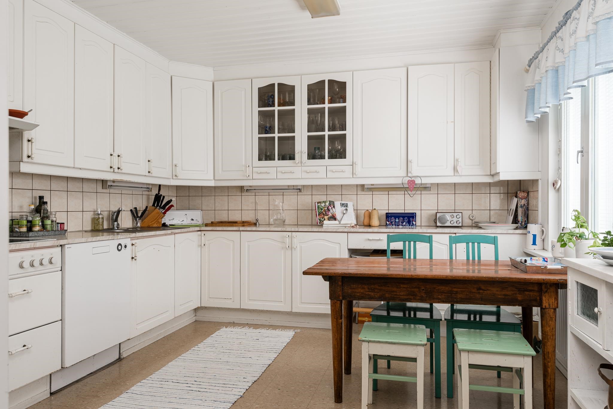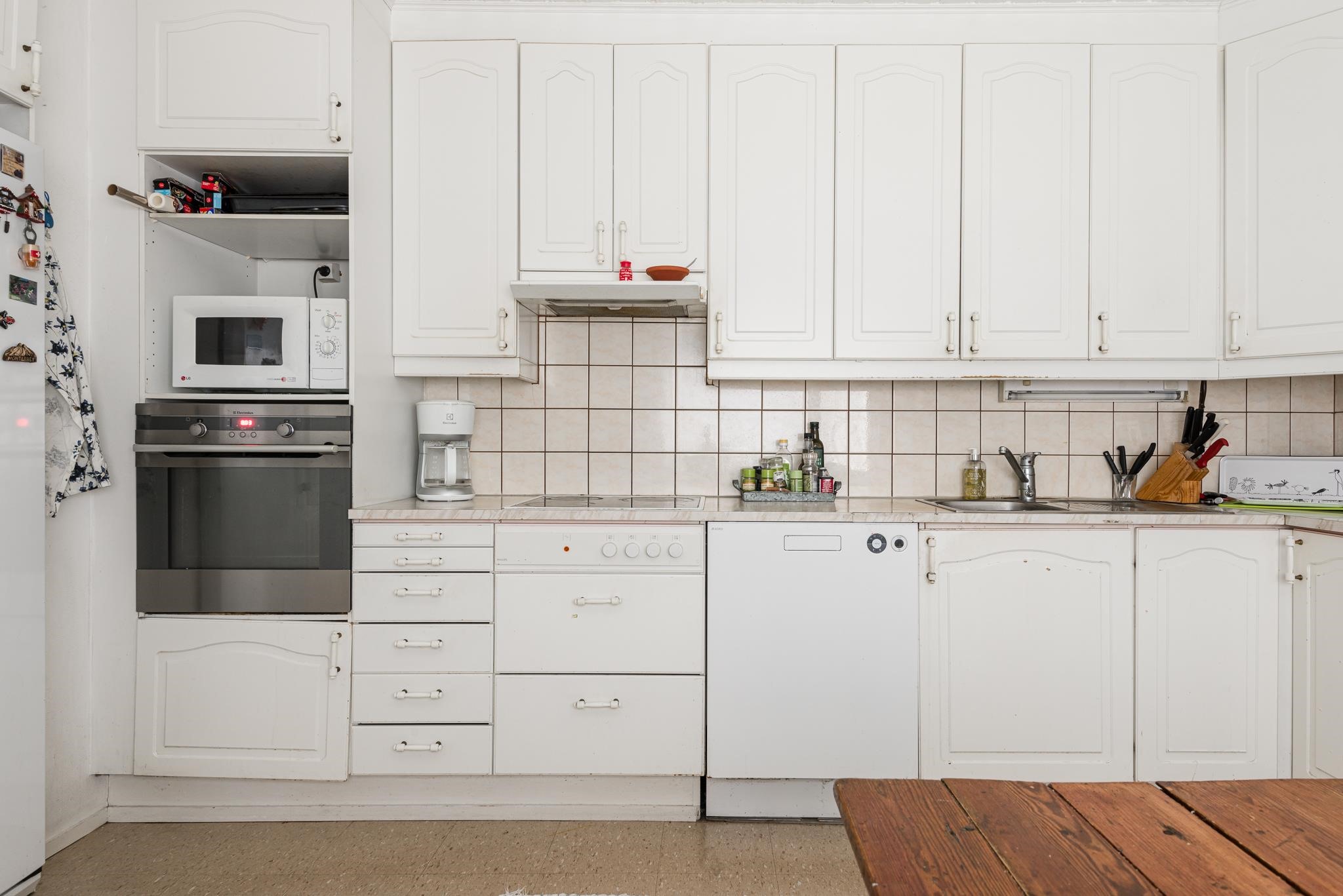 - Jääkaappi, pakastekaappi, keraaminen liesi, astianpesukone, kaapistot, kiinteät valaisimet.
