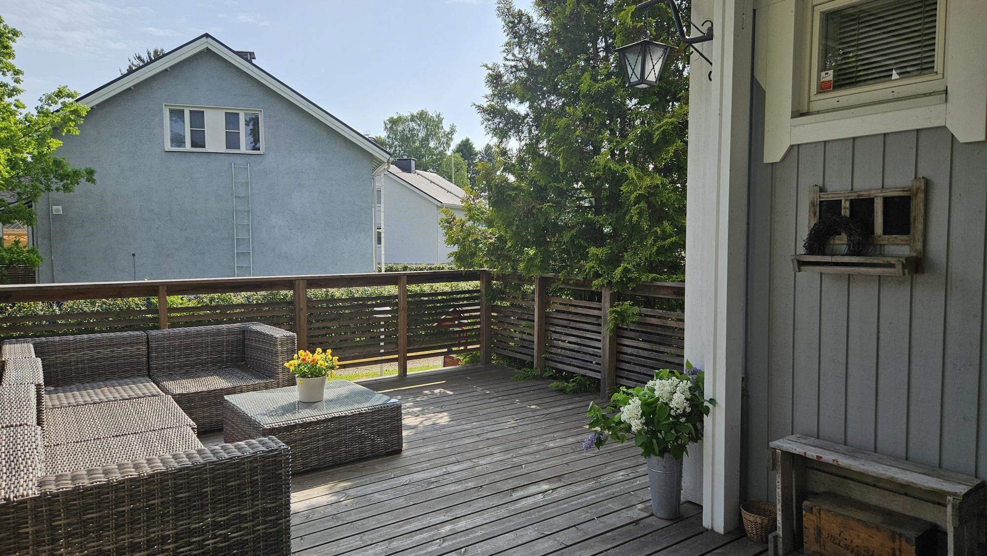 Tämä koti on kaunis ja runsaasti remontoitu. Kolmessa kerroksessa oleva koti tarjoaa enemmän kuin viralliset 105 m², kellarikerros on rakennettu viihtyisäksi asuintilaksi jossa avarat oleskelutilat, mh, khh, ja pesutilat sekä saunan. Oma tonttilla löytyy myös iso terassi, vehreä puutarha, autotalli ja puuvaja. Lapsille löytyy pelikenttää pihasta, ja Liinaharjan urheilumahdollisuudet ovat kävelymatkan päässä. Lämmitystä voi täydentää kätevästi puilla. Tämä koti täytyy kokea paikan päällä.