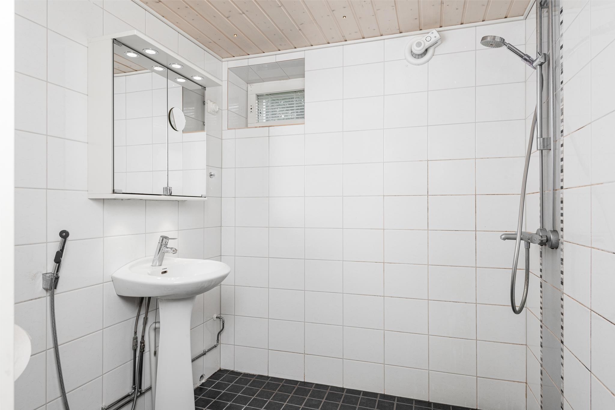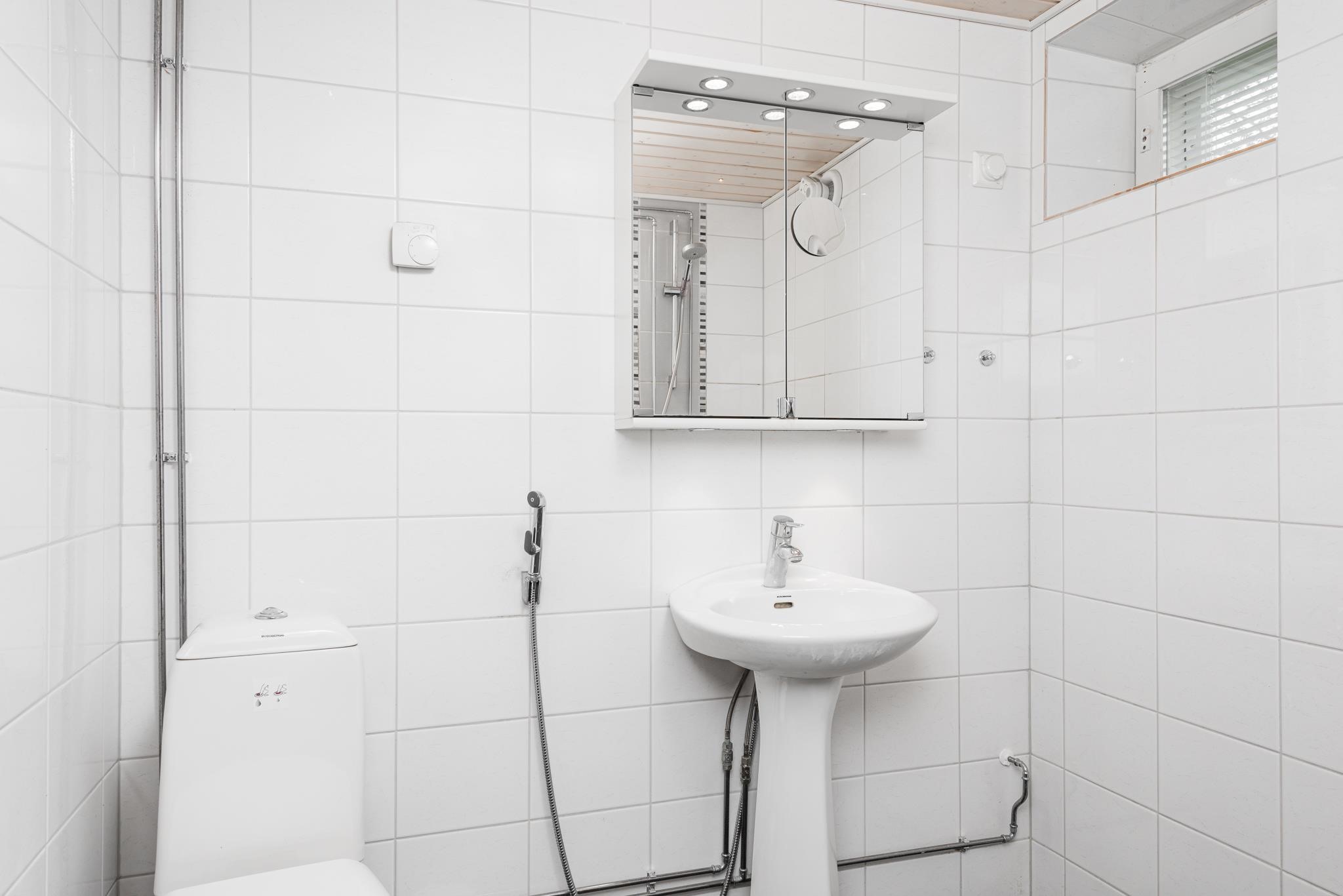 - Sauna, sähkökiuas, kylpyhuone, erillinen wc 3 kpl, suihku yläkertaan 2011, peilit, lattialämmitys, kiinteät valaisimet. Uusittu kaikkineen 2011.