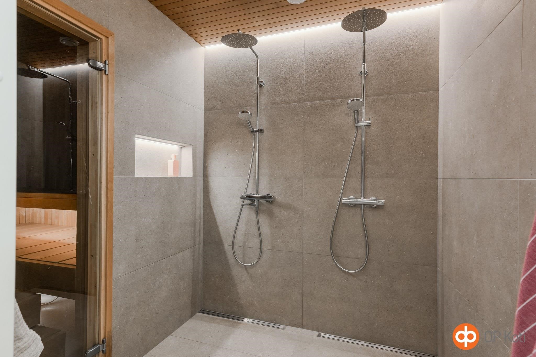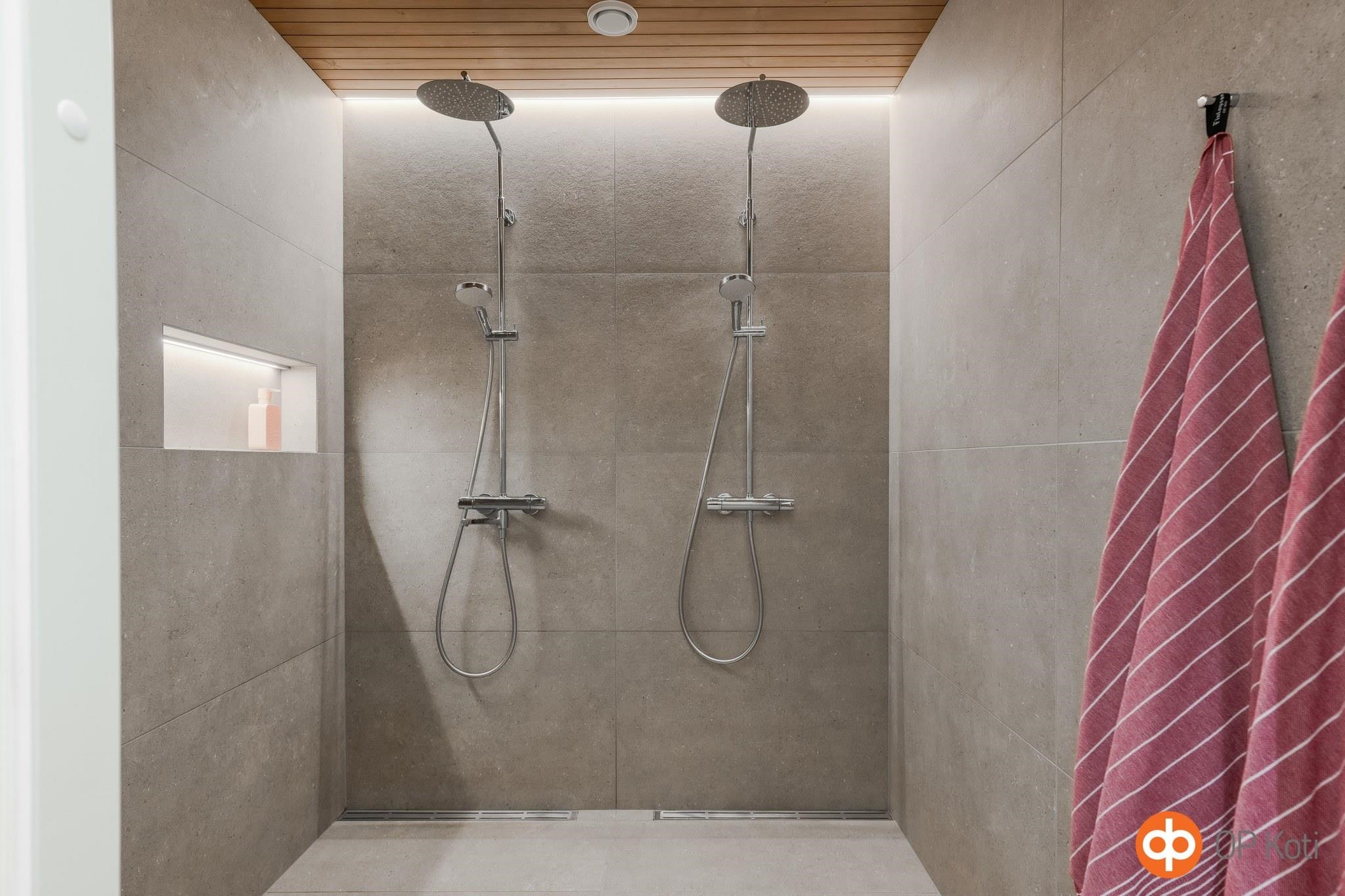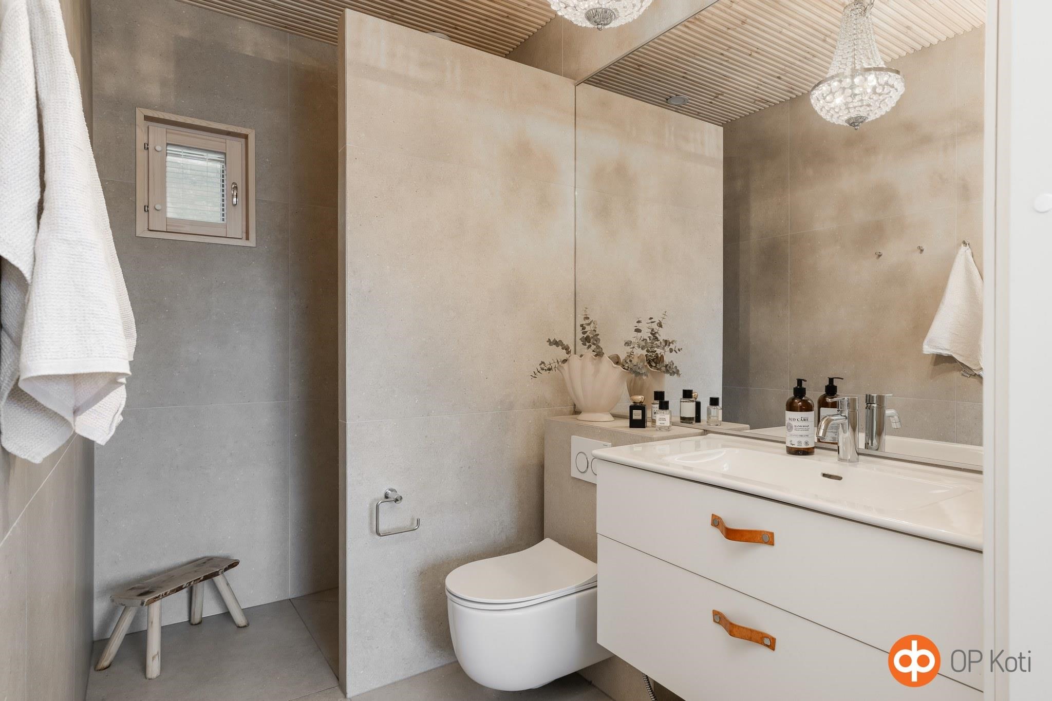 - Sauna, sähkökiuas, kylpyhuone, erillinen wc, suihku, amme yläkerran kph, peilit, pesukoneliitäntä, lattialämmitys, kiinteät valaisimet.