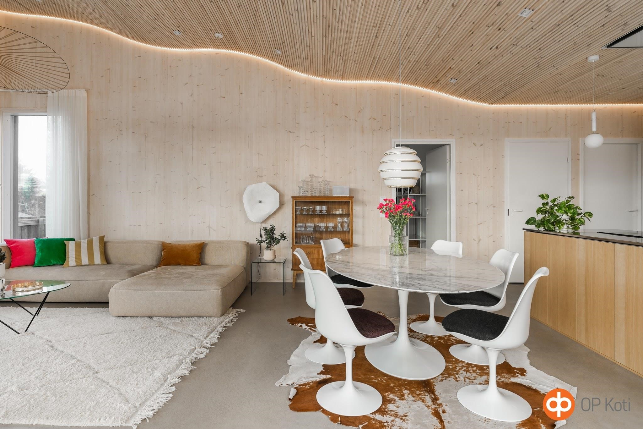 Nyt myynnissä vuonna 2022 valmistunut moderni ja ainutlaatuinen koti, joka on suunniteltu huolella ja rakennettu ammattitaidolla. Arkkitehdin itselleen suunnittelema ja rakentama koti on kontrastien leikkiä, jossa yksityisyys ja avoimuus, kylmyys ja lämpö, tumma ja vaalea, rosoisuus ja pehmeys, kompaktius ja avoimuus sekä kulmikkuus ja aaltoilevuus kohtaavat. Talon arkkitehtuuri on Alvar Aallon vaikutteiden inspiroima, mutta samalla se on oma ainutlaatuinen kokonaisuutensa.