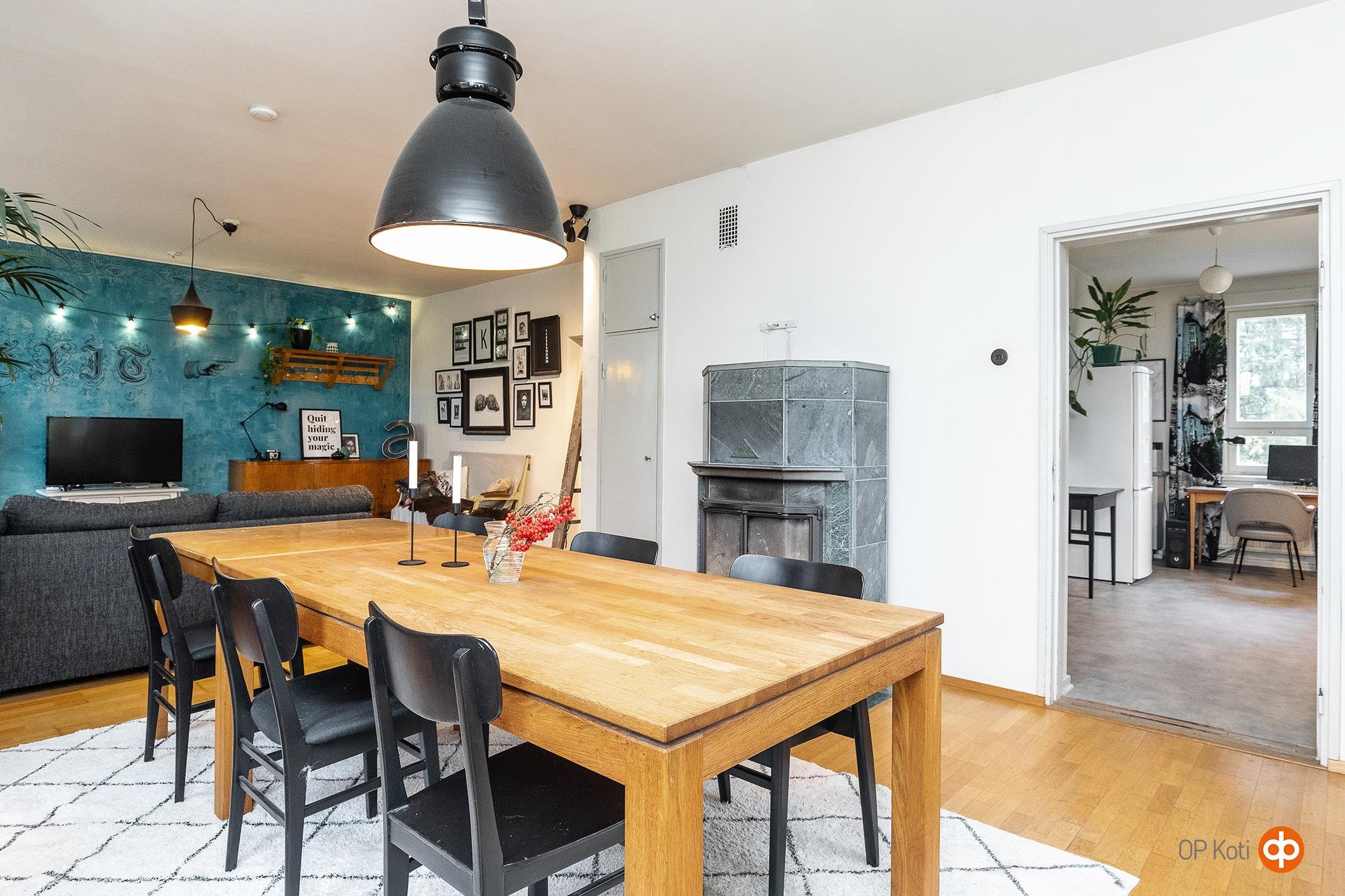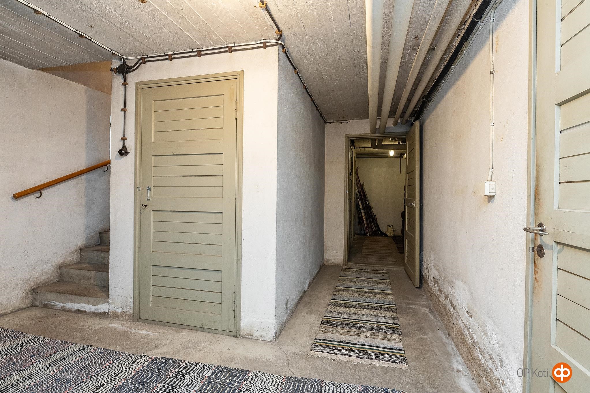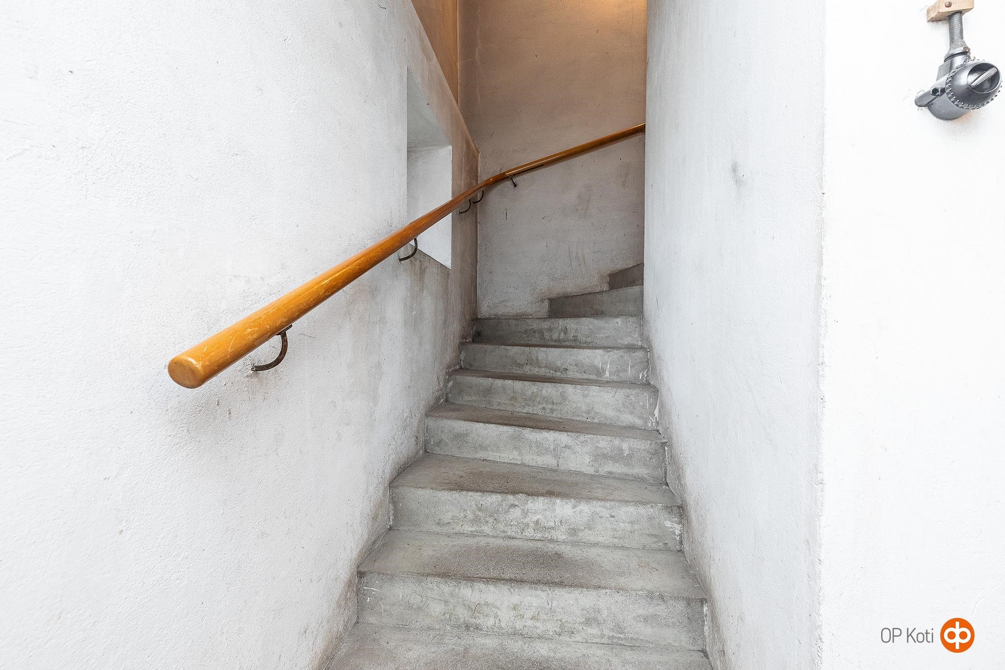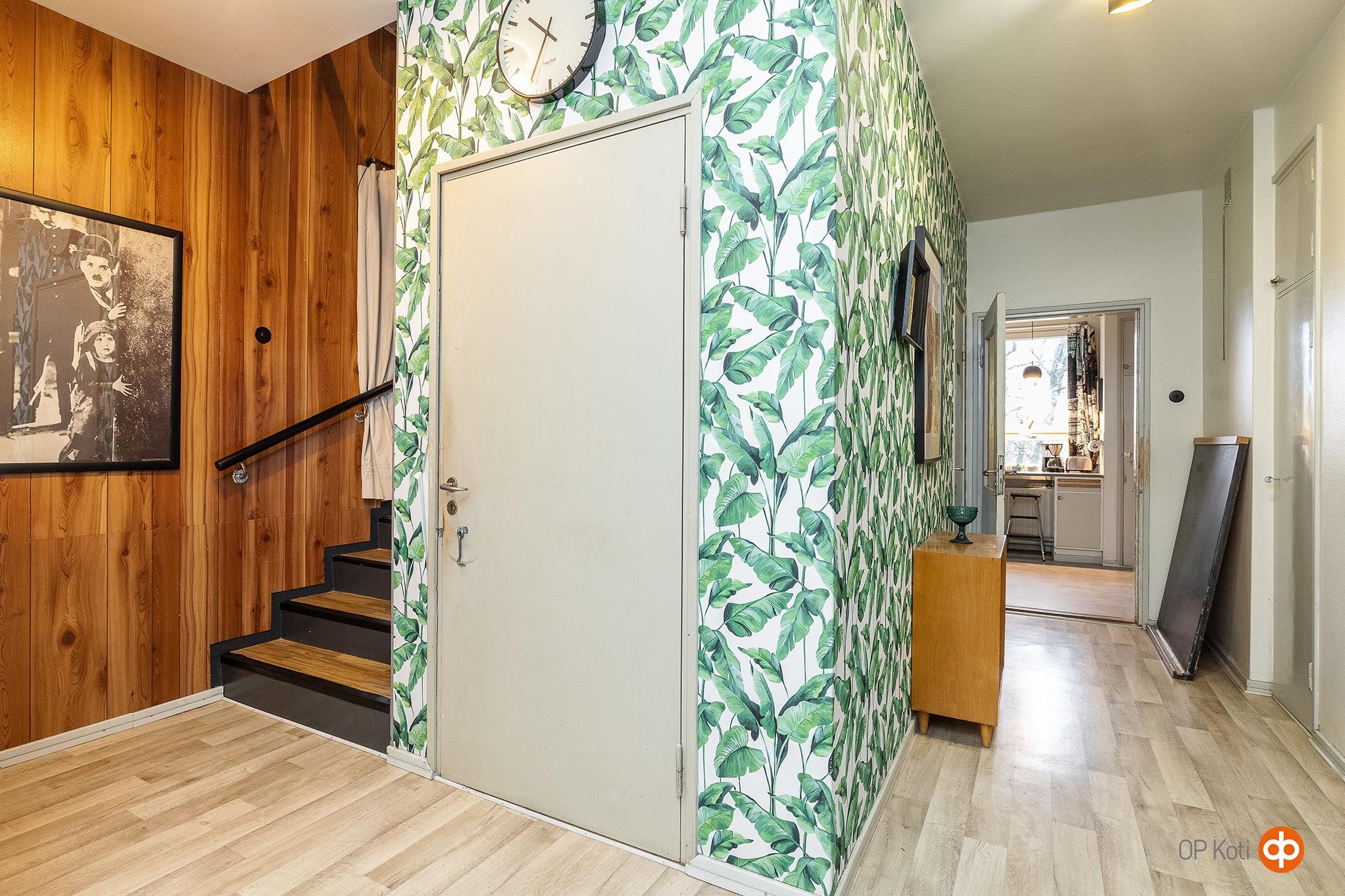 Reilunkokoinen kolmen makuuhuoneen asunto sijaitsee kahdessa kerroksessa. Alakerrassa on tilava ja valoisa olohuone varaavalla takalla ja persoonallinen keittiö. Yläkerrassa kolme makuuhuonetta ja molemmissa kerroksissa omat wc:t. Kellari on auki koko rakennuksen mitalta ja siellä on pesutilojen ja saunan lisäksi monenlaisia varastotiloja ja huoltotiloja. Pesukonevaraus on kellarissa pesutuvassa. Yläkerrassa on runsaasti ullakkotilaa. Öljylämmityksen vaihtamiseen ekologisempaan energiamuotoon saa korotettua kotitalousvähennystä vielä vuoteen 2027 saakka.