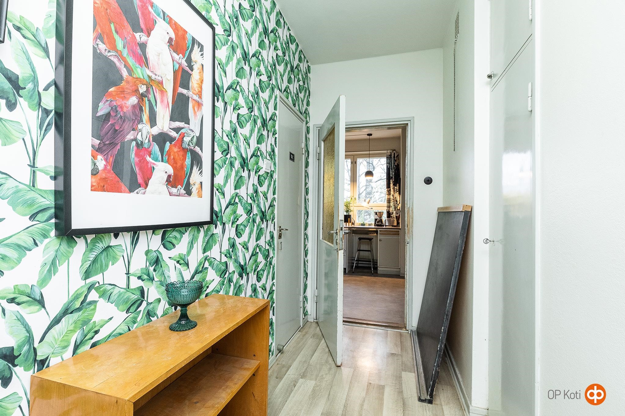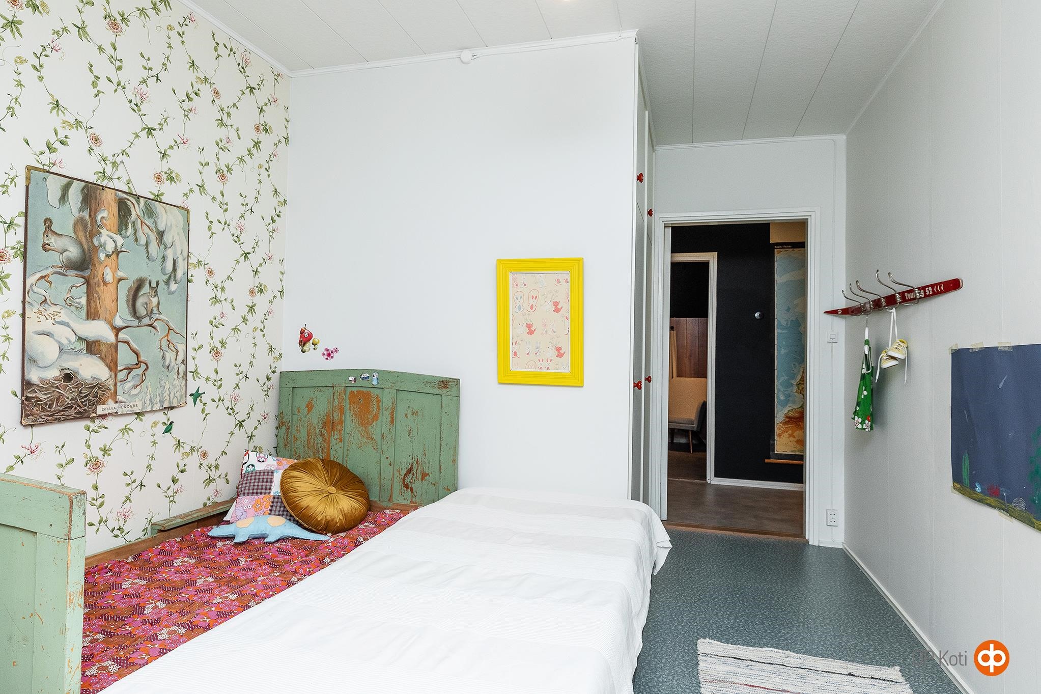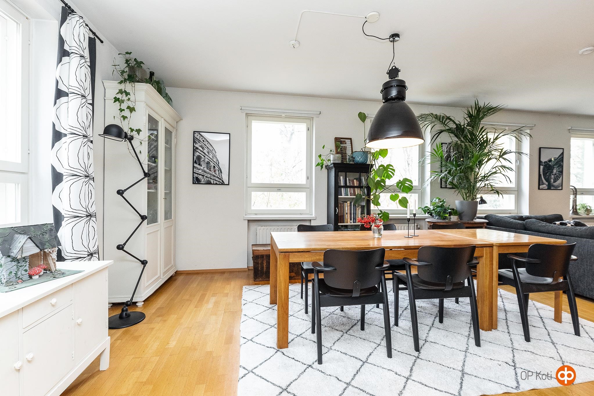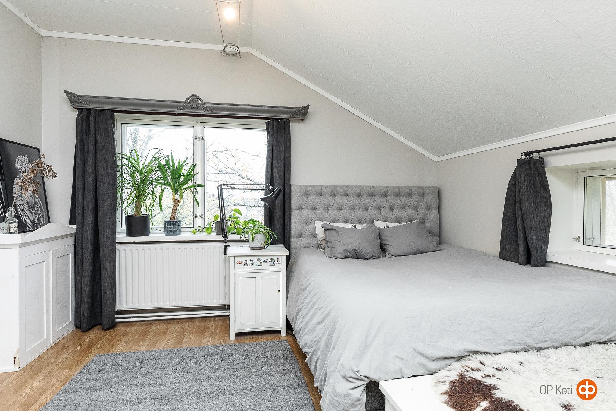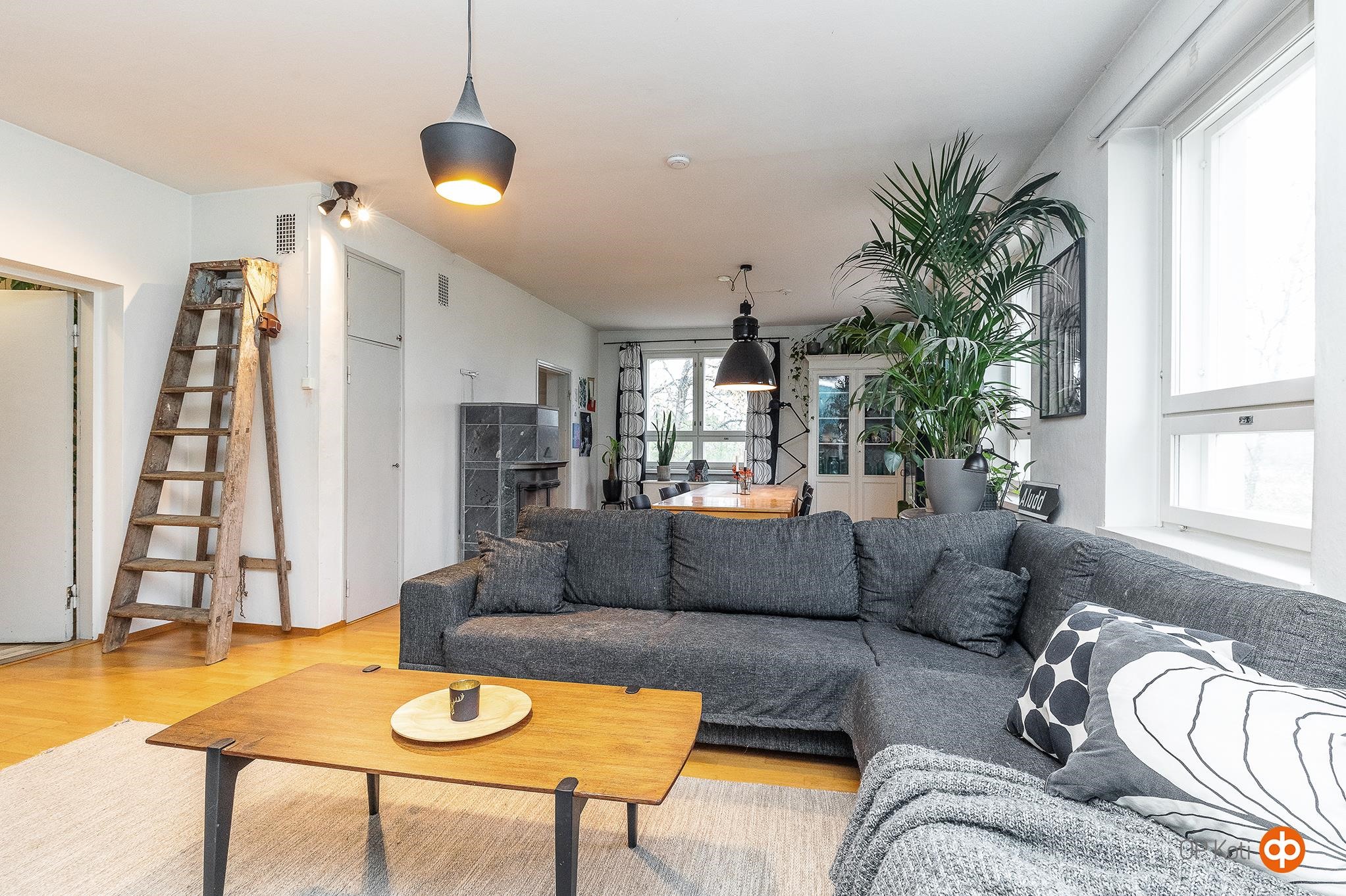 Reilunkokoinen kolmen makuuhuoneen asunto sijaitsee kahdessa kerroksessa. Alakerrassa on tilava ja valoisa olohuone varaavalla takalla ja persoonallinen keittiö. Yläkerrassa kolme makuuhuonetta ja molemmissa kerroksissa omat wc:t. Kellari on auki koko rakennuksen mitalta ja siellä on pesutilojen ja saunan lisäksi monenlaisia varastotiloja ja huoltotiloja. Pesukonevaraus on kellarissa pesutuvassa. Yläkerrassa on runsaasti ullakkotilaa. Öljylämmityksen vaihtamiseen ekologisempaan energiamuotoon saa korotettua kotitalousvähennystä vielä vuoteen 2027 saakka.