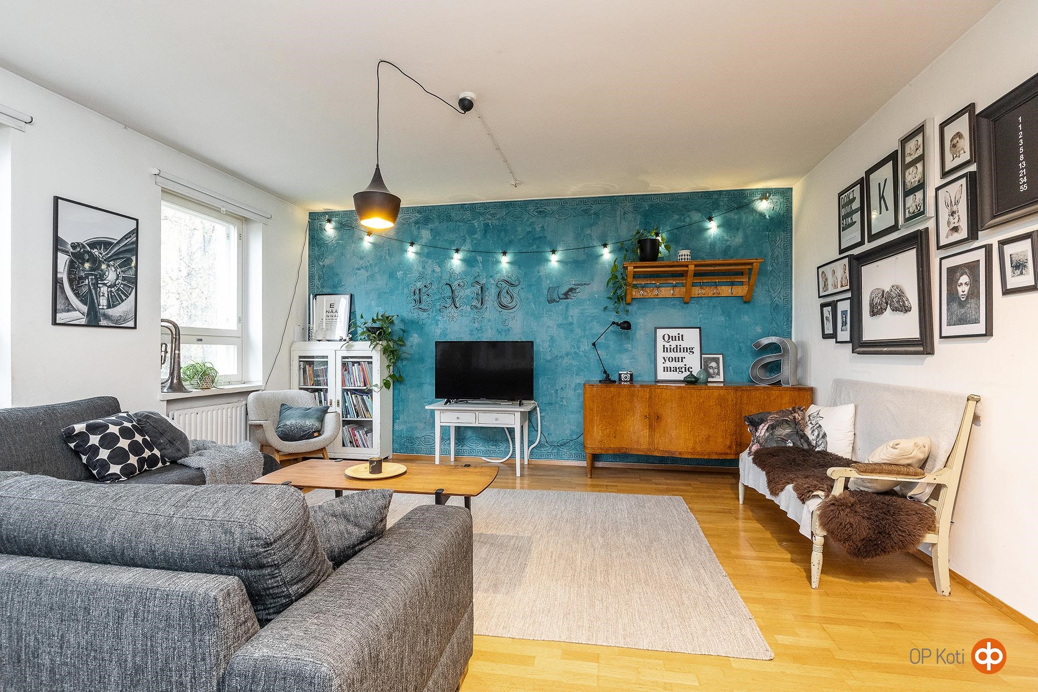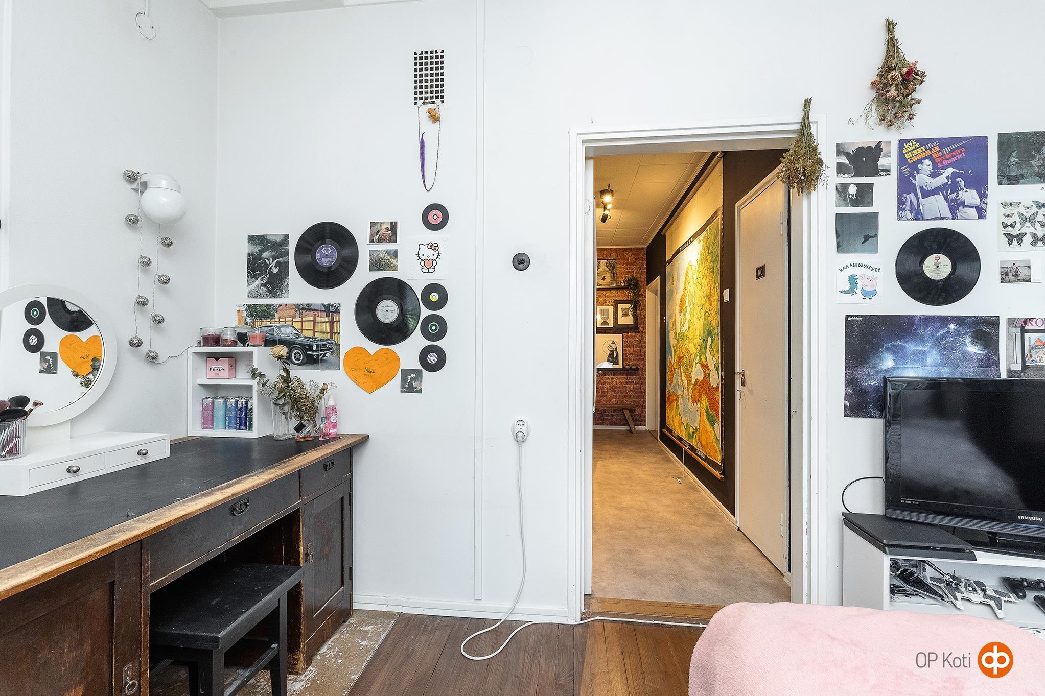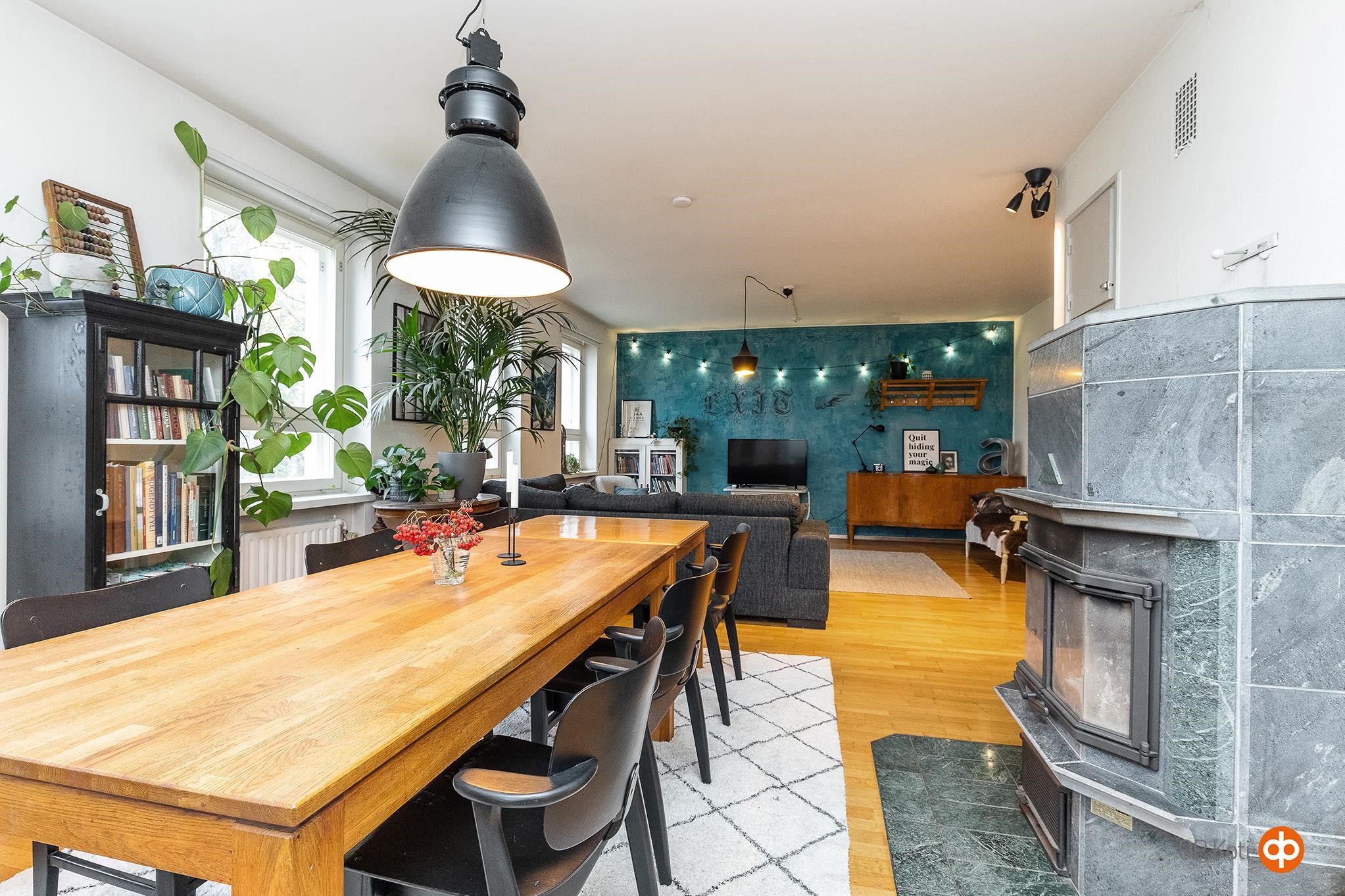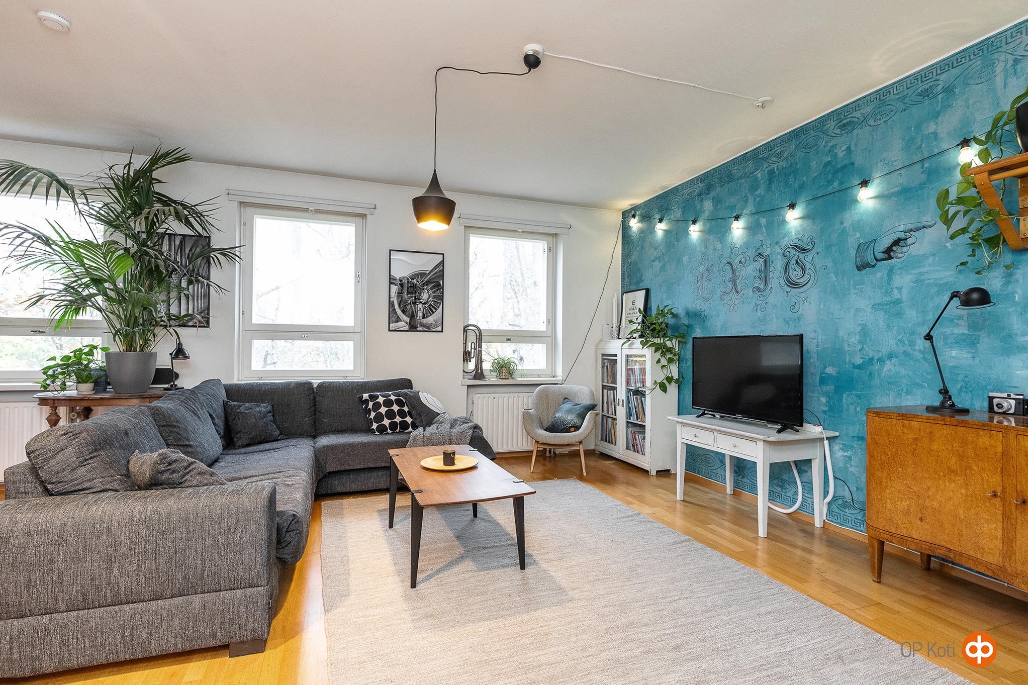 Reilunkokoinen kolmen makuuhuoneen asunto sijaitsee kahdessa kerroksessa. Alakerrassa on tilava ja valoisa olohuone varaavalla takalla ja persoonallinen keittiö. Yläkerrassa kolme makuuhuonetta ja molemmissa kerroksissa omat wc:t. Kellari on auki koko rakennuksen mitalta ja siellä on pesutilojen ja saunan lisäksi monenlaisia varastotiloja ja huoltotiloja. Pesukonevaraus on kellarissa pesutuvassa. Yläkerrassa on runsaasti ullakkotilaa. Öljylämmityksen vaihtamiseen ekologisempaan energiamuotoon saa korotettua kotitalousvähennystä vielä vuoteen 2027 saakka.