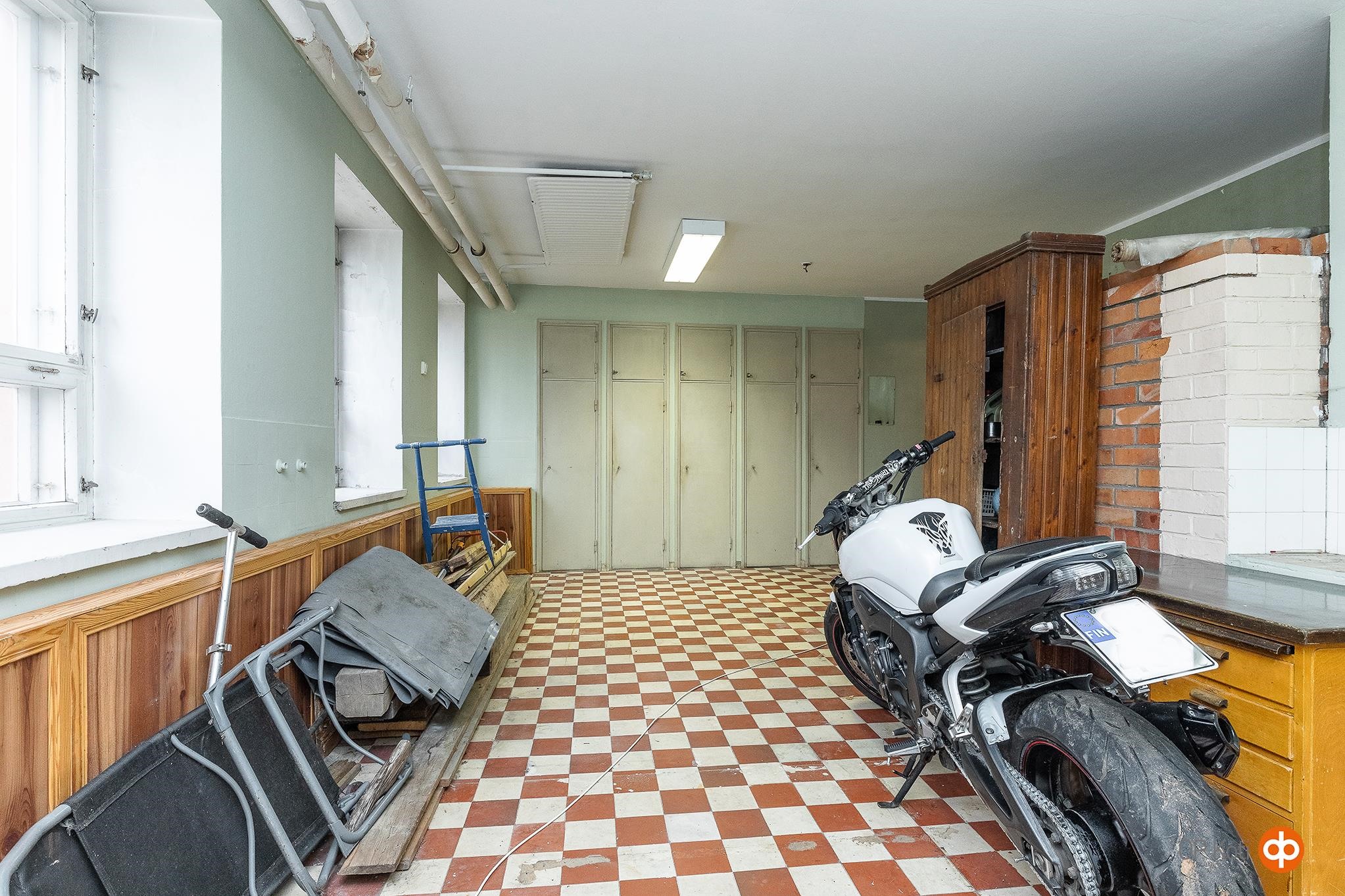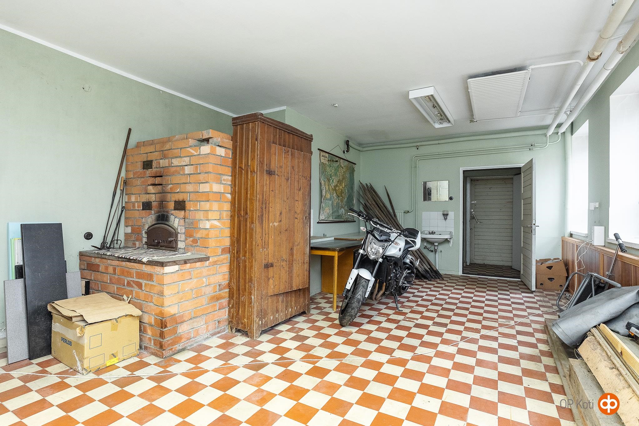 - 153 m2Asuintilojen pinta-alaan on laskettu mukaan keskikerroksen ja yläkerran asuintilat sekä kellarikerroksesta pukuhuone, ph ja sauna. Ilmoitettu pinta-ala on laskettu alkuperäisistä rakennuspiirustuksista. Asuintiloihin tehtyihin muutostöihin ei ole teetetty rakennuspiirustuksia ja yläkerran tilat ovat osittain matalampaa tilaa. Matalin huonekorkeus on yläkerrassa n. 162cm. DVV:sta saatujen rekisteritietojen mukaan rakennuksen kerrosala on 394m² ja kokonaisala 587m², rakennuspiirustusten mukainen rakennusala noin 236m²