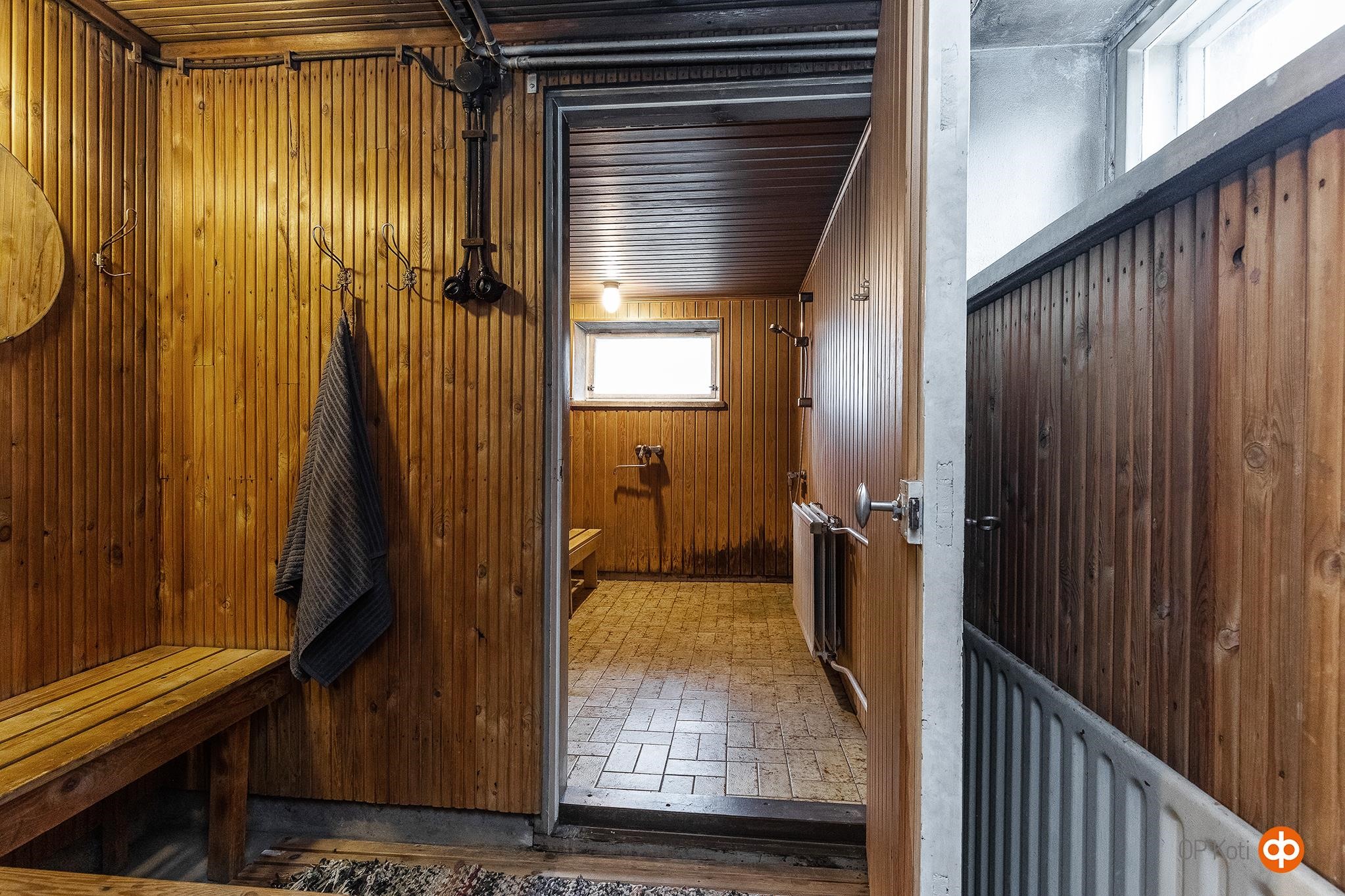 - Sauna, puukiuas, kylpyhuone, erillinen wc 2 kpl, suihku, pesukoneliitäntä kellarin pesutuvassa, kiinteät valaisimet.