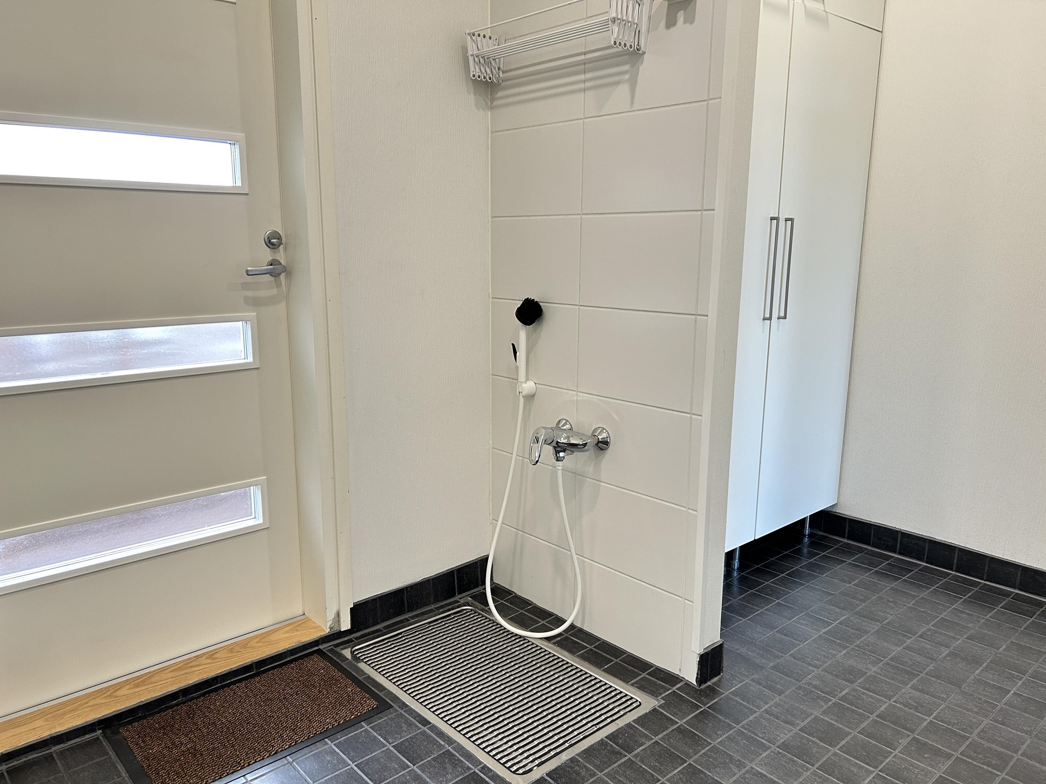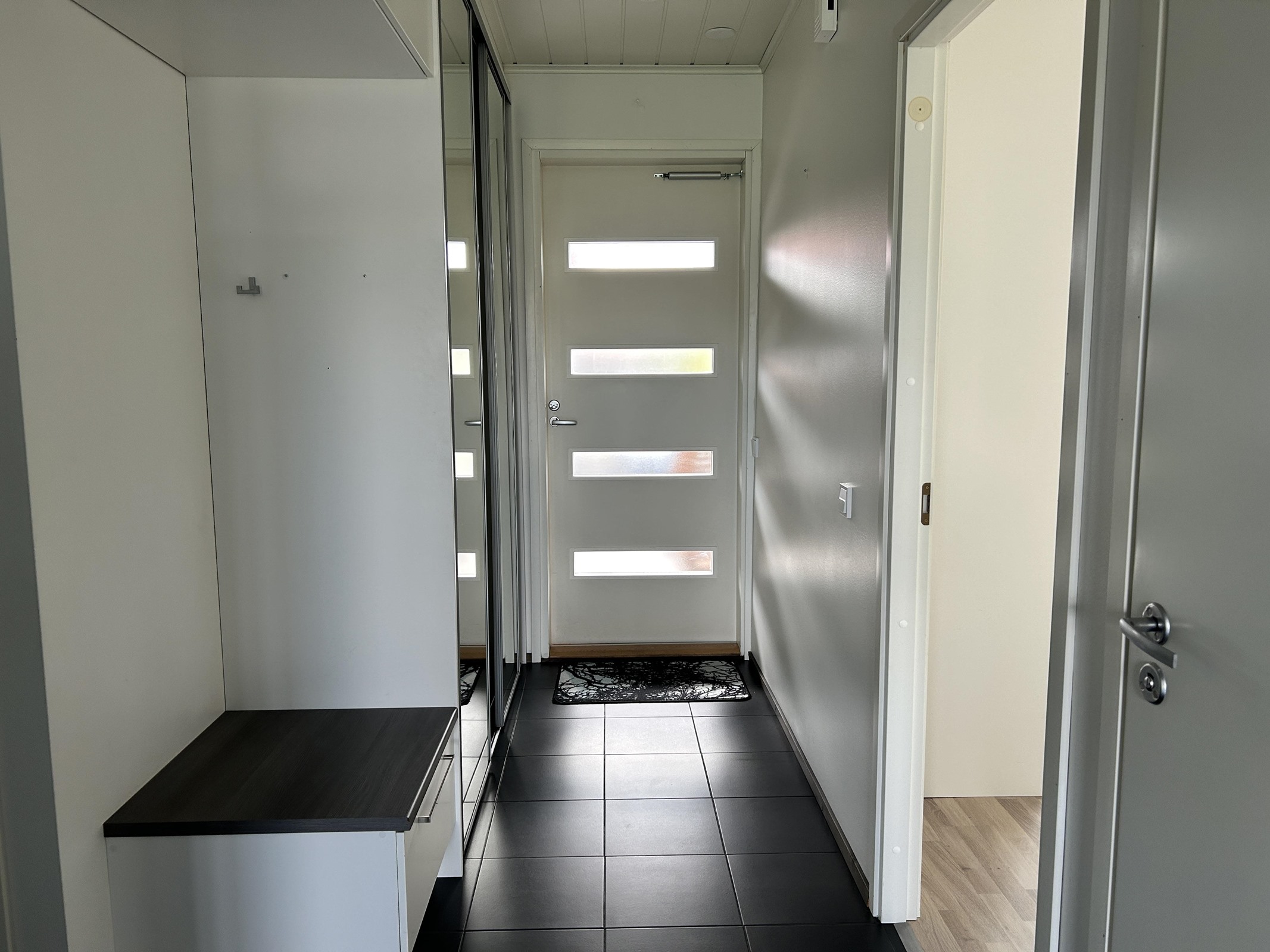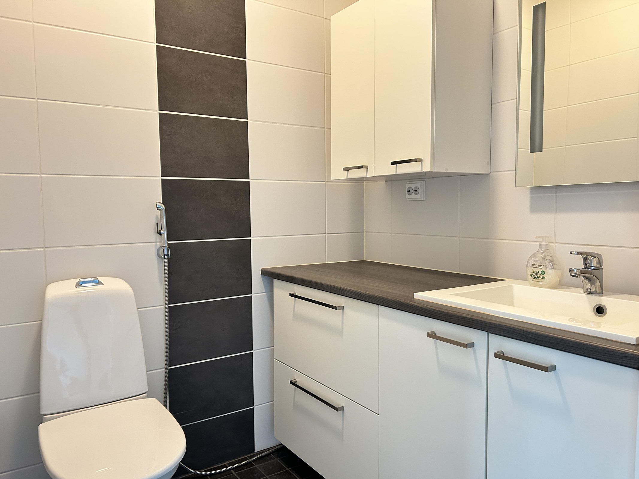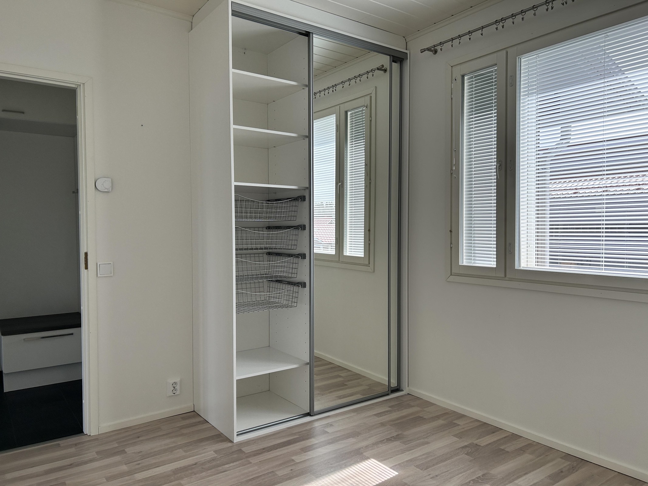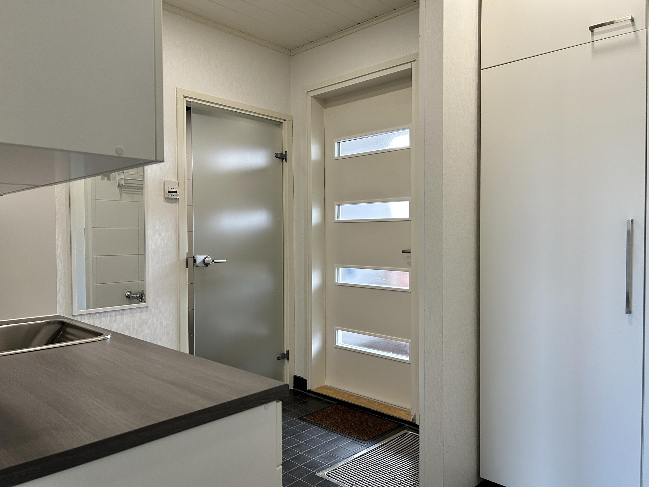 - Sauna, sähkökiuas, kylpyhuone, erillinen wc, suihku, peilit, kaapit, allaskaappi, pesukoneliitäntä, lattialämmitys, kiinteät valaisimet.