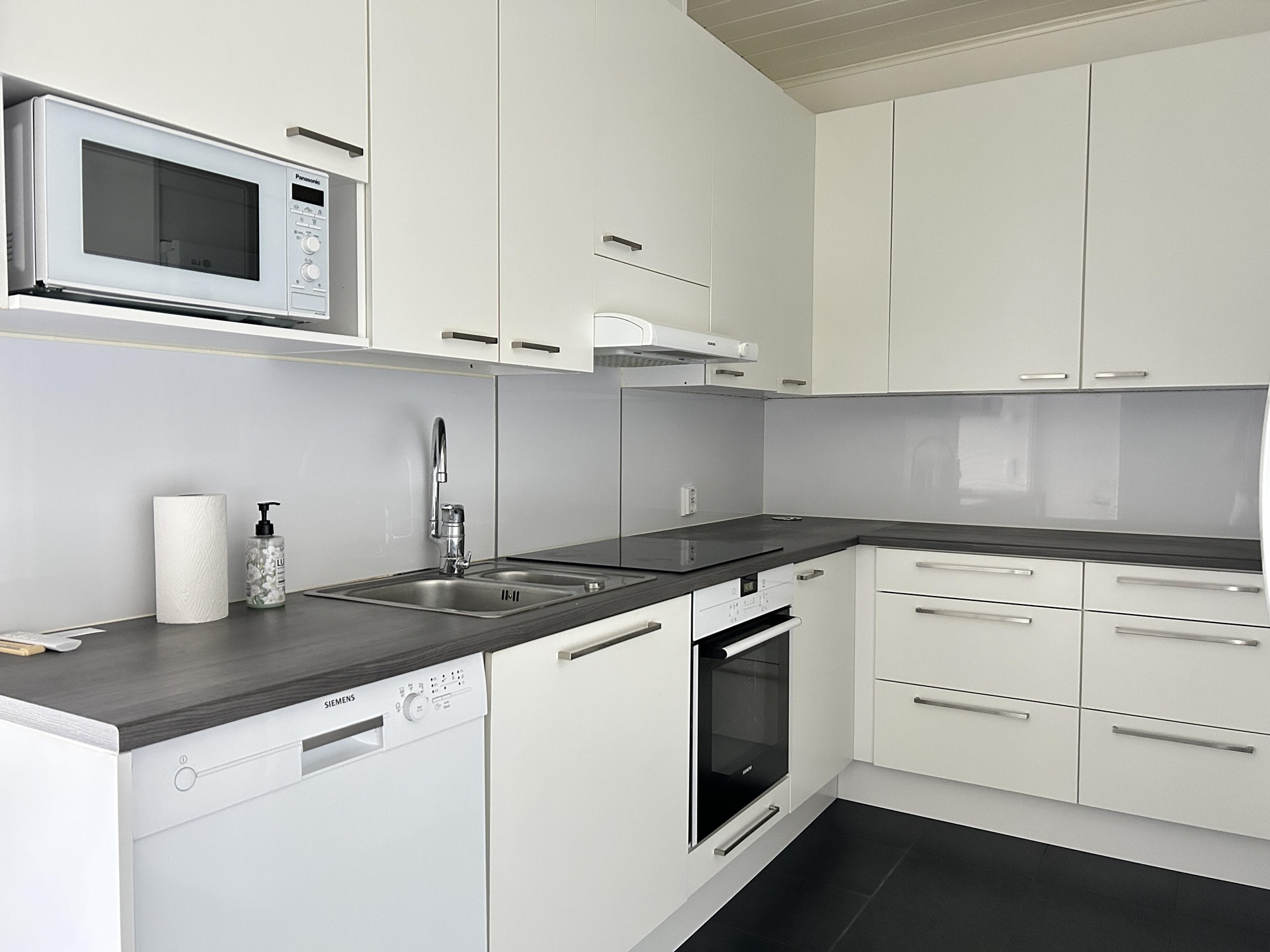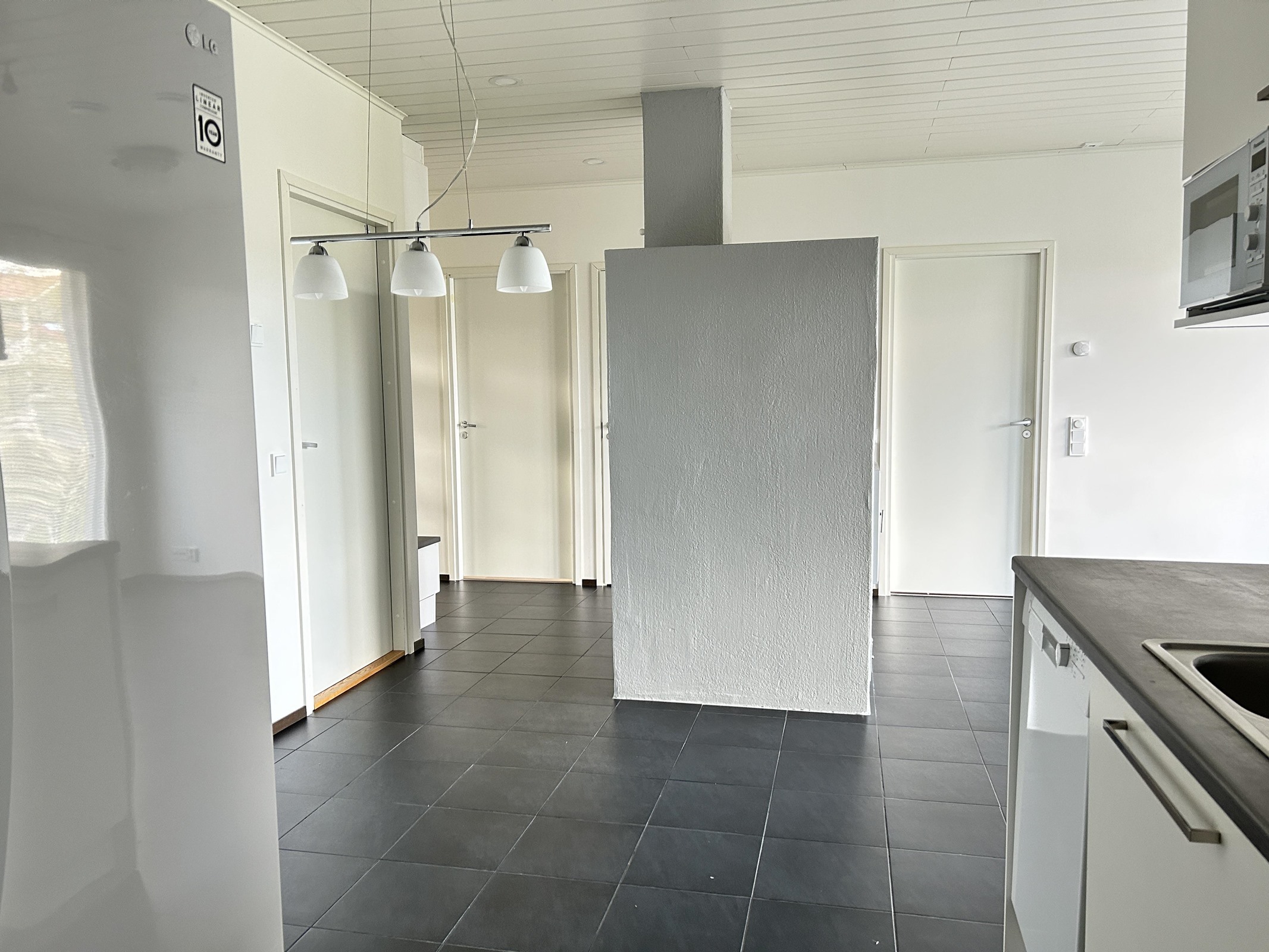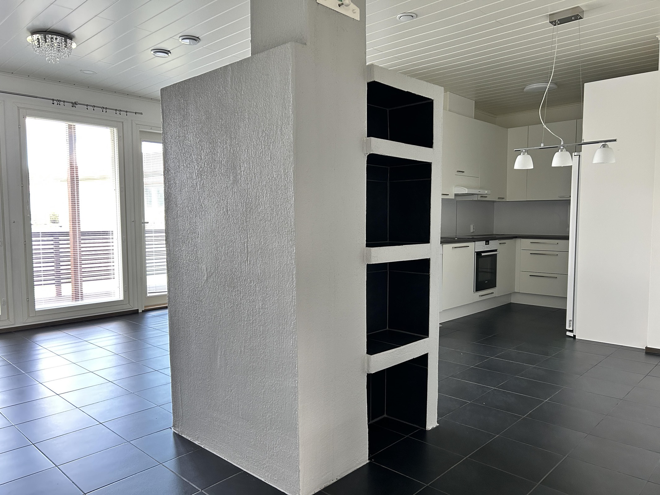 - Jääkaappipakastin, erillisuuni, liesitaso Induktiotaso, liesituuletin Hormiliitäntä, mikroaaltouuni, astianpesukone, kaapistot, kiinteät valaisimet.