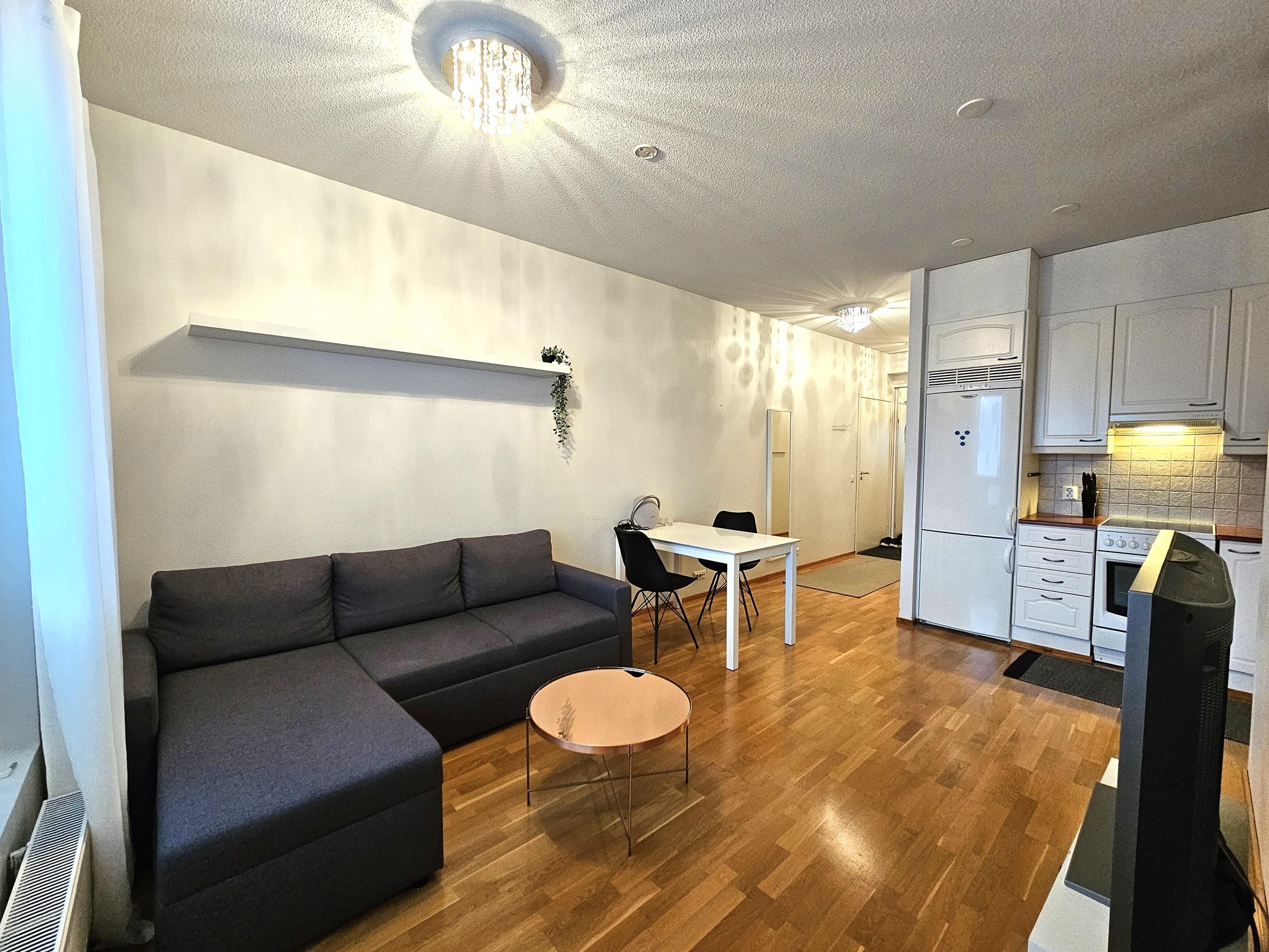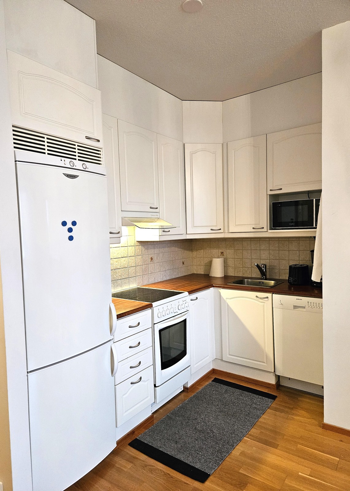 - Jääkaappipakastin, sähköliesi, liesituuletin, astianpesukone, kaapistot.