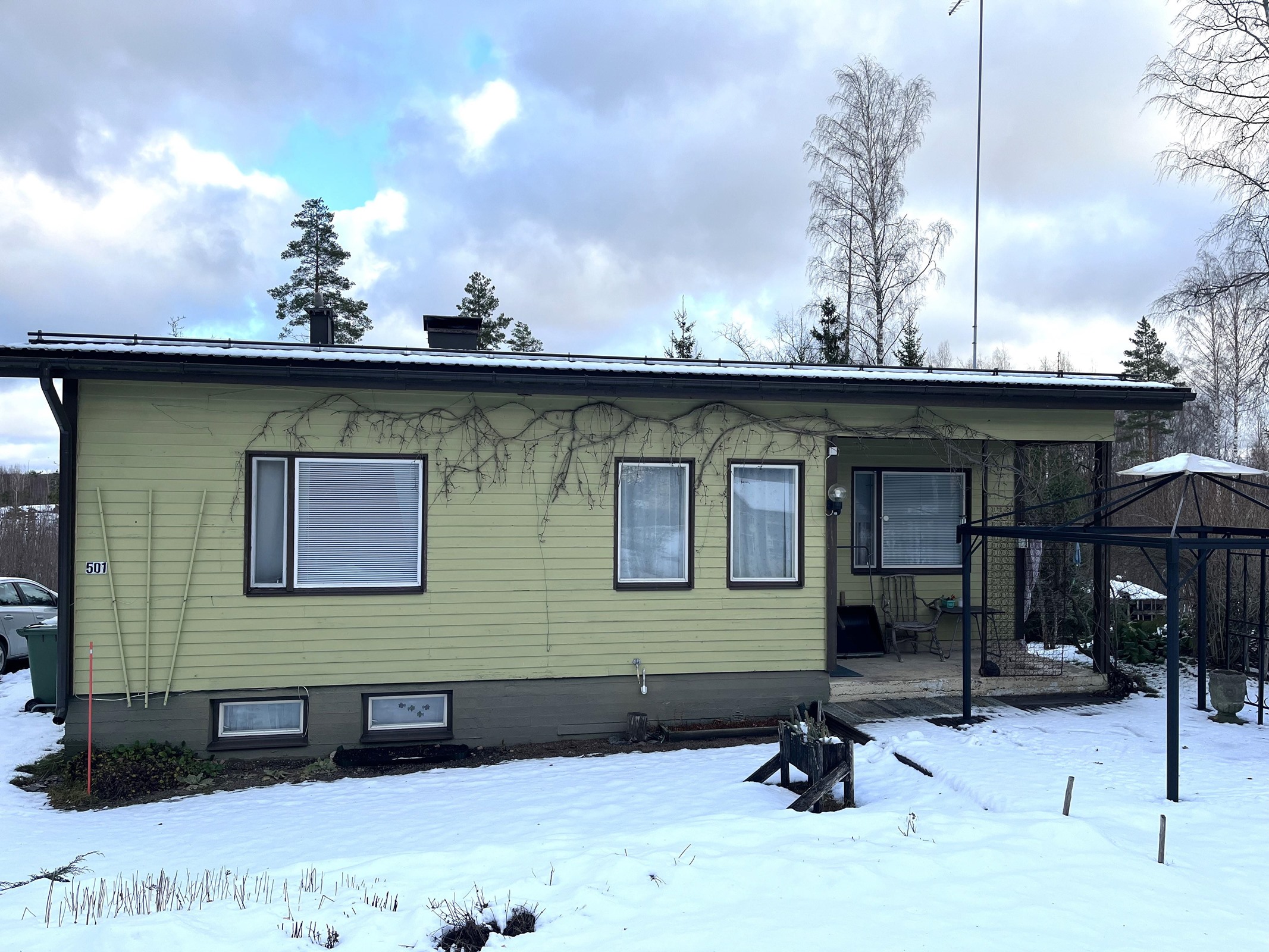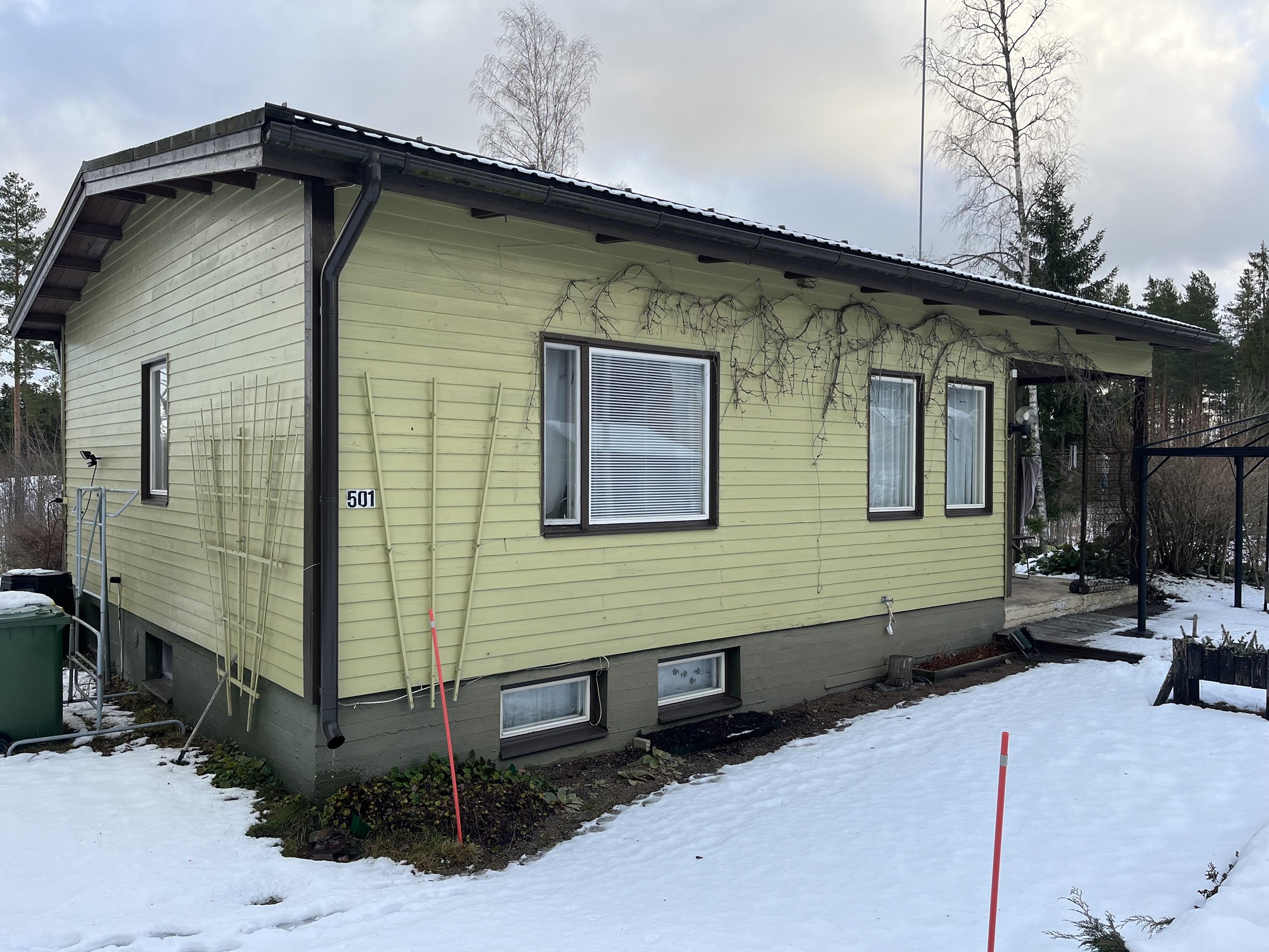 Vuonna 1970 rakennettu omakotitalo, jonka tilat kahdessa kerroksessa. Kiinteistöllä vesiosuuskunnan liittymä. Käyttövesiputket uusittu 1998 ja viemärit sukitettu 2020. Kiinteistöllä sijaitsee myös varastokäytössä oleva vuonna 1938 rakennettu talo.