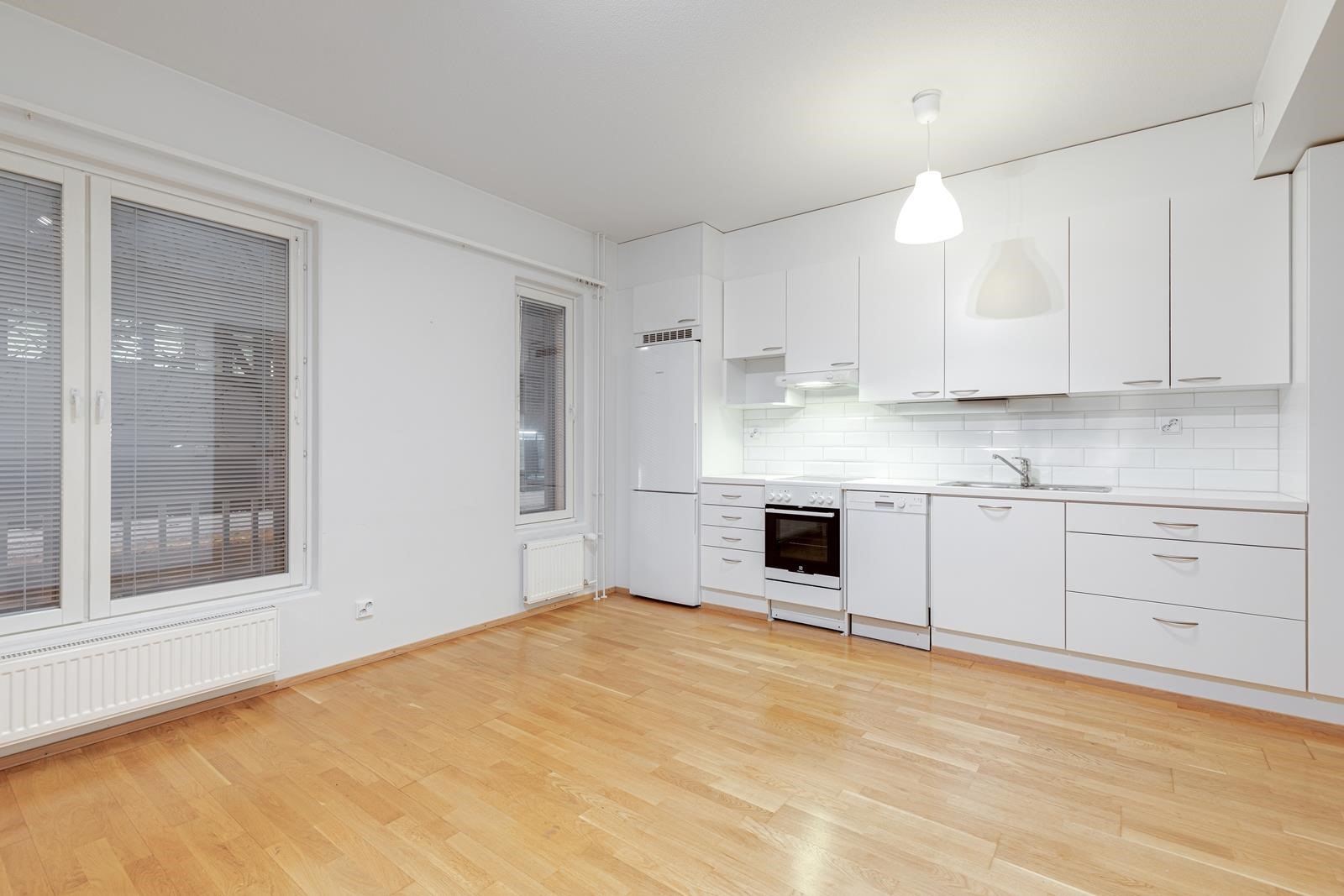 - Jääkaappipakastin, keraaminen liesi, liesituuletin, astianpesukone.