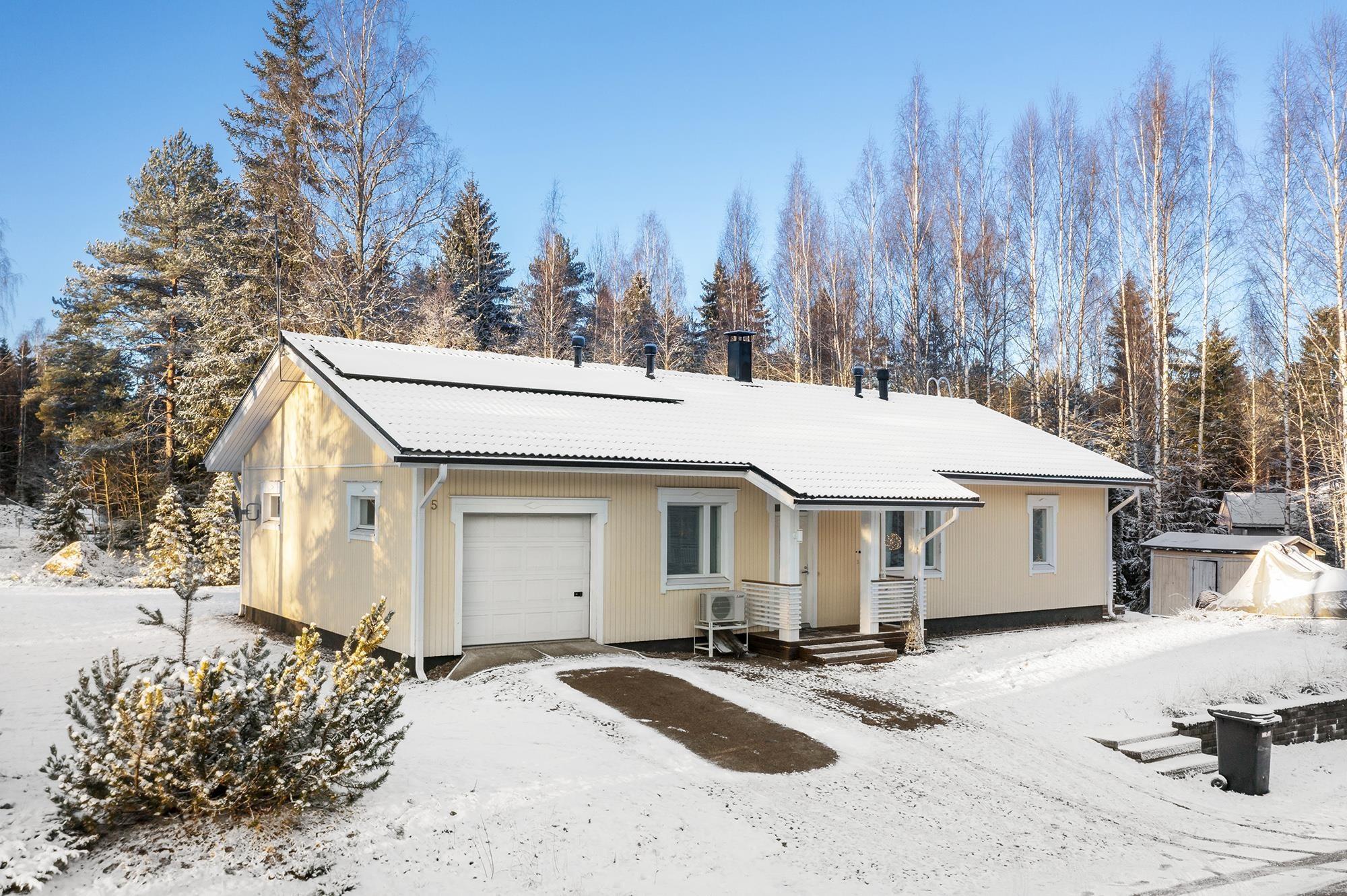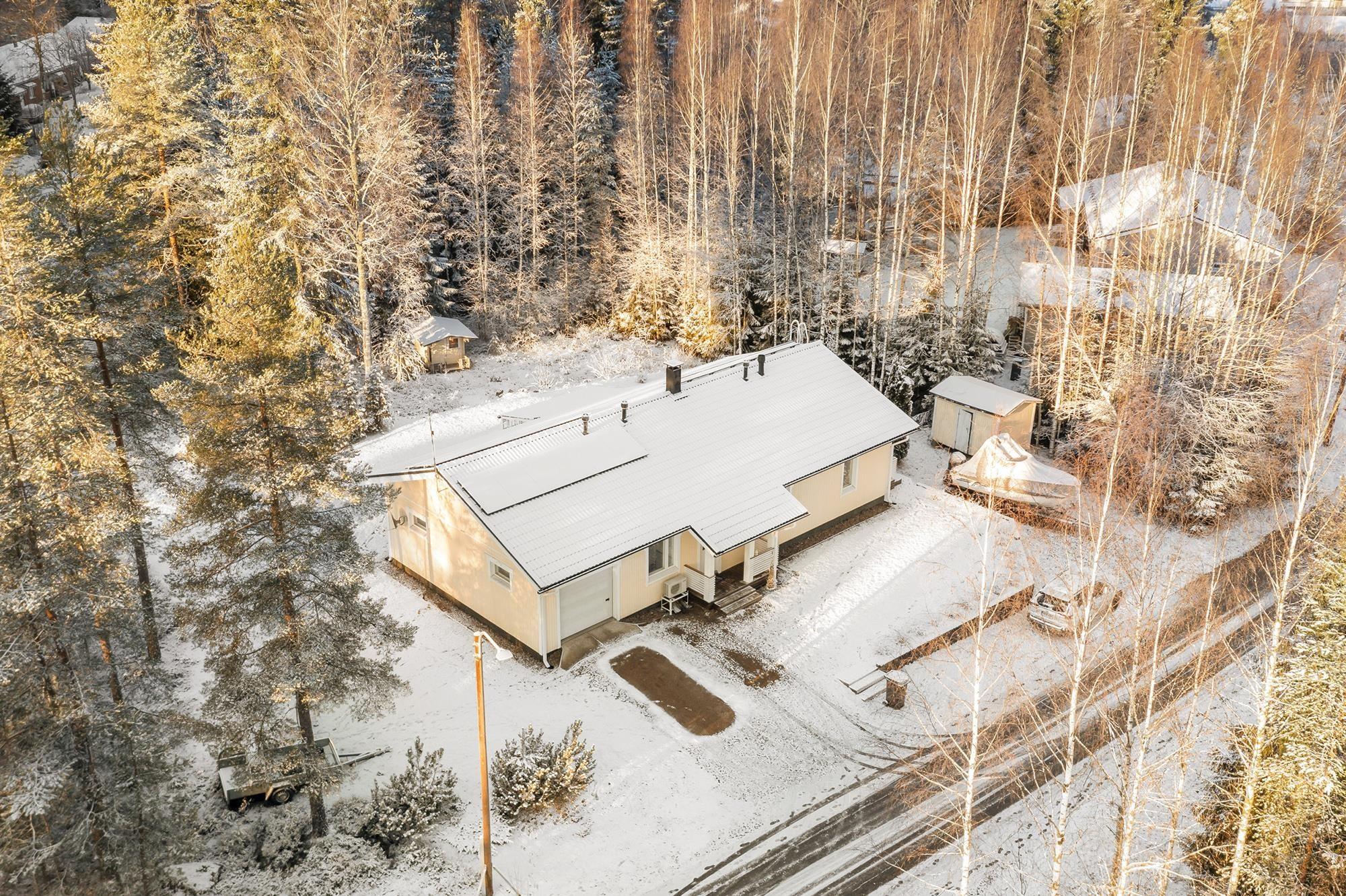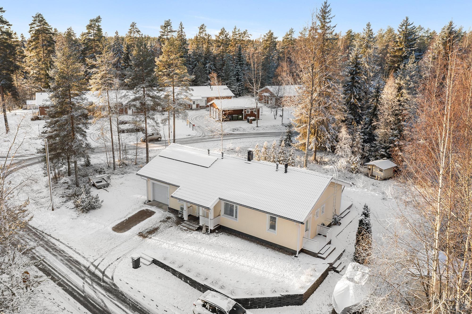 Etsitkö viihtyisää kotia, joka yhdistää tilan, toimivuuden ja rauhallisen ympäristön? Tässä kodissa on kodikkaat tilat ja huolella ylläpidetty kunto. Keittiössä on tilaa isommallekin ruokapöydälle sekä runsaasti säilytys- ja laskutilaa. Olohuoneesta käynti tilavalle terassille, josta osa on katettu. Siistikuntoinen kylpyhuone ja sauna. Kodinhoitohuone toimii kuraeteisenä lapsille ja lemmikeille. Edulliset asumiskustannukset; sähkölämmityksen lisänä varaava takka ja ilmalämpöpumppu. Aurinkopaneelit tuottavat osan sähköstä. Talon yhteydessä autotalli ja varastotila. Suojaisa nurmikkoinen takapiha. Sovi oma esittelyaikasi!