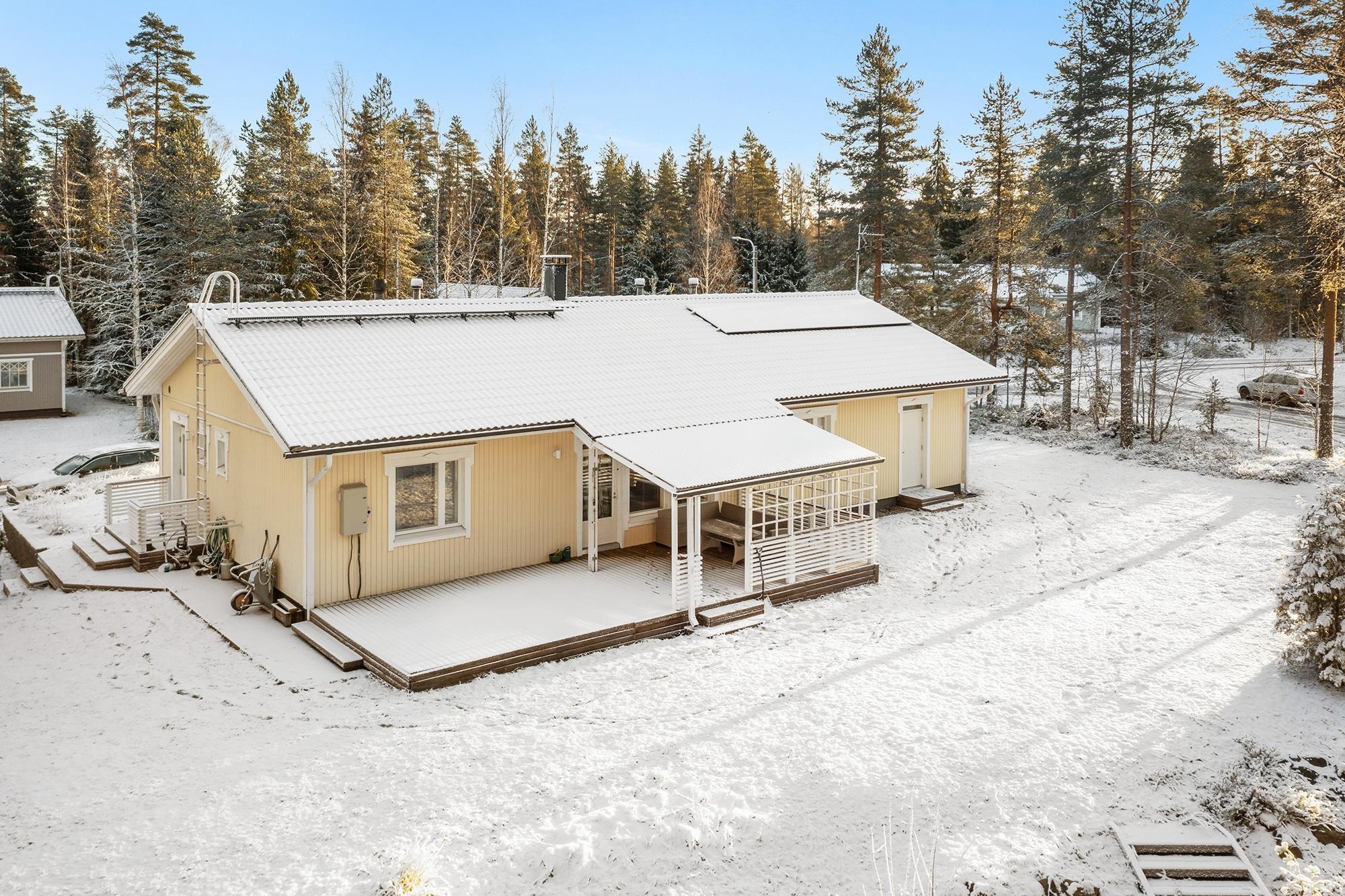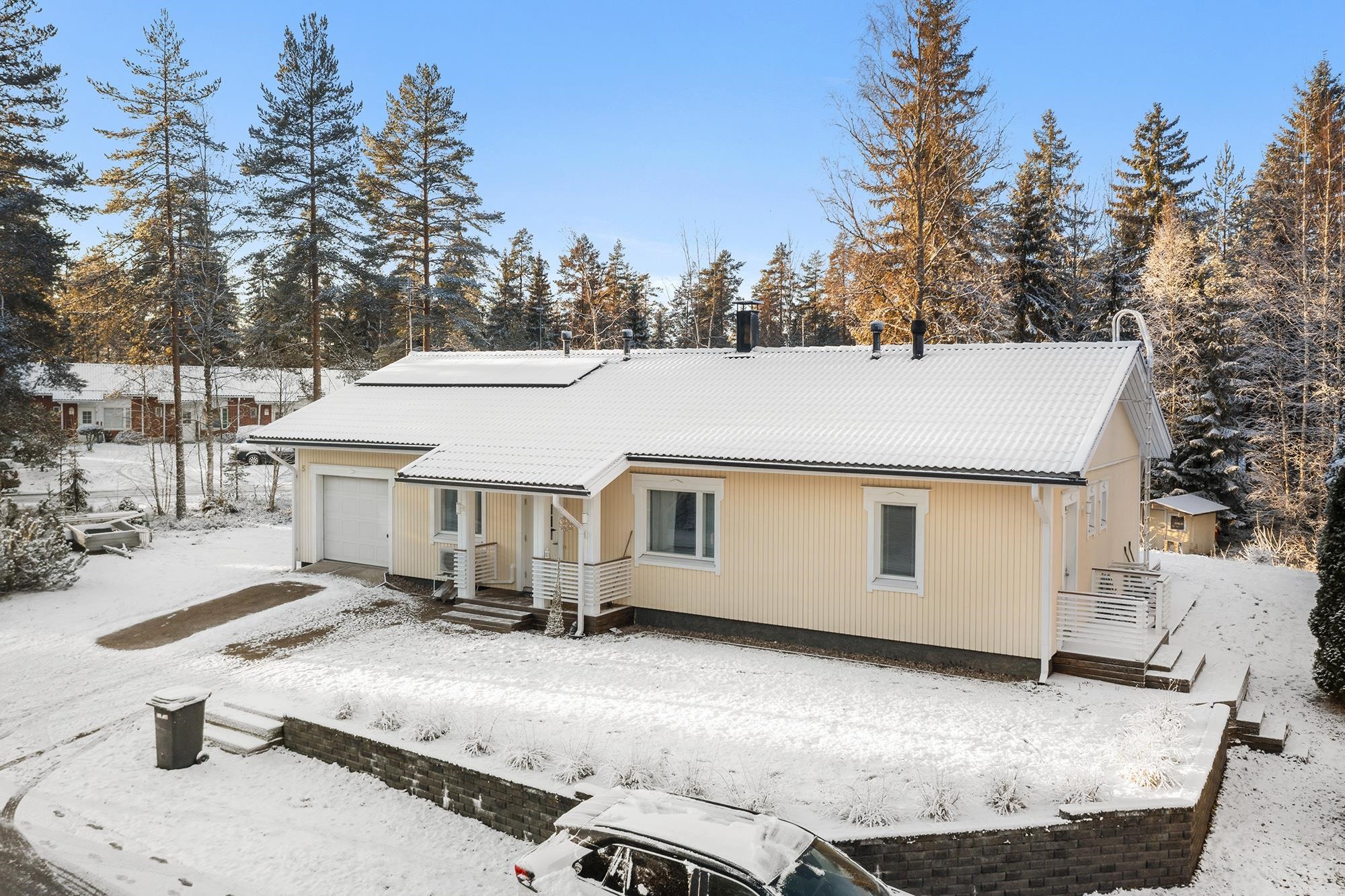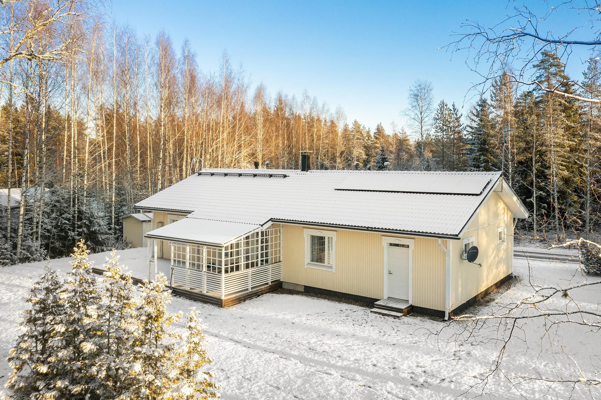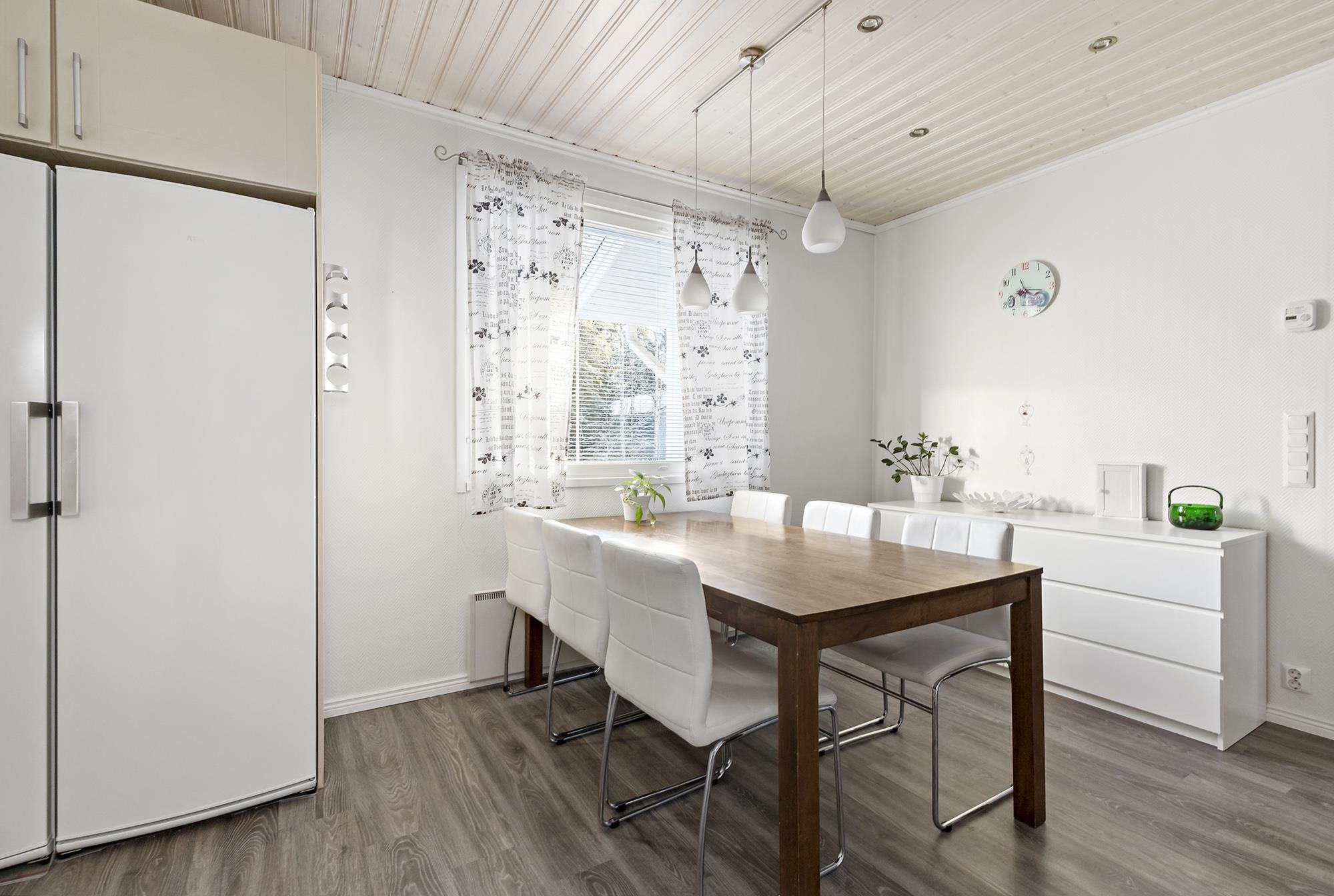 Etsitkö viihtyisää kotia, joka yhdistää tilan, toimivuuden ja rauhallisen ympäristön? Tässä kodissa on kodikkaat tilat ja huolella ylläpidetty kunto. Keittiössä on tilaa isommallekin ruokapöydälle sekä runsaasti säilytys- ja laskutilaa. Olohuoneesta käynti tilavalle terassille, josta osa on katettu. Siistikuntoinen kylpyhuone ja sauna. Kodinhoitohuone toimii kuraeteisenä lapsille ja lemmikeille. Edulliset asumiskustannukset; sähkölämmityksen lisänä varaava takka ja ilmalämpöpumppu. Aurinkopaneelit tuottavat osan sähköstä. Talon yhteydessä autotalli ja varastotila. Suojaisa nurmikkoinen takapiha. Sovi oma esittelyaikasi!