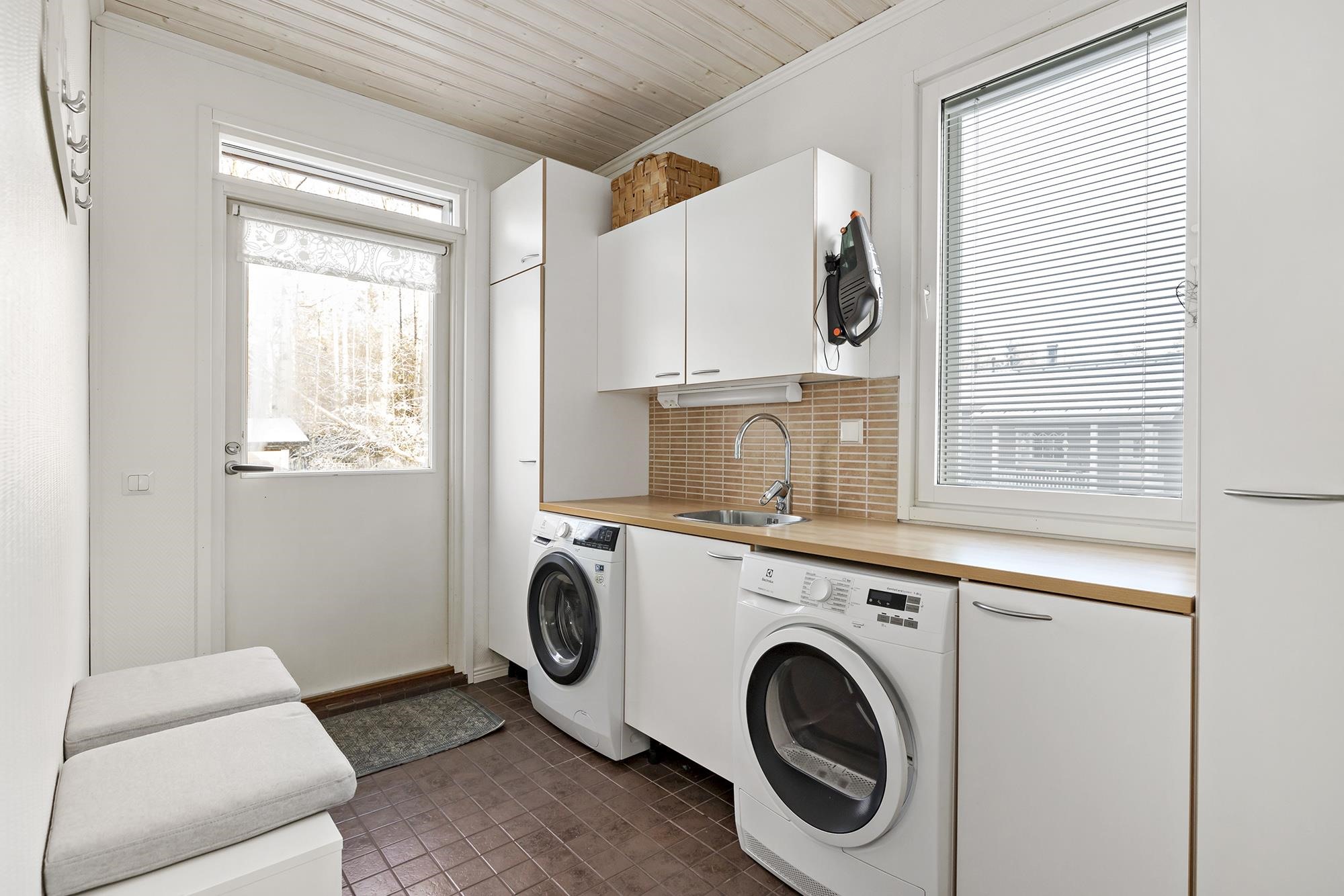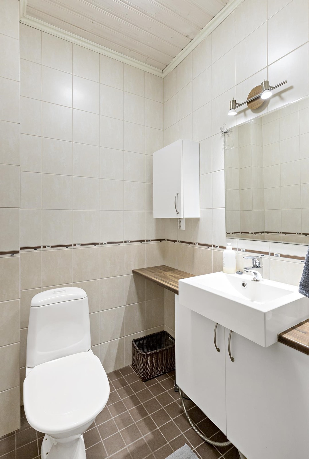 - Sauna, sähkökiuas, kylpyhuone, erillinen wc 2 kpl, suihku, peilikaappi, pesukoneliitäntä kodinhoitohuoneessa, kiinteät valaisimet.