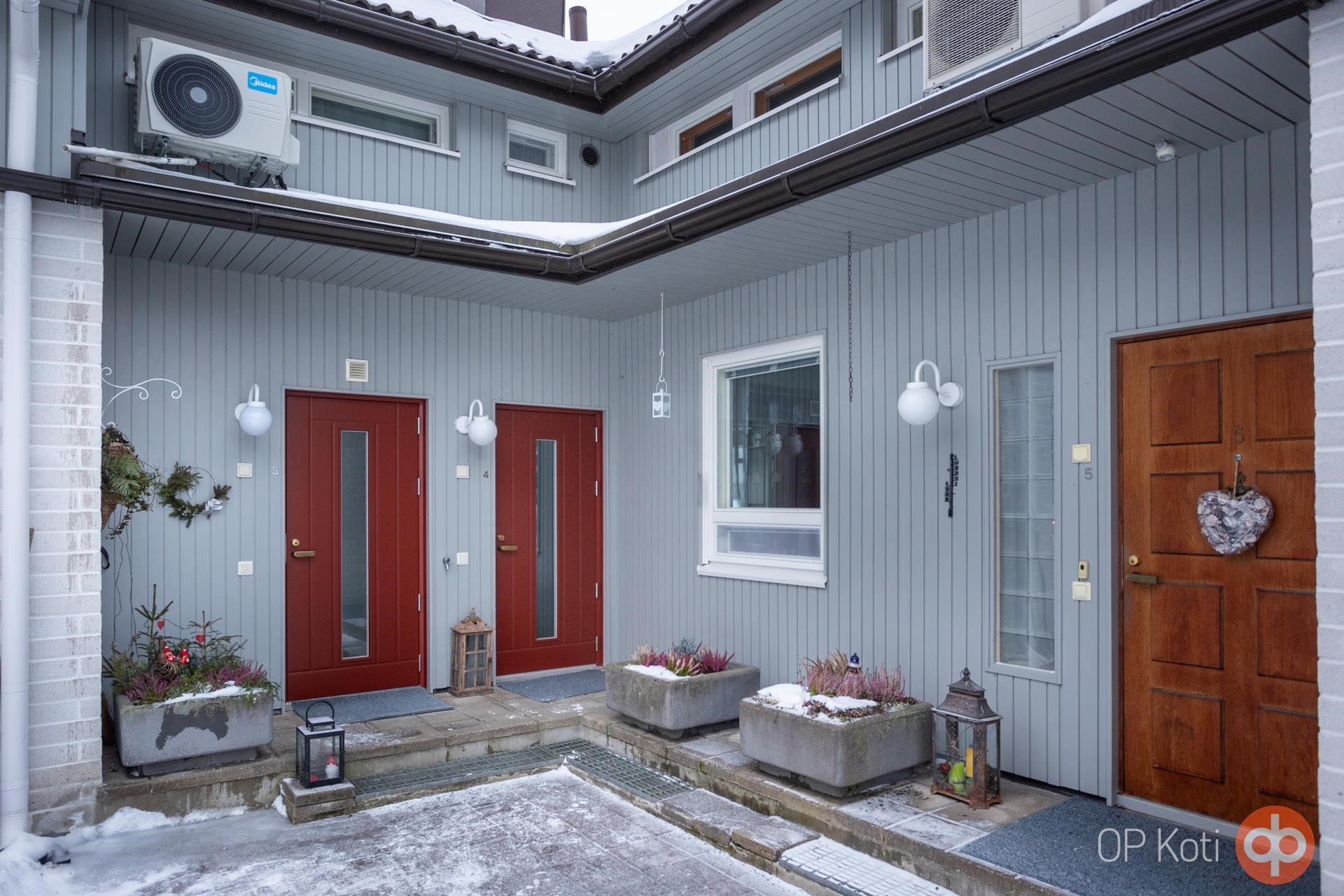 TALOYHTIÖSSÄ TEHDYT KORJAUKSET: 2011: Sokkeli kosteuseristes. Verhouslevyt uusittu ja vauriot korjattu 2012: Pihakaivo uusittu. Pihamökin seinät korjattu. Ikkunat uusittu. Harjan tiivistyspellitys uusittu. 2013: Ulko-ovet huoltolakattu. 2014: Kattopulpetit päällystetty pellillä. 2015: Osa piha-alueesta uusittu. Pihamökki maalattu. 2016: Piha loppukunnostettu. Kadun puolella kosteuseristys tehty. Autokatoksen pohjoispääty korjattu ja maalattu. 2017: Sokkelit maalattu. Sisääntulokatosten kattopinnat uusittu. 2018: Korjausmaalauksia. Ikkunaerkkerit korjattu. Autokatoksen sisäpuoli ja aita maalattu. 2019: Nurmikon korjaus. Katto pinnoitettu, räystäskourut uusittu sekä tehty korjausmaalaukset. 2020: Katolle kadun puolelle laitettu lumiesteet. Vesimittarit uusittu. Ulko-ovet uusittu. Asunnon 4 ullakko muutettu kesähuoneeksi asukkaan kustannuksella. 2021: Piharakennukset maalattu ja väri vaihdettu; pihamökki, roskakatos ja autokatos. Sokkeli korjattu ja maalattu. Kattorakenne ¿rontti¿ pellitetty. Sisäpihalle rakennettu patio. 2022: Kiinteistö maalattu, väri vaihdettu. Asunto 4 yläkerran pesuhuoneen laattalattian osittainen korjaus. Asuntojen hajuhaittojen tutkiminen ensin asunnoissa 3 ja 4, jonka jälkeen kaikki asunnot. Aistinvaraisessa tarkastuksessa asunnoissa 2, 3, 4 ja 6 todettu kantavien väliseinien rakennusvirheet. 2023: Asuntoihin 2, 3, 4 ja 6 tehty kantavien väliseinien korjaukset. Salaojat tarkistettu, kuvattu ja huollettu. 2024: Asunnon 4 yläkerran pesuhuoneen laattalattia kokonaan korjattu; vesieristykset ja uusi laattalattia laitettu. Piha-aita suoristettu ja maalattu.. Asunnon remontit: 2019: Harmaa vinyylilankkulattia laitettu ja lautalistat uusittu alakertaan ja yläkerran aulaan. Maalattu olohuoneen & ruokailutilan, alakerran kylpyhuoneen ja tuulikaapin katot sekä tuulikaapin seinät. 2020: Portaiden askelmat ja pylväs hiottu sekä sävytelakattu. Ullakkohuone rakennettu kesähuoneeksi. 2021: Väliovet ja karmit vaihdettu 4 kpl. 2022: Yläkerran kylpyhuoneen allas- ja peilikaappi vaihdettu. Asennettu ilmalämpöpumppu. 2023: Laitettu uusi Harvian sähkökiuas. 2024: Yläkerran kylpyhuoneen marmoriseinälaatat sekä katto maalattu. Yläkerran aulan katto maalattu. Keittiön marmorivälitilalaatat maalattu, keittiön ja tuulikaapin laattalattiat maalattu. Laitettu uusi suihkuseinä yläkerran kylpyhuoneeseen. 2025: Takaoven karmien ja kynnyksen vaihtaminen; karmit ja kynnys on jo hankittu. 2025: Huhtikuussa. Ilmanvaihtokoneen puhdistus ja säätö.