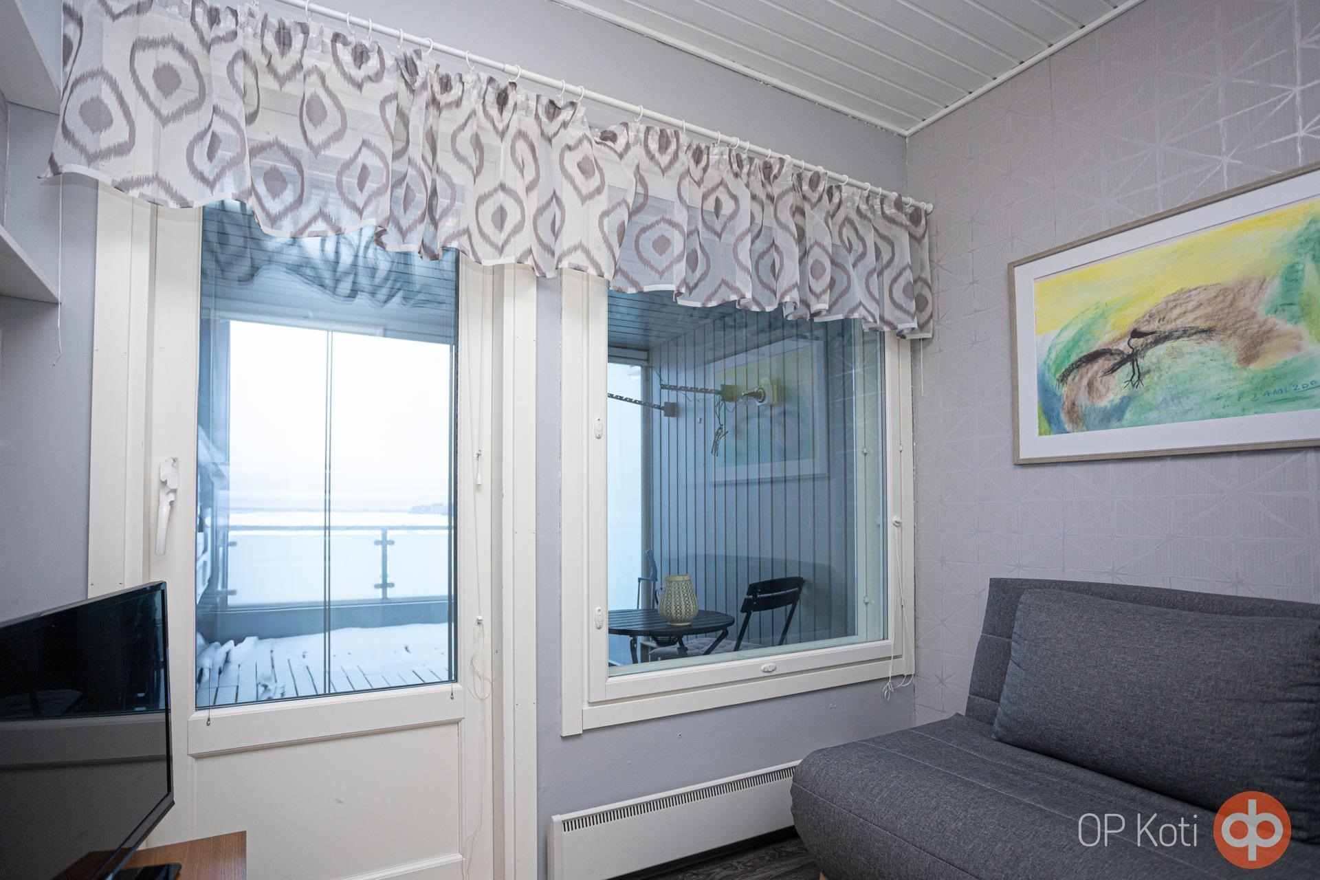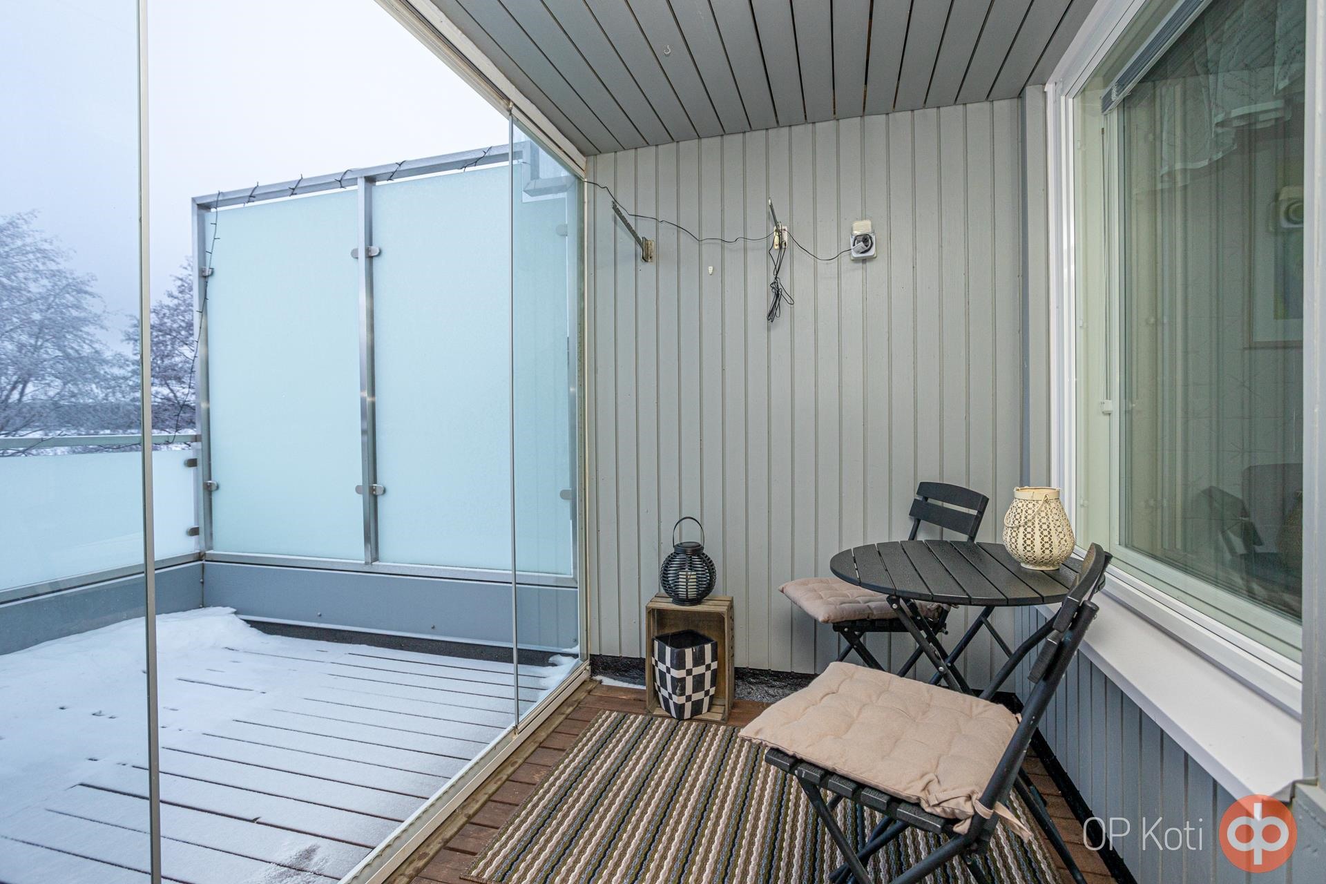 - Osin lasitettu parveke. Lisäksi aurinkoterassi.