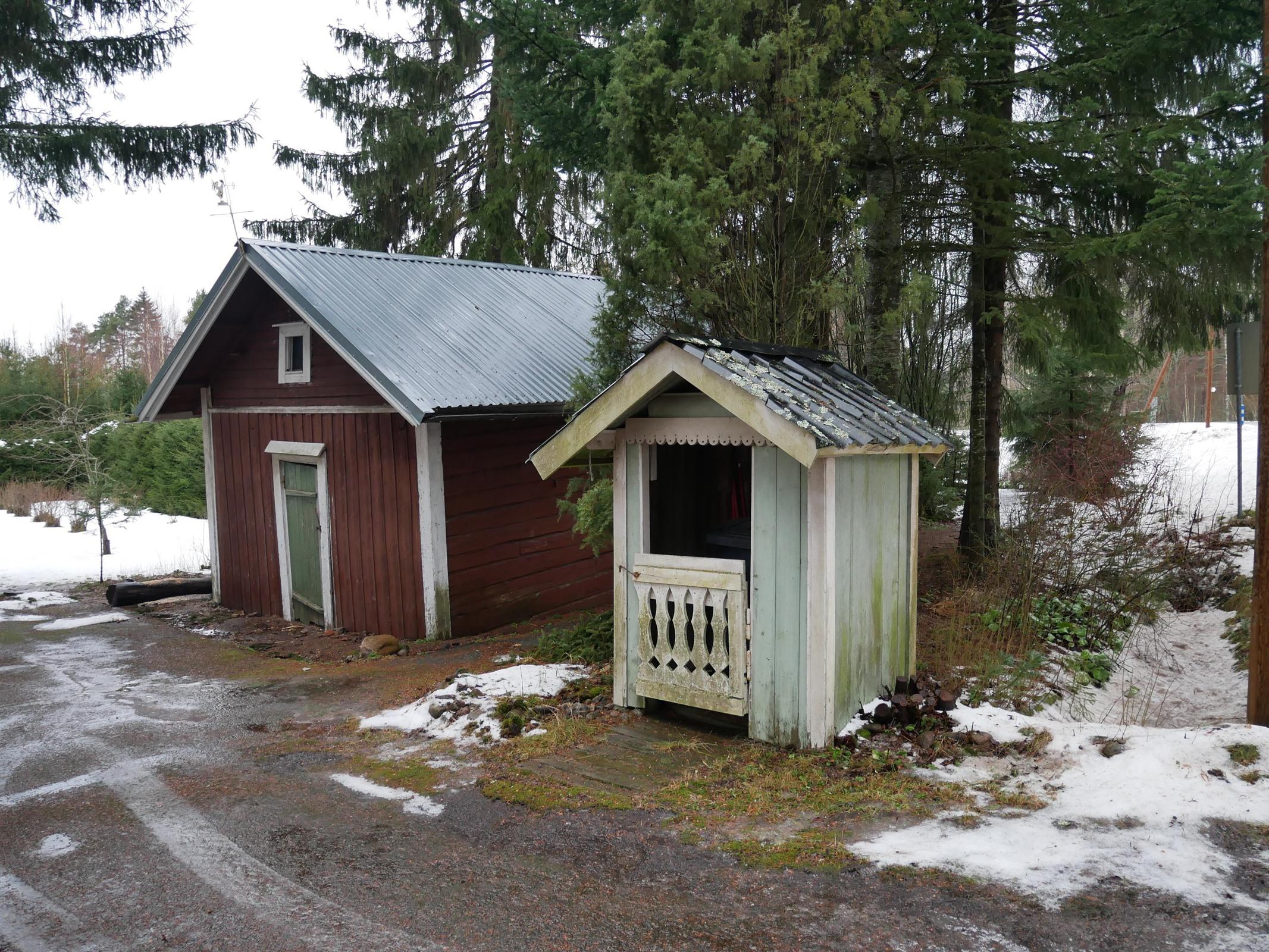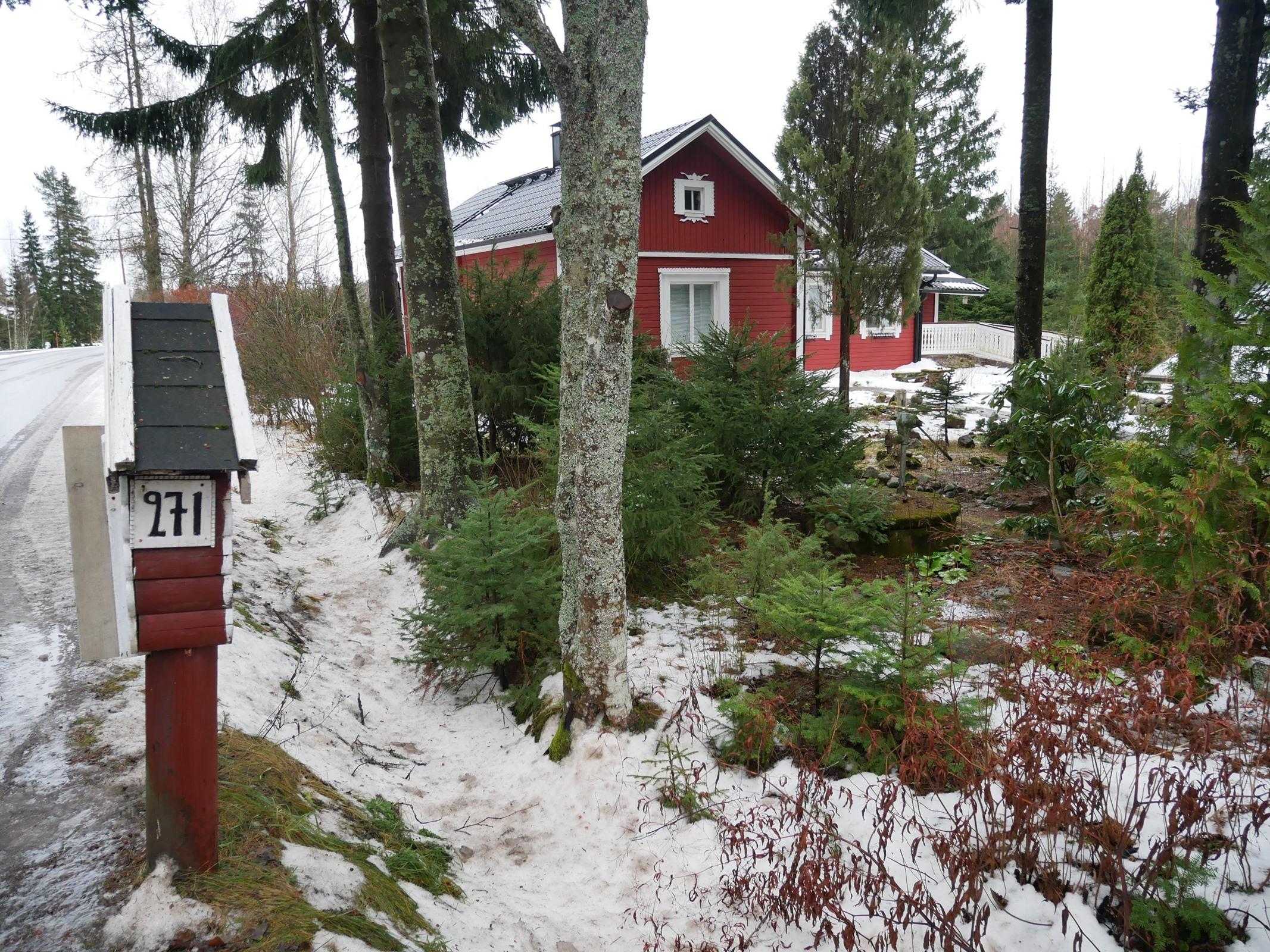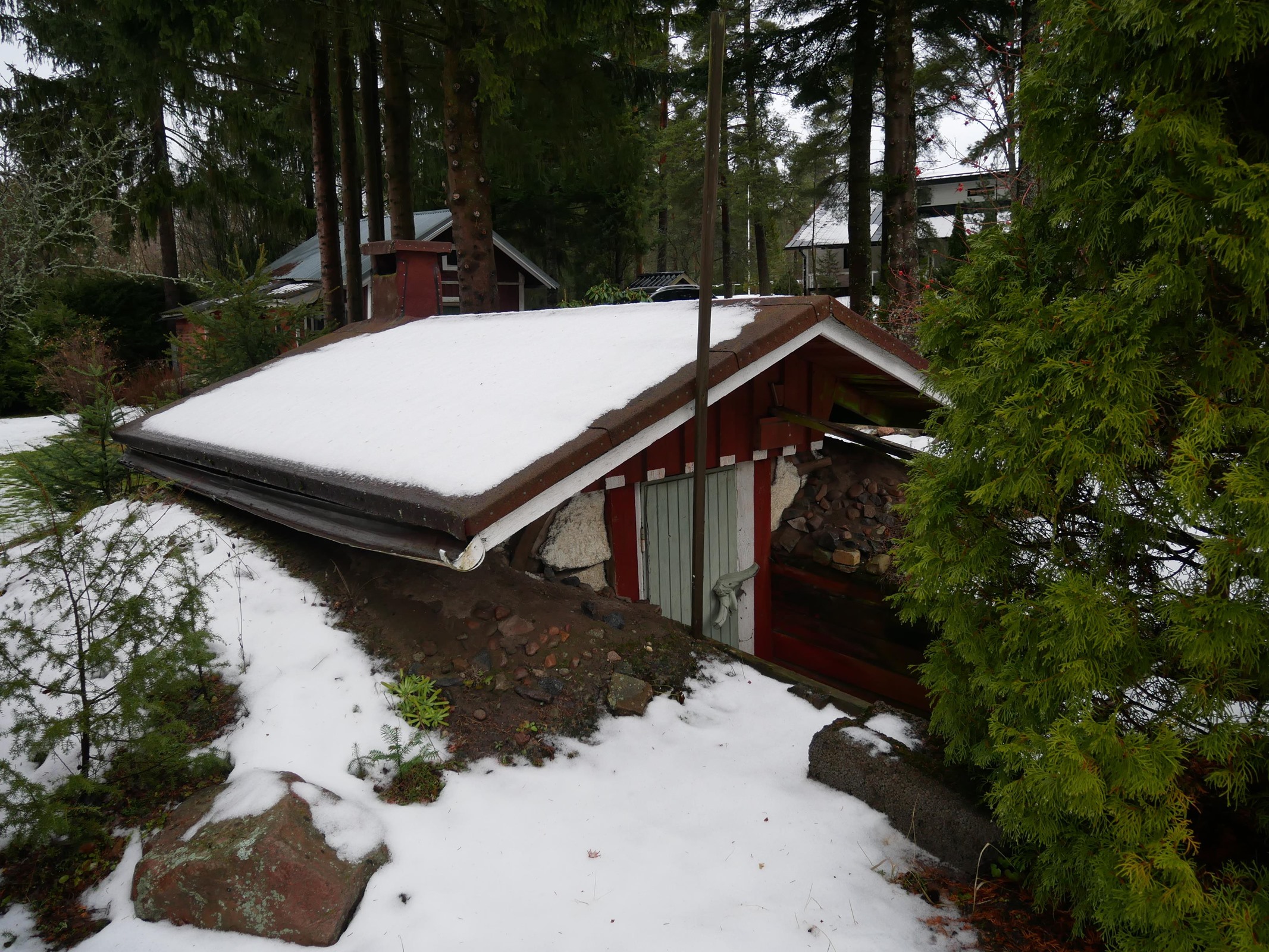 - Puu. Vanha osa talosta hirttä, laajennus lautarakenteinen.