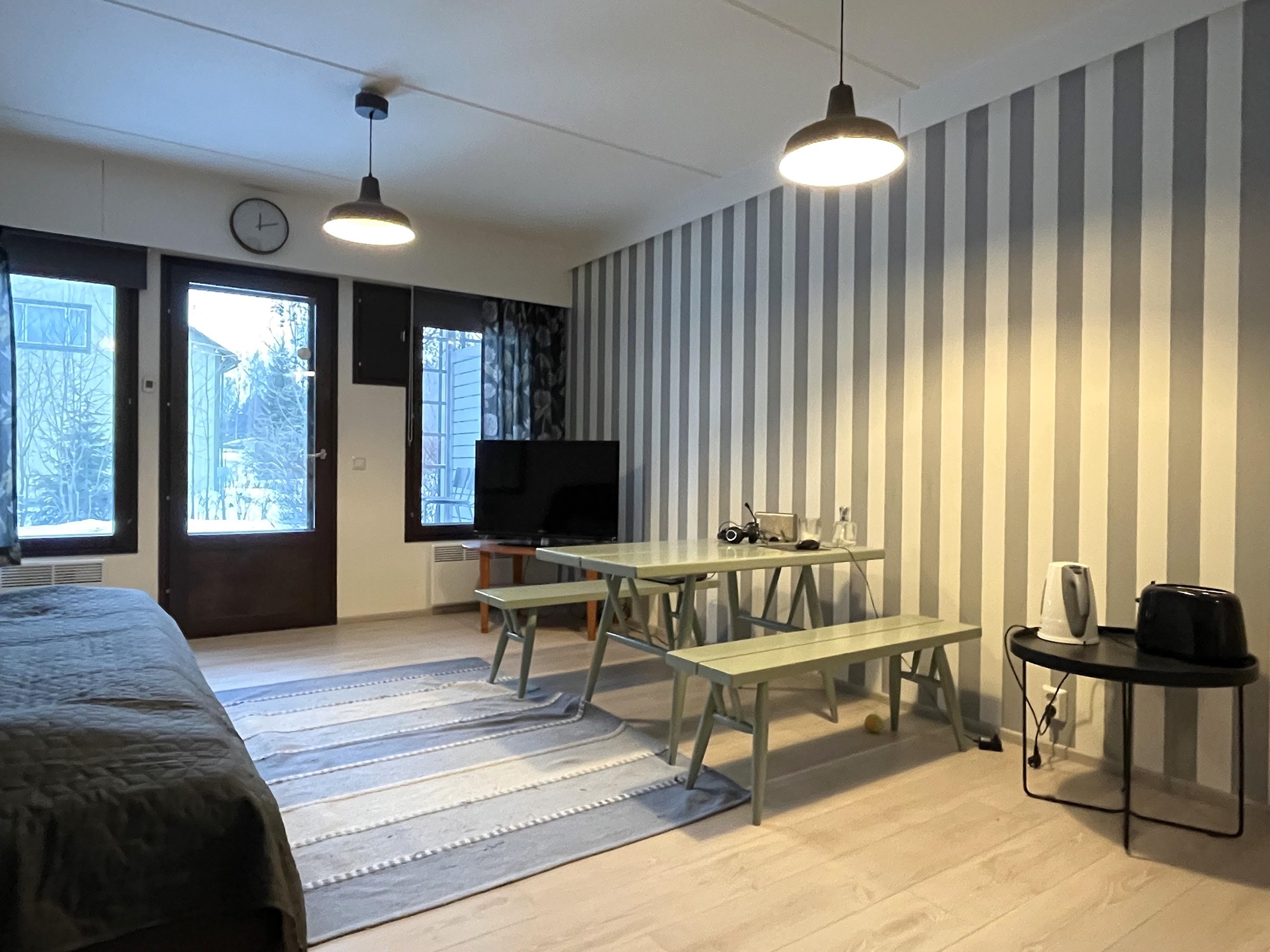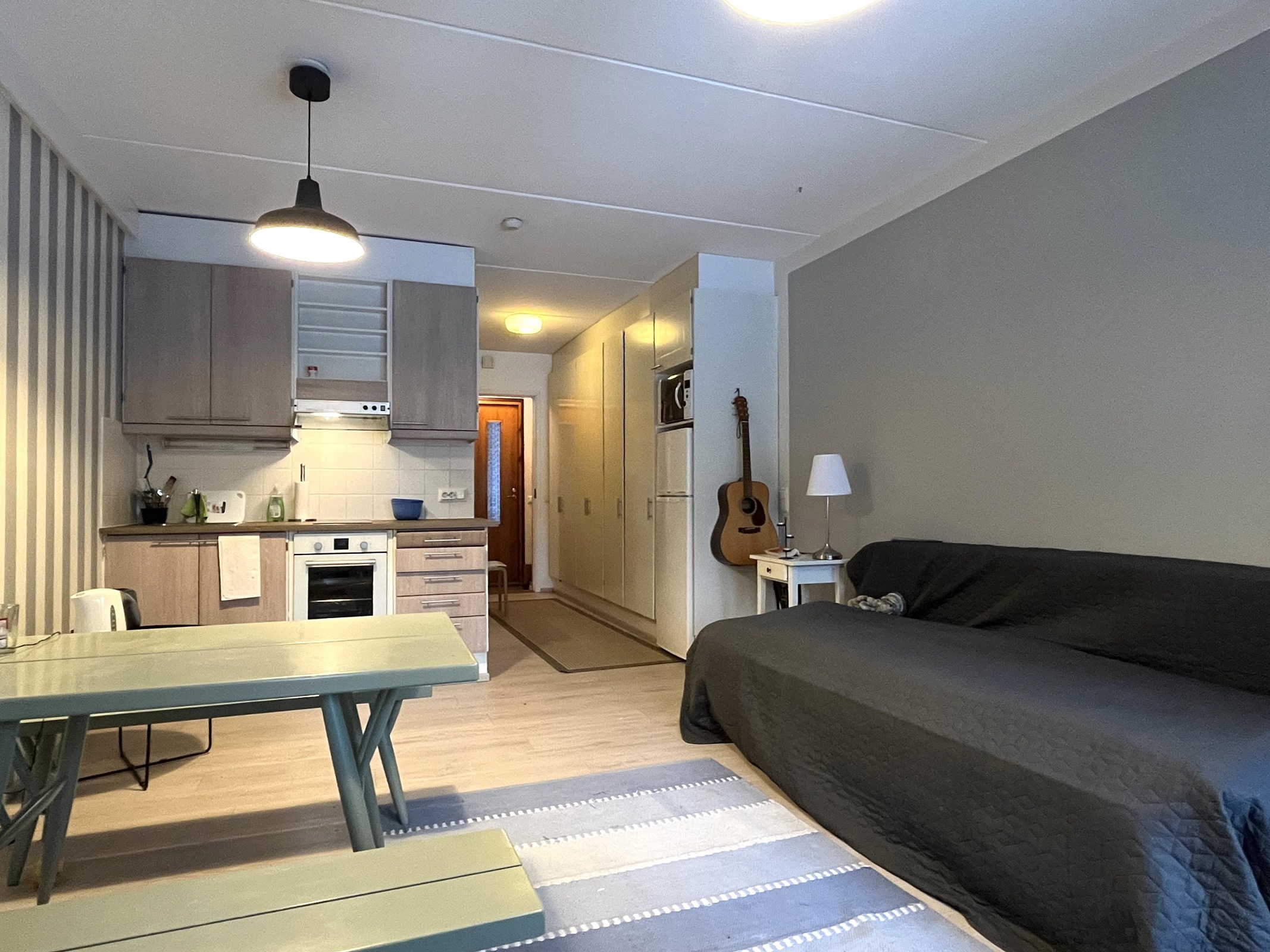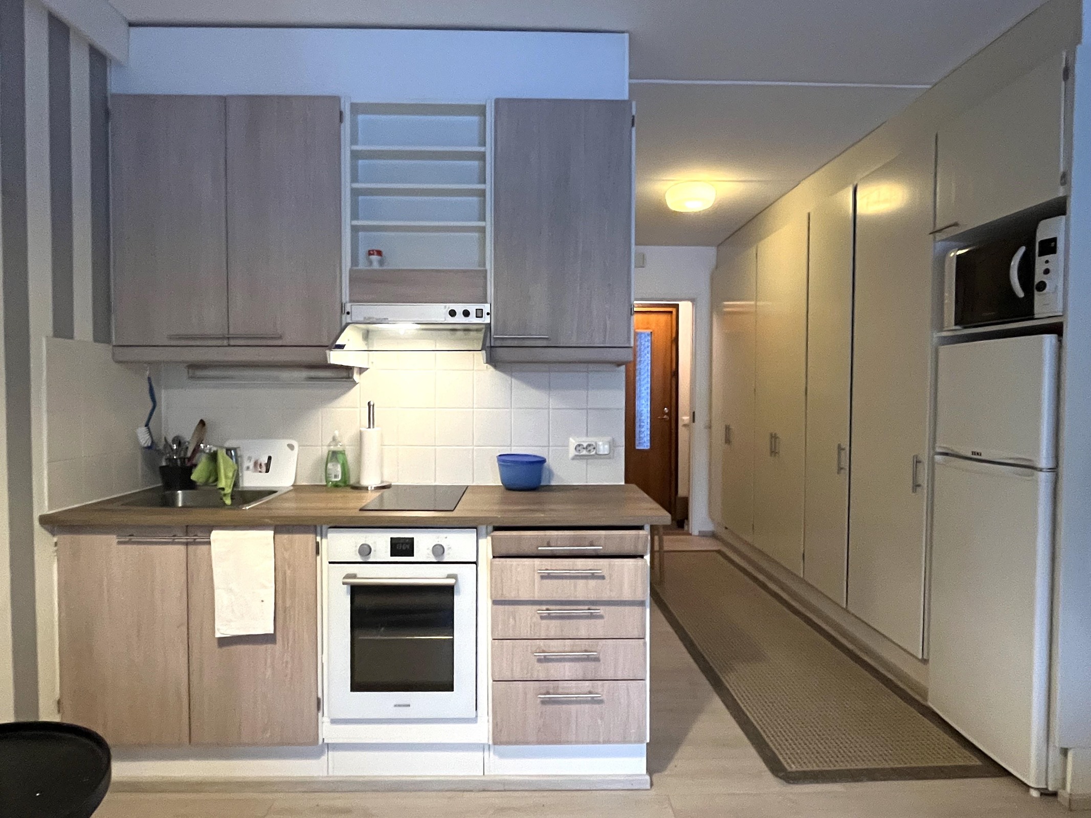 - Jenkkikaappi, erillisuuni, liesitaso, liesituuletin, kaapistot, kiinteät valaisimet.