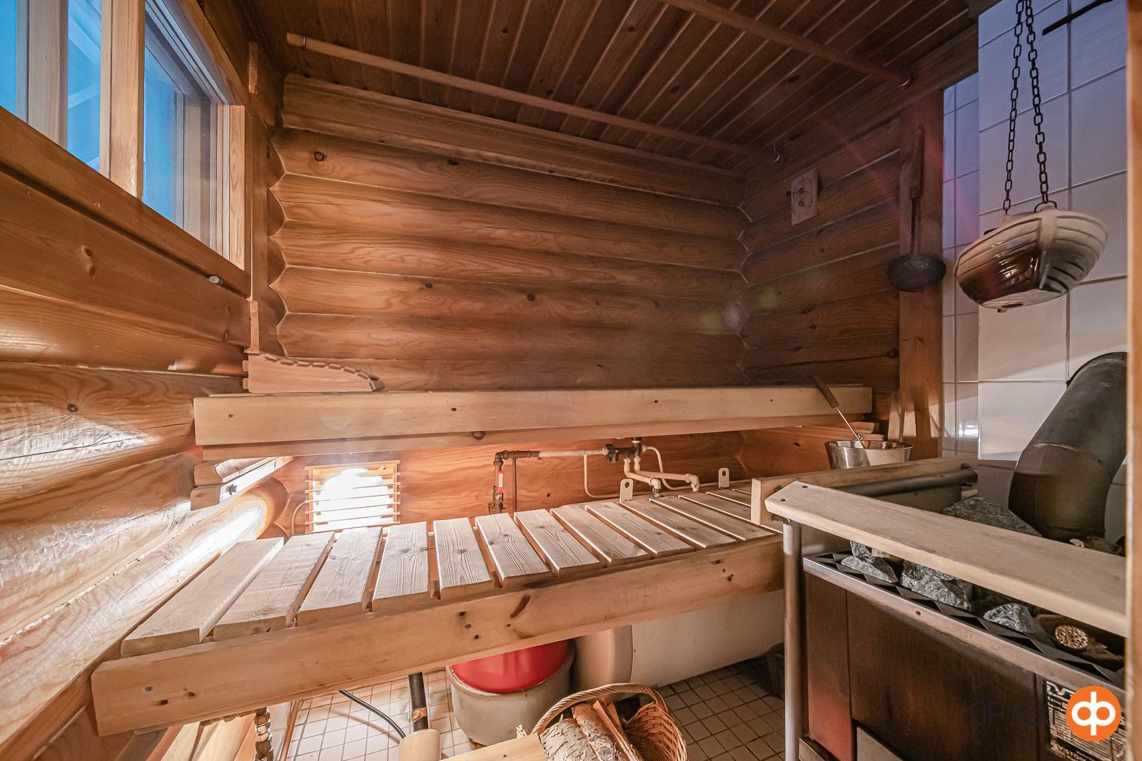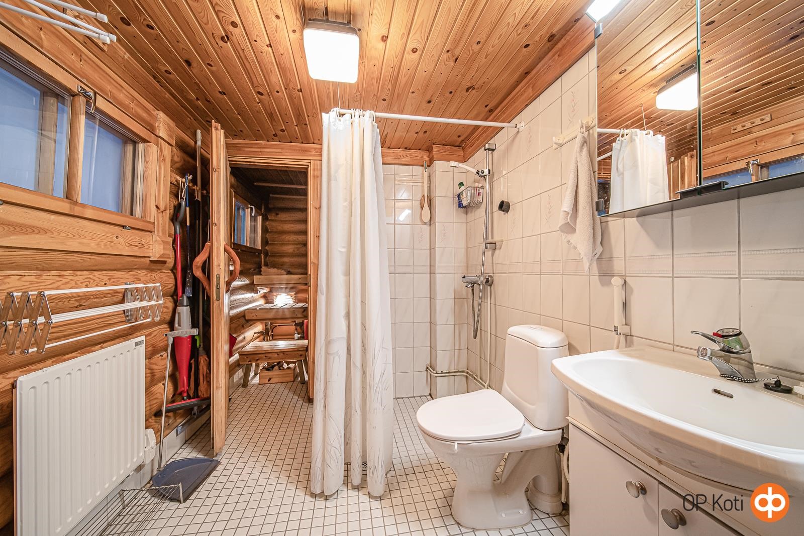- Sauna, puukiuas, kylpyhuone, suihku, peilikaappi, allaskaappi, lattialämmitys, kiinteät valaisimet. Lattia uusittu 2008