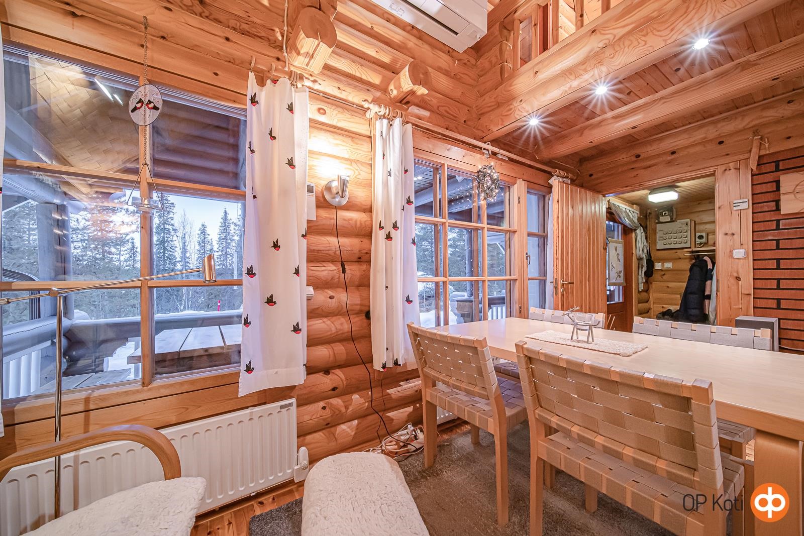 Hyvässä kunnossa pidetty hirsimökki kauniin luonnon keskellä Pallaksella. Olohuoneen ikkunoista avautuu upea maisema tuntureille. Mökki on hyväkuntoinen ja tiloiltaan toimiva. Mökki on rakennettu kahteen osaan, olohuoneessa voi rauhassa viettää aikaa häiritsemättä muita, ja makuuhuoneet sijaitsevat rakennuksen toisessa päässä. Mökistä löytyy kaikki tarvittava rentoon olemiseen ja rauhallinen ympäristö takaa nautittavan loman. Pallaksen luontoreitit ja rinteet ovat noin 20 km päässä ja hiihtoladut ovat lähellä. Tervetuloa tutustumaan tähän kauniin luonnon ympäröimään kohteeseen!