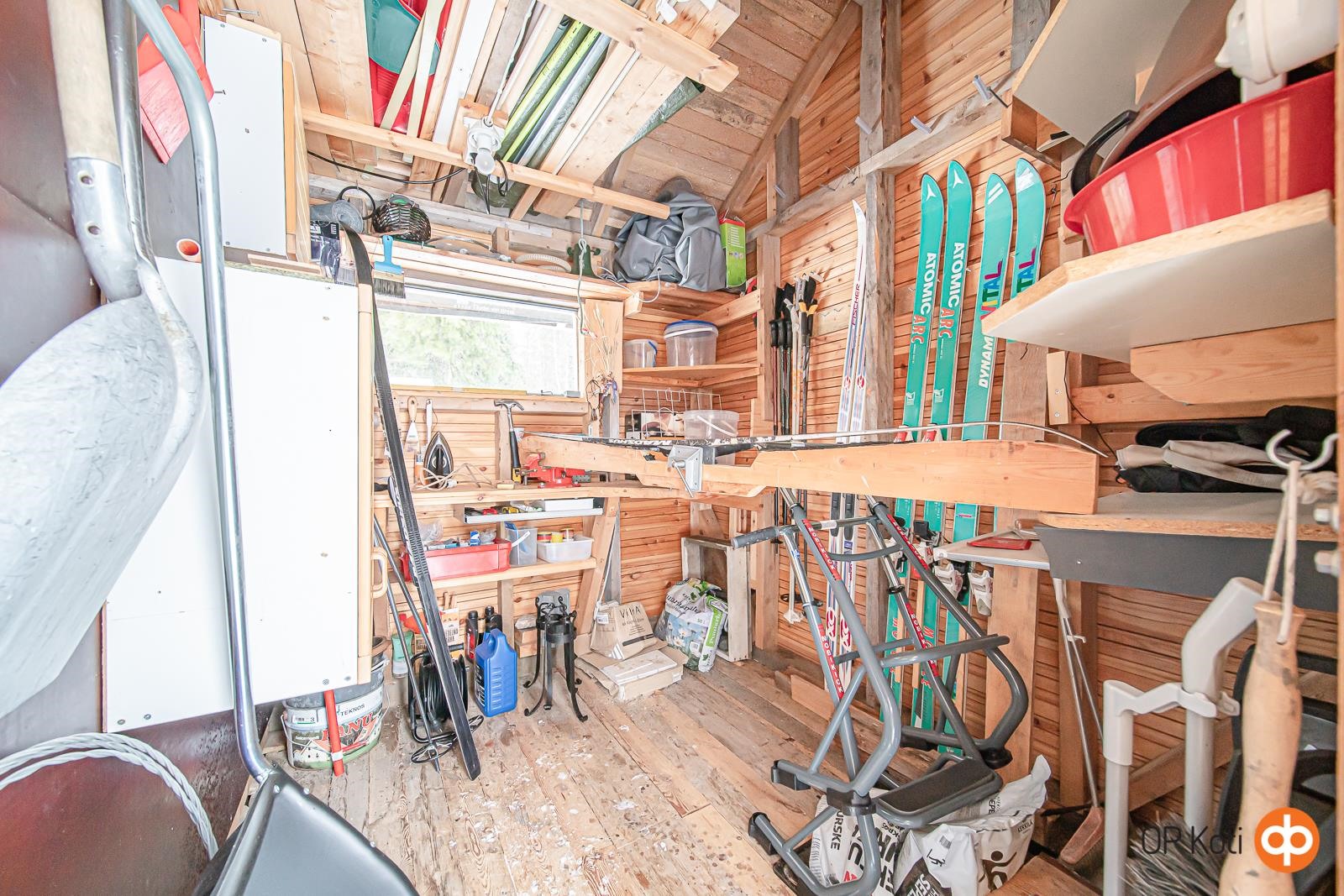 - Hirsi. Väliseinät sisällä hirttä, yksi seinä hirsipaneelia.
