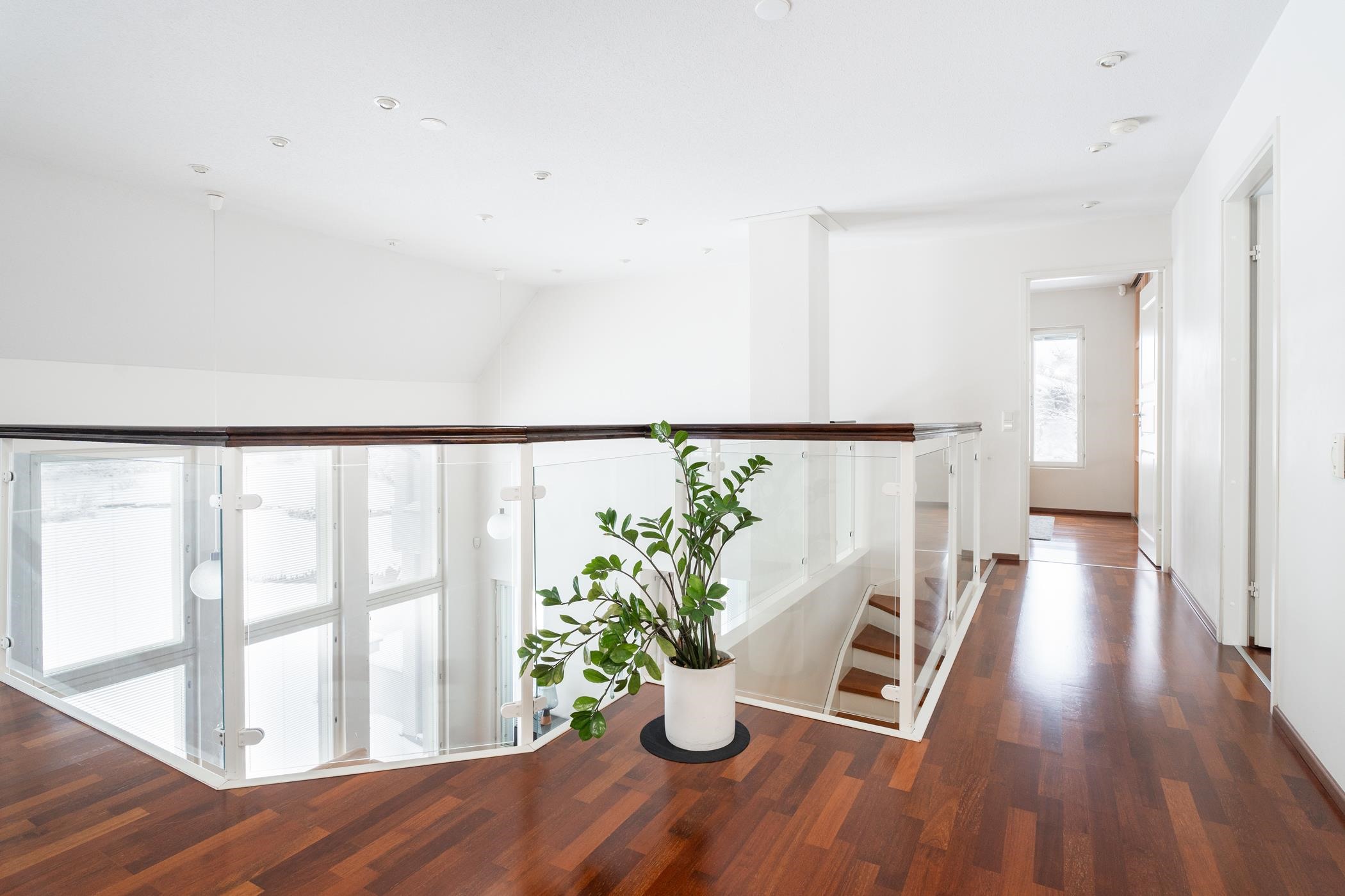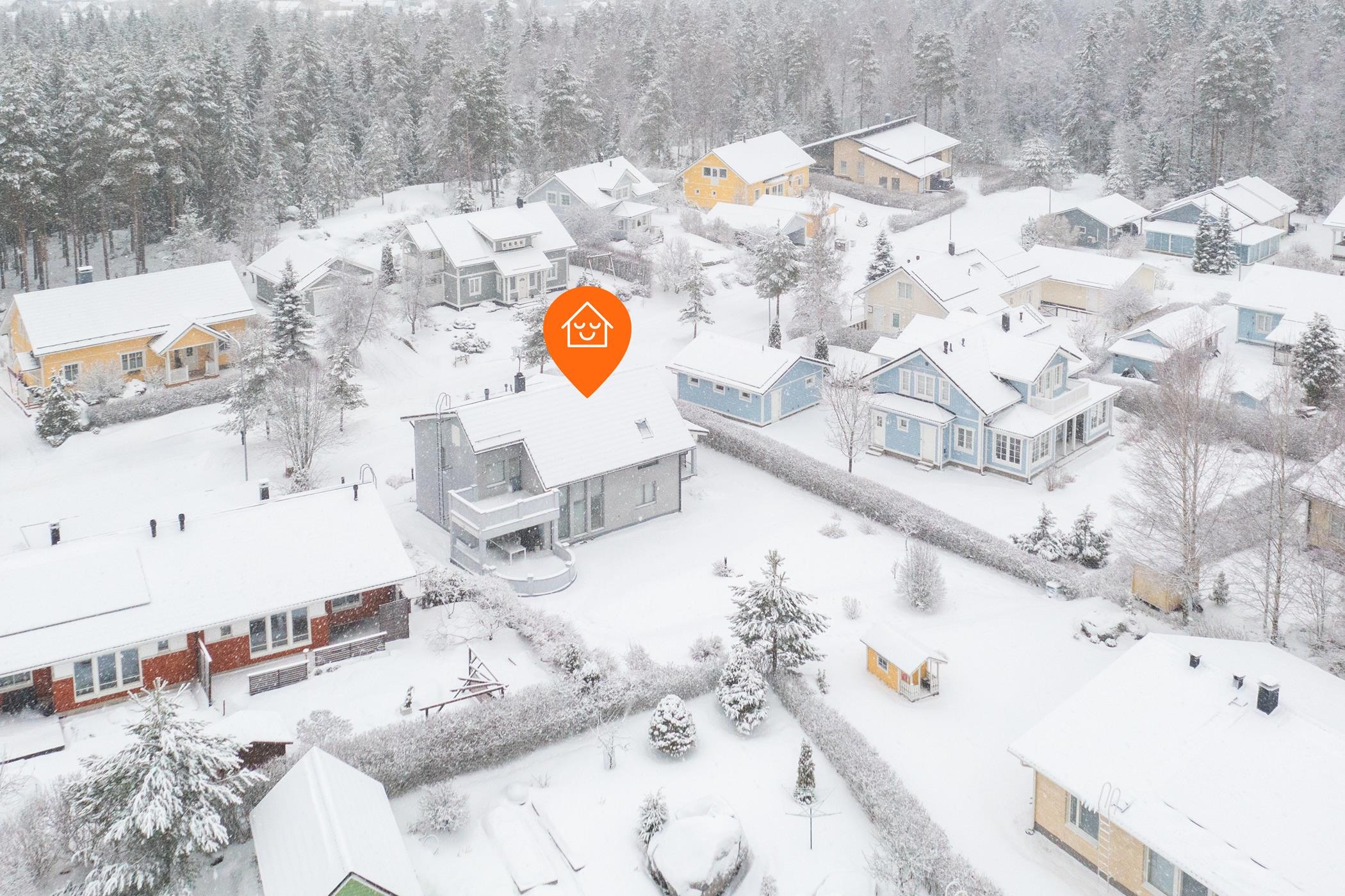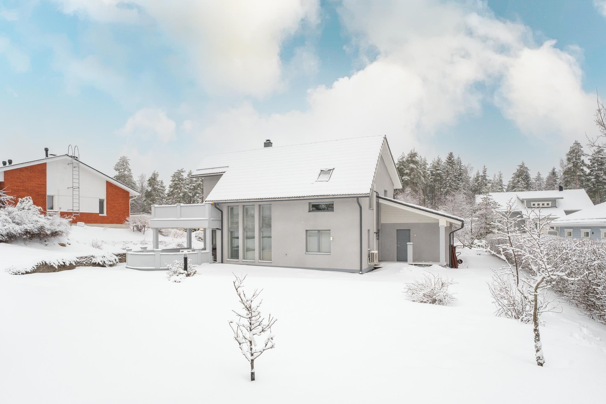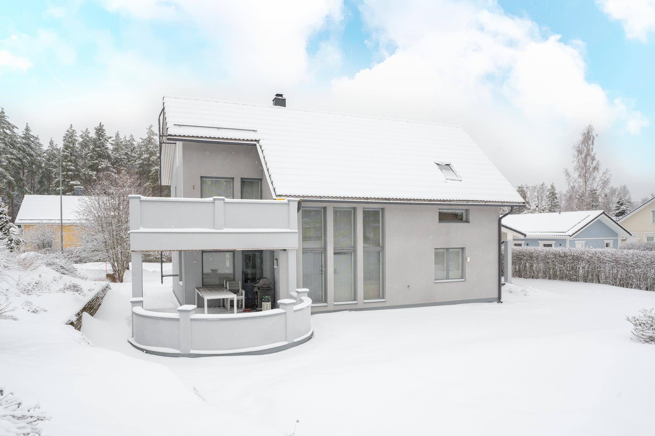 Yläkerrasta löytyy kolme isoa makuuhuonetta, erillinen wc ja arkiolohuone. Säilytystilaa tässä kodissa on runsaasti: hulppean päämakuuhuoneen yhteydessä on iso pukeutumistila ja käynti isolle parvekkeelle. Kahdessa muussa makuuhuoneessa on myös omat vaatehuoneet. Lisäksi talosta löytyy iso lämmin varasto, kaapistot ja lämmin autotalli. Talo sijaitsee 1060 m² omalla, helppohoitoisella ja huolitellulla tontilla. Vuonna 2005 valmistuneessa kodissa on maalämpö, mikä tekee asumiskustannuksista erittäin edulliset ja sähkönkulutus on vain noin 14 000 kWh vuodessa. Tämä koti on paitsi energiatehokas myös ympäristöystävällinen.