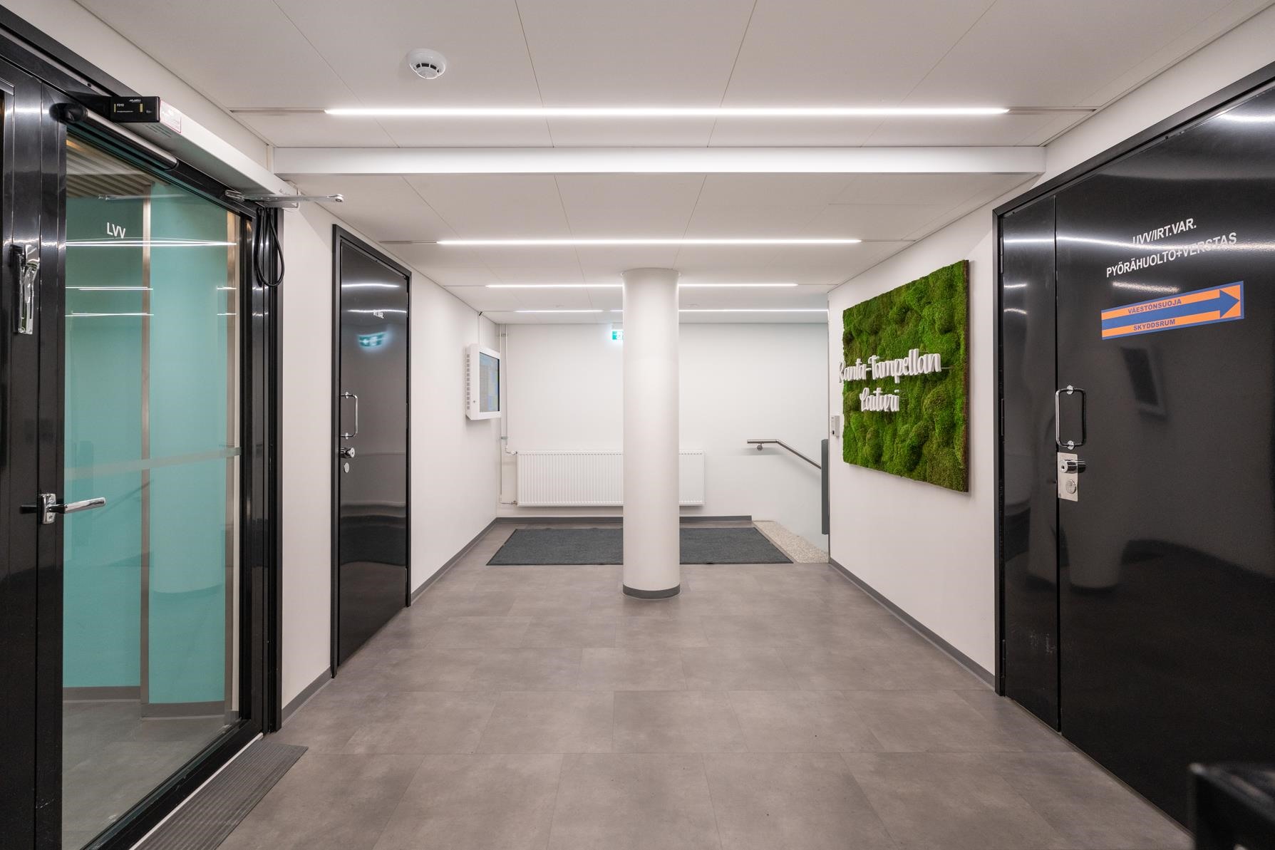 Taloyhtiö on esteetön, pyörätuolilla ja vaunuilla pääsee helposti kulkemaan. Pyykinkuivaushuoneen, vierashuoneen, sekä kattoterassin voi varata kännykkäsovelluksella määräajaksi omaan käyttöön.