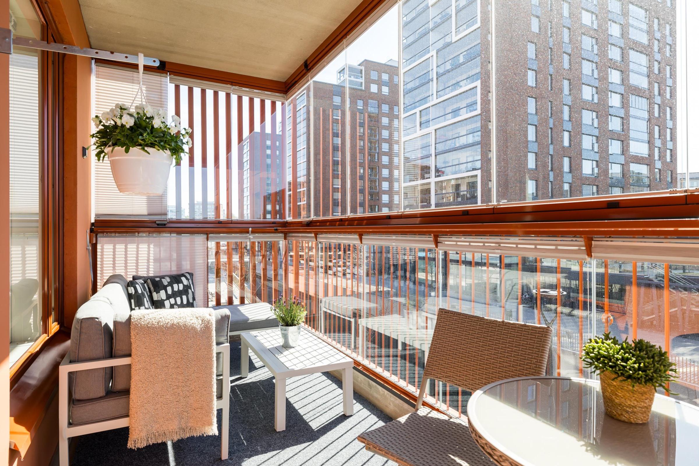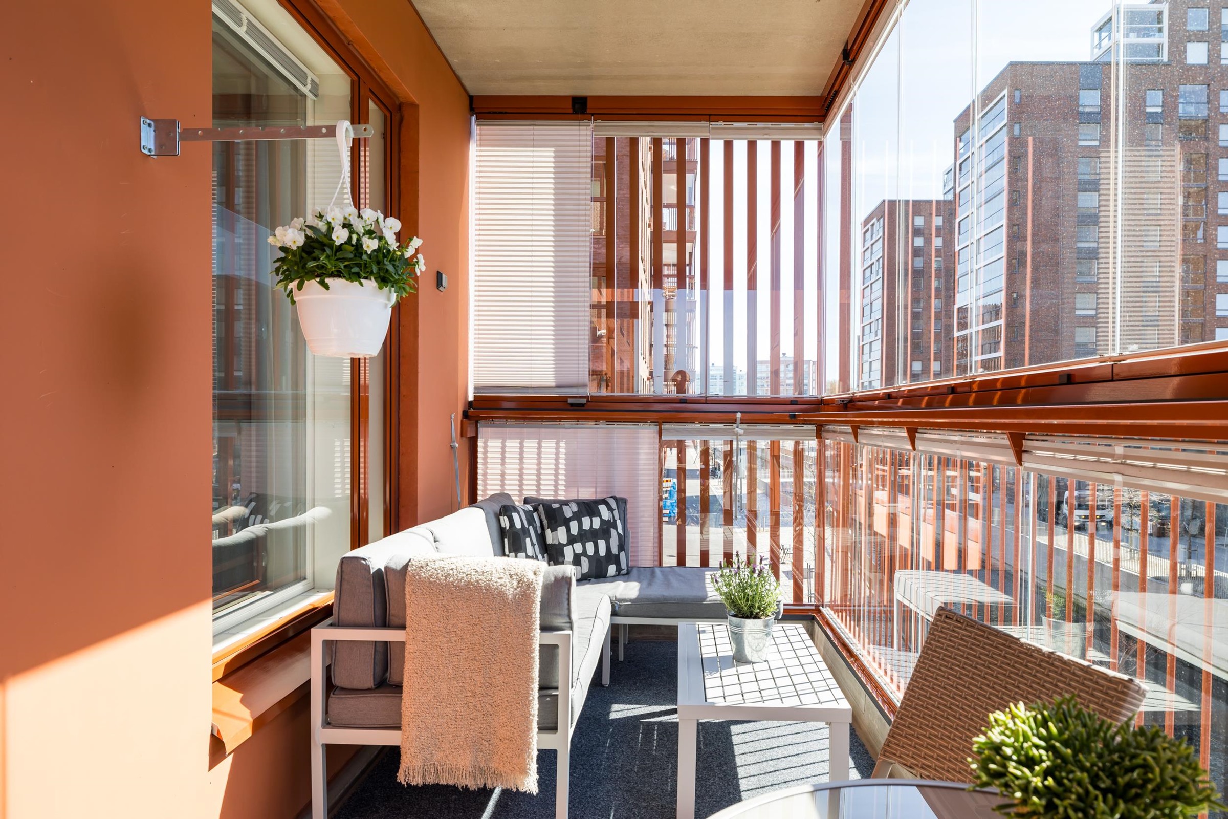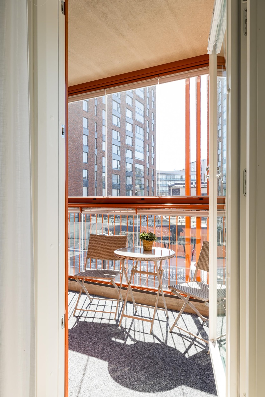 - Lasitettu parveke kanavan suuntaan / etelään. Makuuhuoneen ikkuna itään.