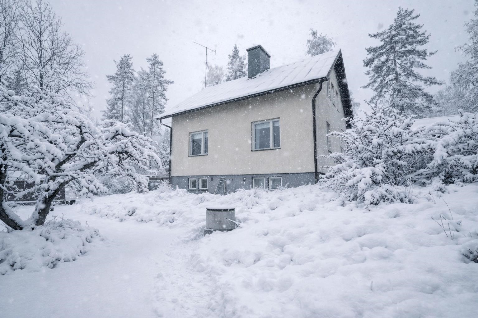 Asuintilat on jaettu fiksusti kolmeen kerrokseen, jotta jokaiselle löytyy oma paikkansa. Sisääntulokerroksessa odottavat keittiö tunnelmallisella puuhellalla (kyllä, se on juuri niin ihana kuin kuvittelet), ruokailutila, viihtyisä olohuone sekä erillinen wc, koska kukaan ei halua jonottaa aamuisin. Yläkerrassa sijaitsee kaksi reilunkokoista makuuhuonetta sekä toinen wc, joka tekee arjesta yllättävän sujuvaa. Kellarikerros puolestaan tarjoaa monikäyttöisen harrastehuoneen, kylpyhuoneen ja saunan siis täydellisen paikan huuhtoa pois päivän kiireet ja ehkä muutama stressikin.