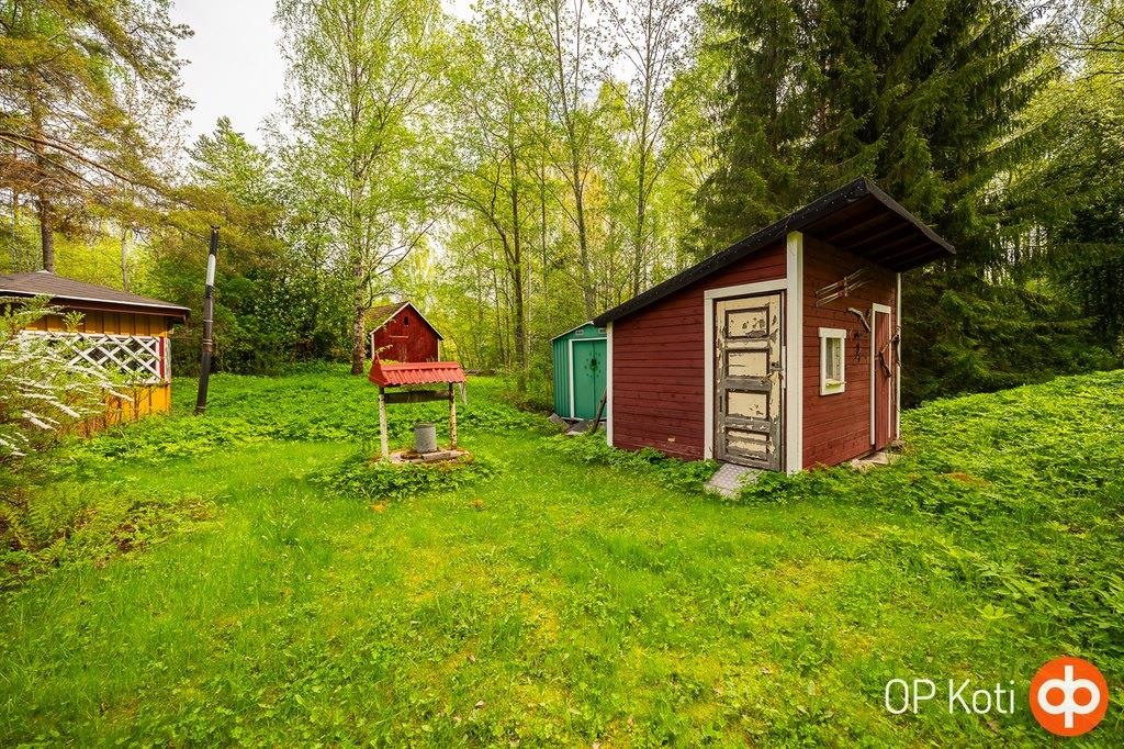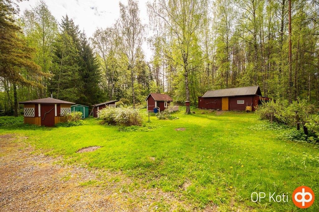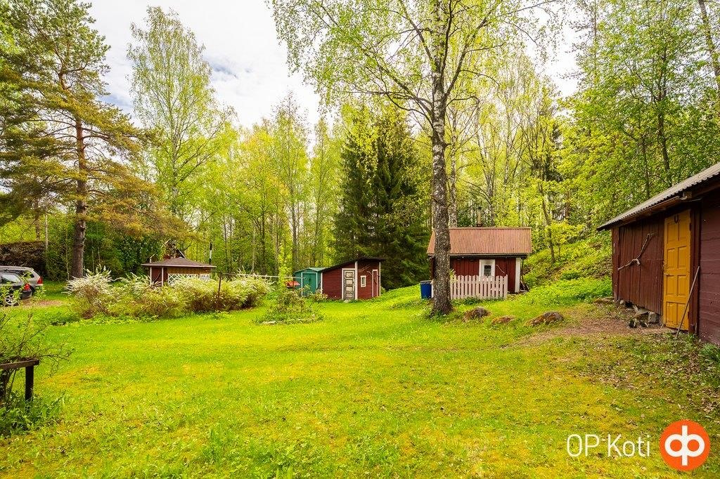 Pihapiiri tarjoaa monipuoliset tilat vapaa-ajan viettoon: grillikatos, verstas ja huvimaja täydentävät kokonaisuuden. Talo on kuntotarkastettu.