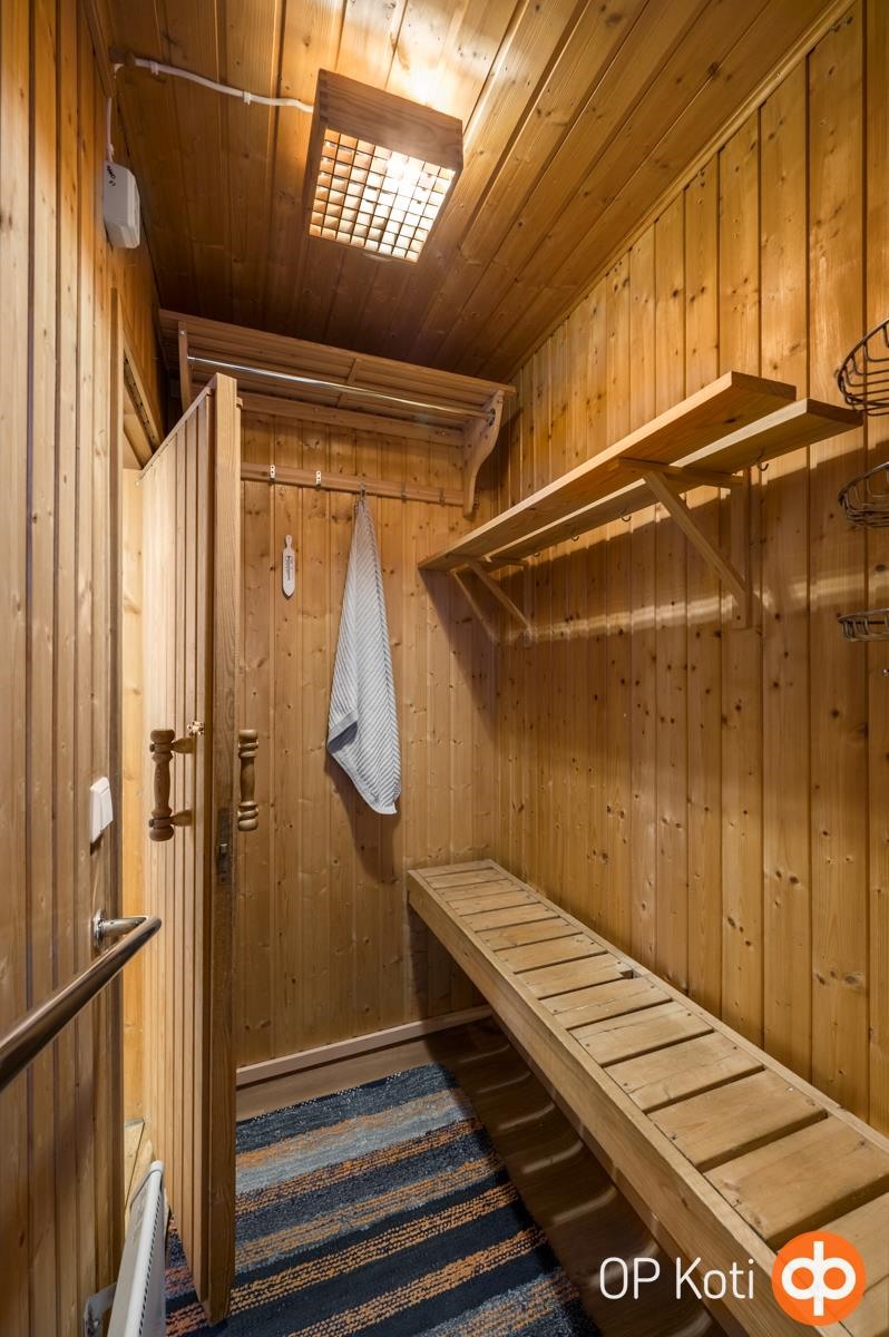 - Sauna asuinrakennuksessa sähkökiuas, pihasaunassa puukiuas, kylpyhuone, suihku, peilikaappi, pesukoneliitäntä eteis-/huoltotilassa, lattialämmitys sähköinen.