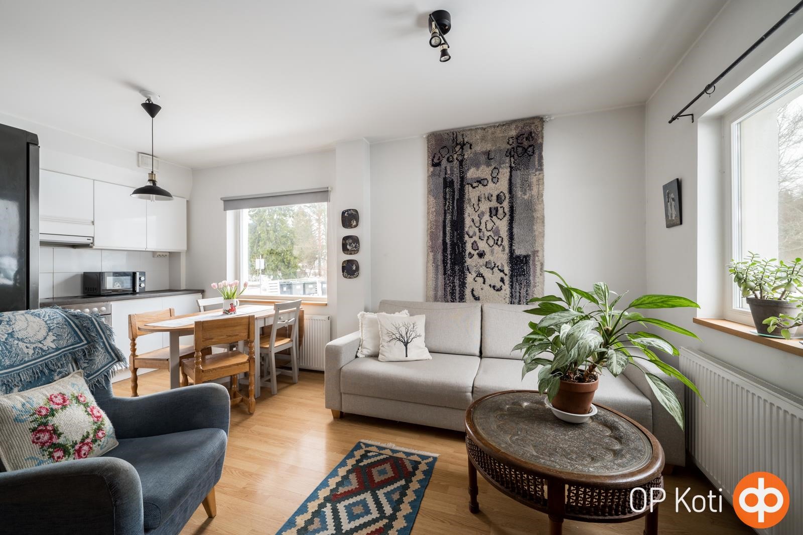 Tämä viihtyisä kaksio sijaitsee pienessä, vain kahdeksan asunnon taloyhtiössä, joka on saneerattu vanhasta kaupparakennuksesta vuonna 2011. Asunto on maantasalla ja tarjoaa oman terassin, jolta voi nauttia ilta-auringosta.