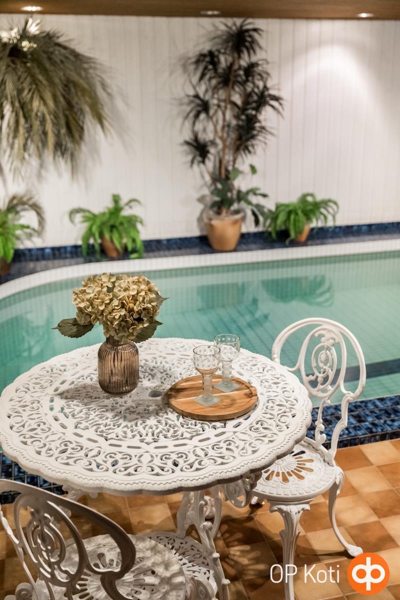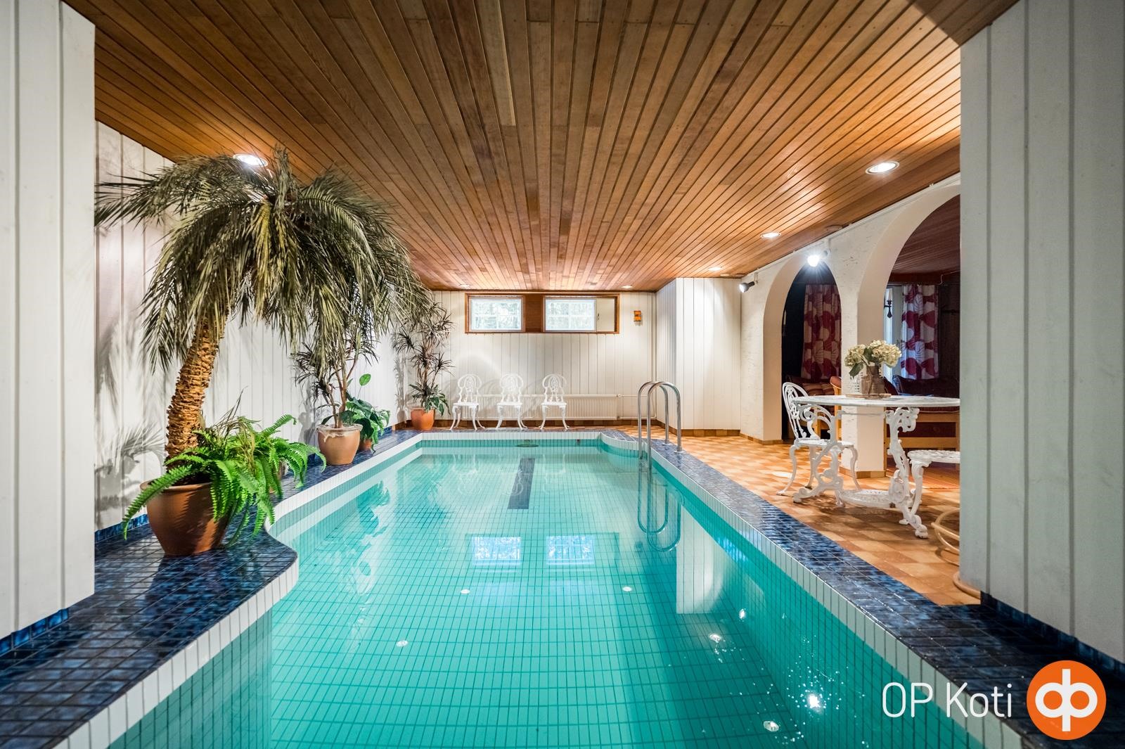 Talossa on kaukolämpö, ja saunaosaston yhteydessä sijaitsee uima-allas vastavirralla. Lisäksi pihapiirissä on erillinen kahden auton autotalli.