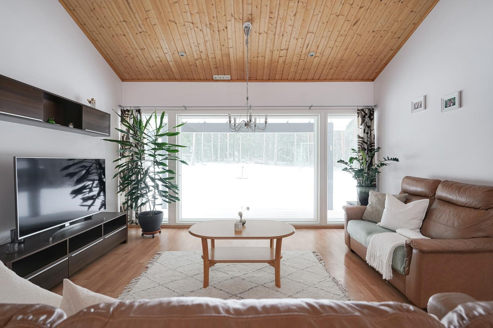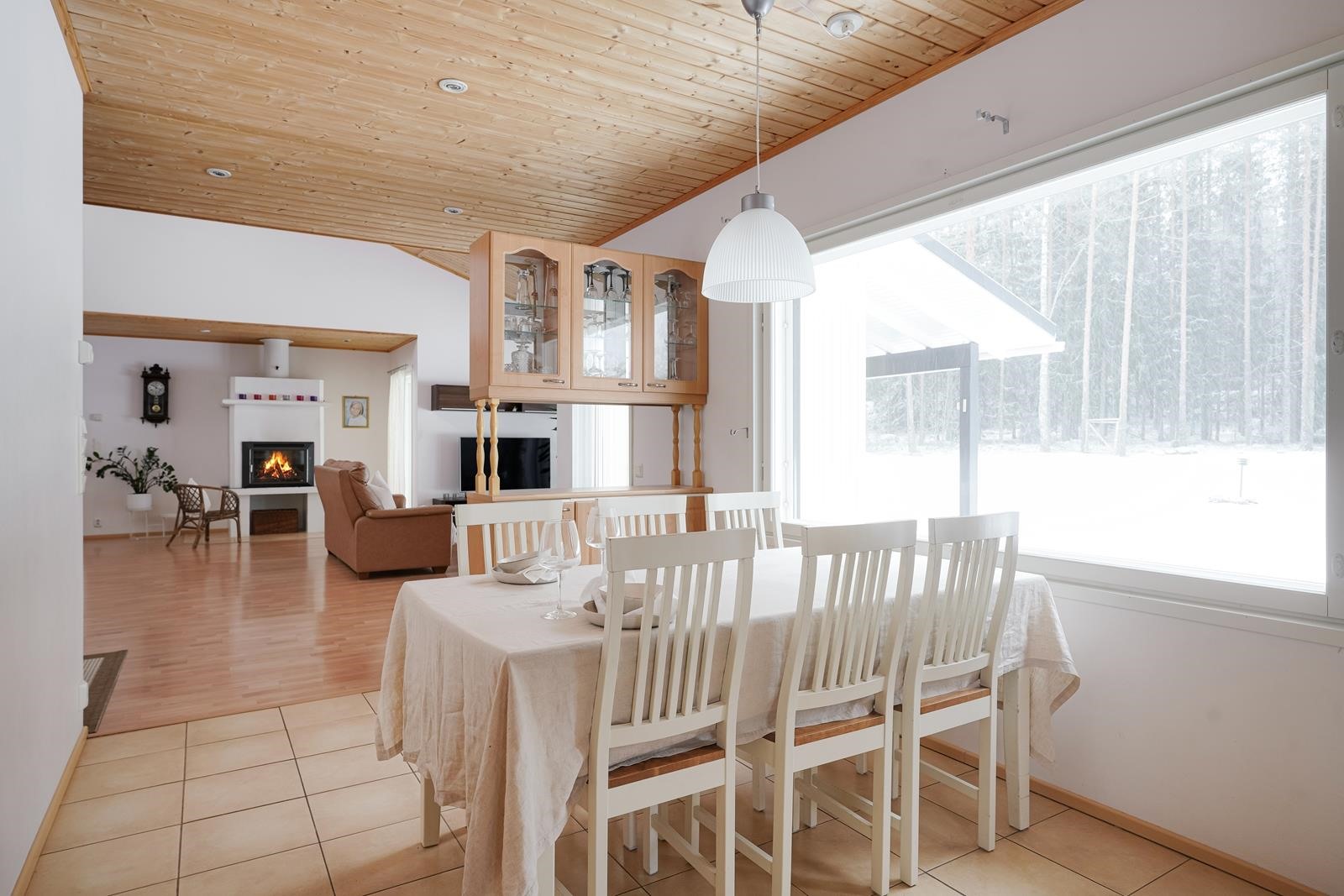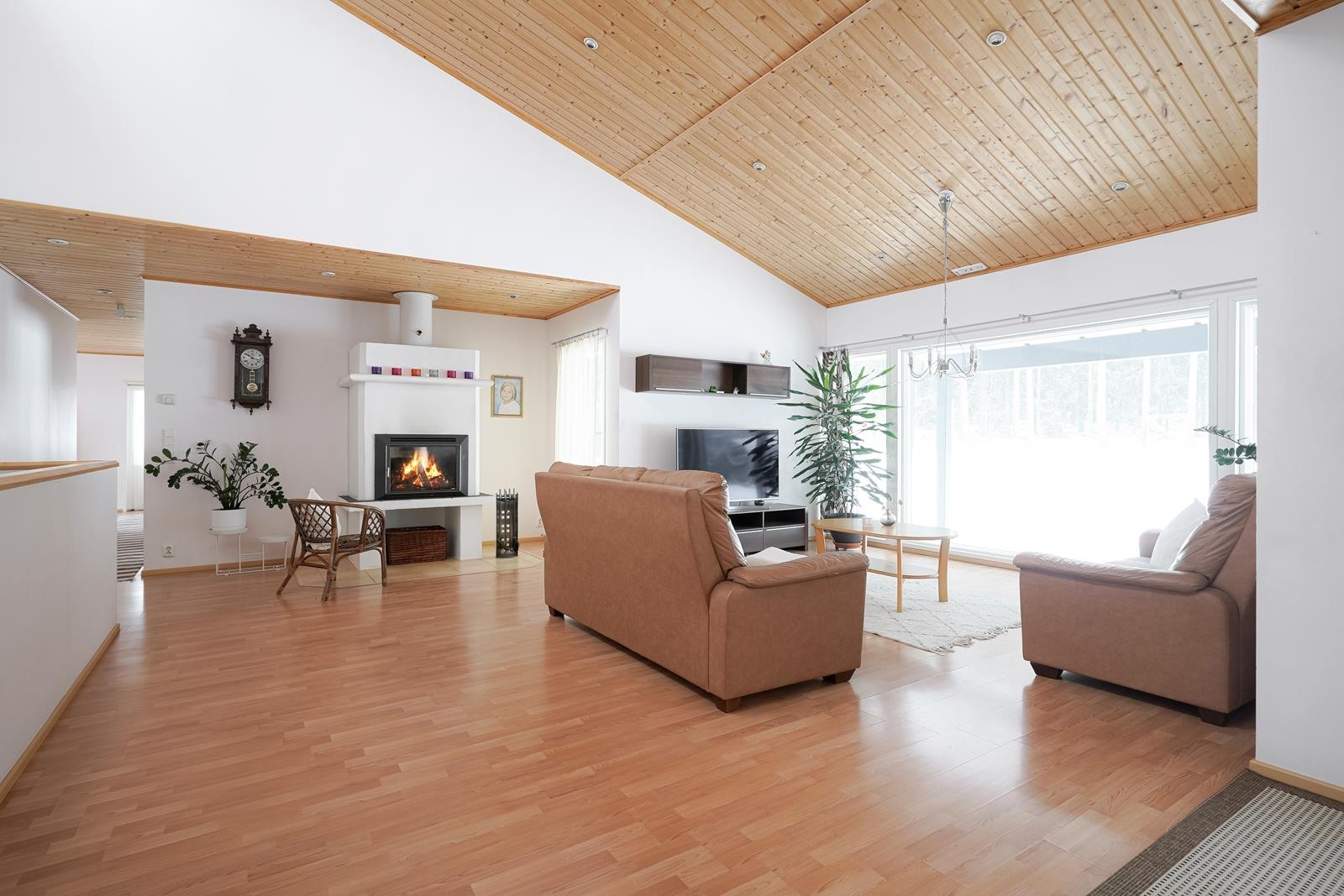 Tähän taloon astuessasi tunnet lämmön, valoisuuden ja tilan tunnun! Sisäänkäynti on suoraan ylempään kerrokseen. Tämän kerroksen olohuone on tilava ja huonekorkeus mieletön. Isojen ikkunoiden ansiosta koko yläkerta tulvii luonnonvalosta. Yläkerran olohuoneen lisäksi täällä löytyy tv-huone, johon saa vaikka pienen jumppatilan tai pelihuoneen laitettua. Olohuoneesta löytyy myös kaunis takka.