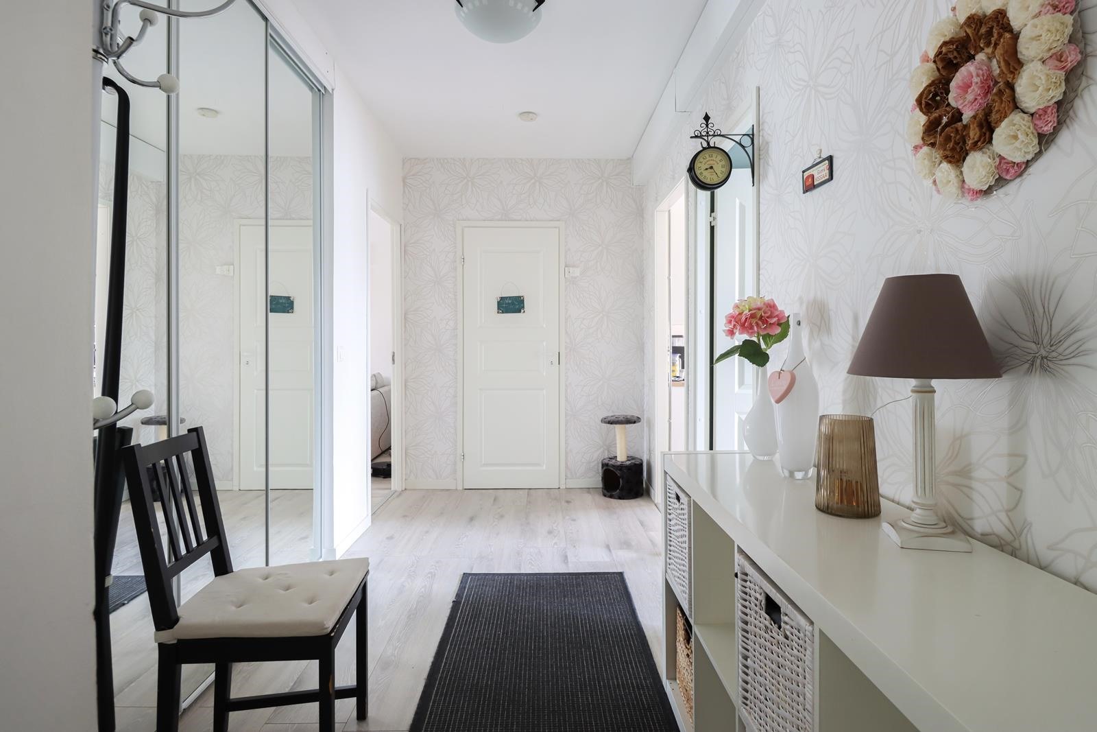 Todella siisti ja toimiva 3. kerroksen koti Myllymäessä. Vaaleasävyiset lattiat ja harmoniset seinäpinnat. Keittiö remontoitu 2010 ja kylpyhuone 2011. Lasitettu parveke lounaaseen, eli auringon kannalta parhaaseen suuntaan.