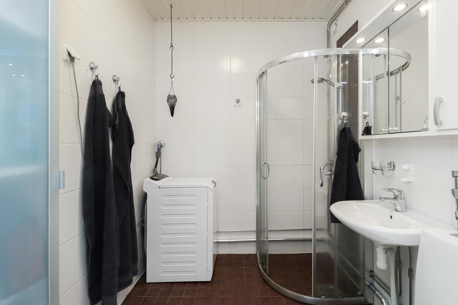 - Kylpyhuone, suihku, peilikaappi, pesukoneliitäntä, lattialämmitys. Kylpyhuone remontoitu 2011.