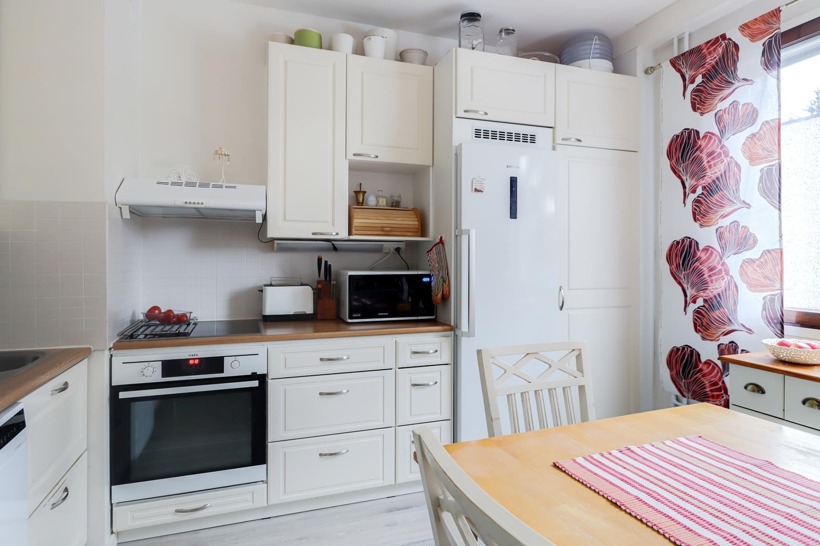- Jääkaappi, erillisuuni, liesitaso keraaminen, liesituuletin, astianpesukone. Keittiö remontoitu 2010