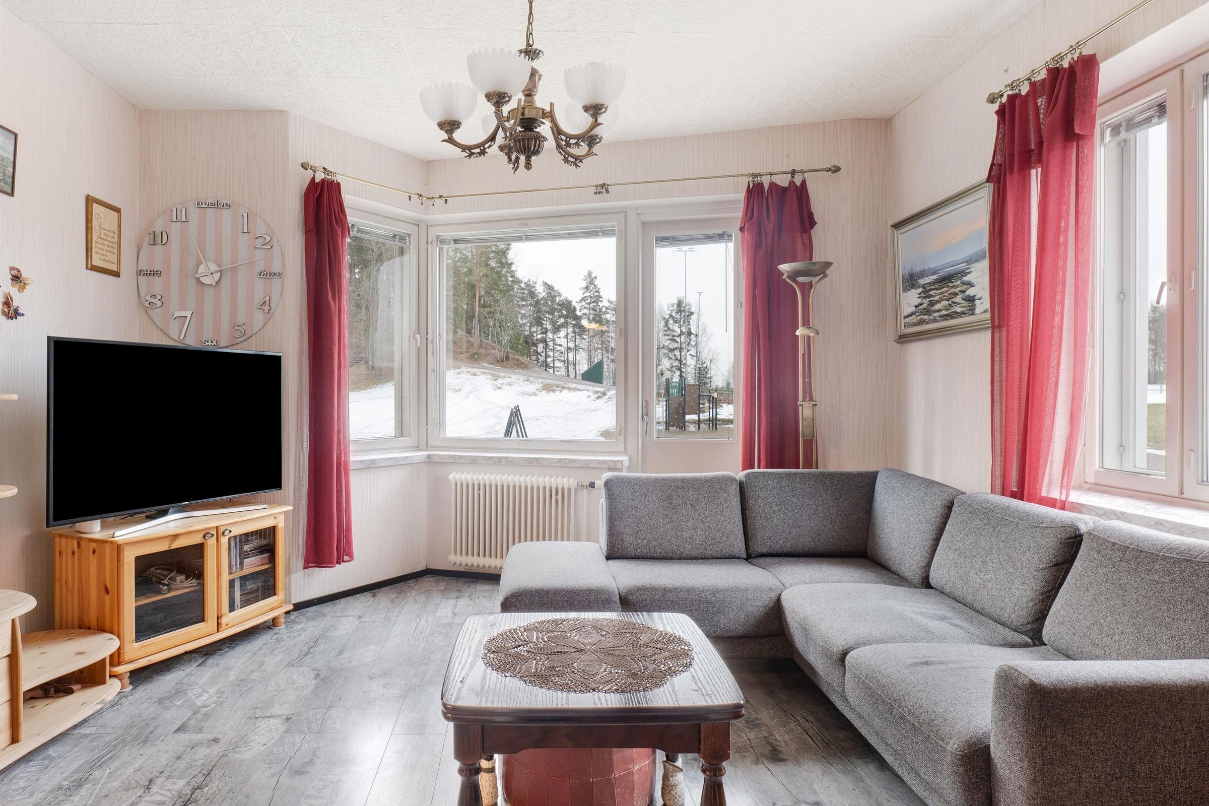Tämä kaunis harjakattoinen kerrostalo rakennettiin aikanaan Högforsin valimon konttoristien asuintaloksi. 1950-luvulla talot tehtiin vielä käsityönä, paikan päällä muuraten. Tässäkin kodissa on paljon tuon ajan viehättäviä yksityiskohtia, kuten syvät ikkunapenkit ja kauniit pariovet olo- ja makuuhuoneen välissä. Kauneus ulottuu myös pintaa syvemmälle, sillä esimerkiksi monien pelkäämät putkiremontit on jo tehty!
