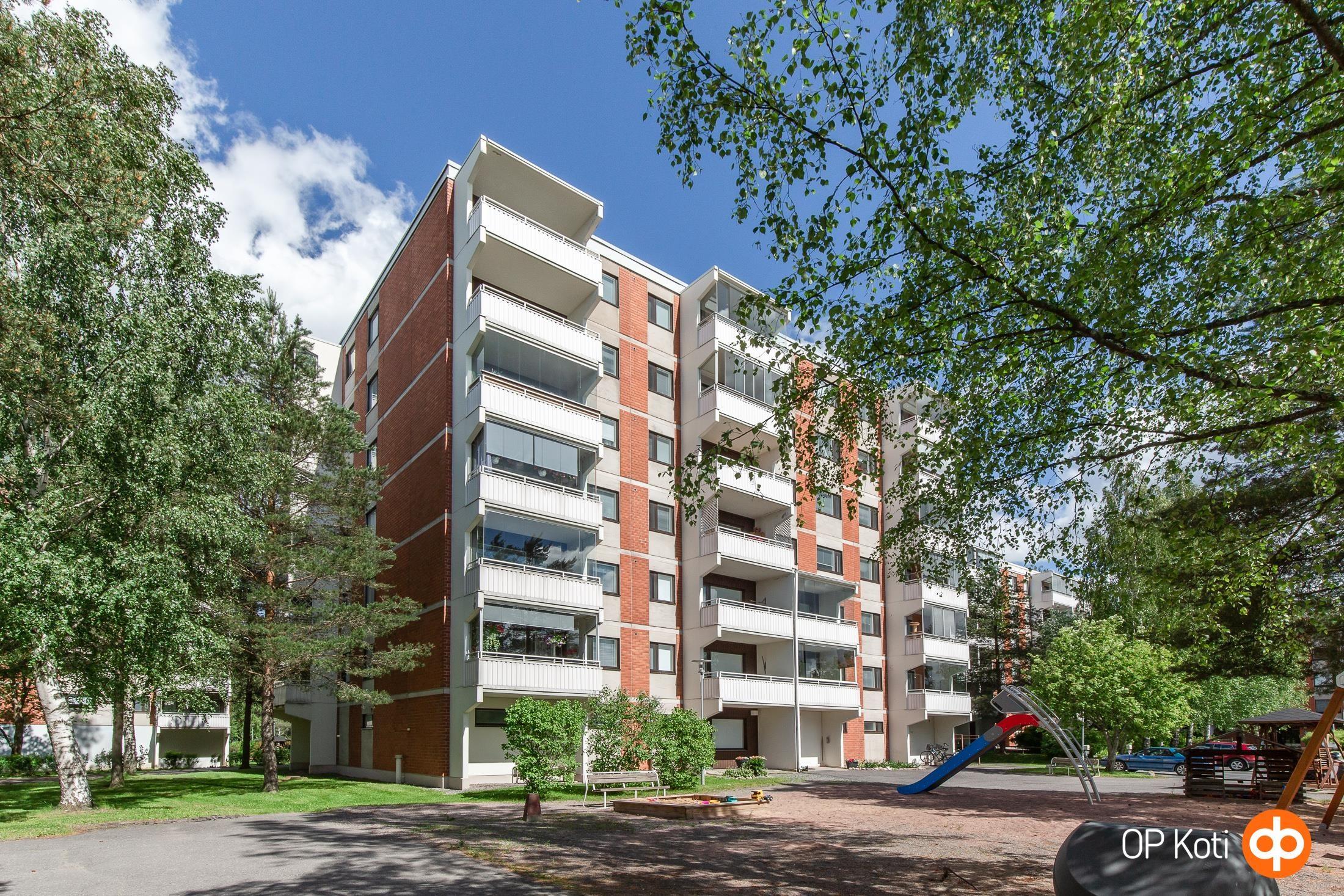 Reilun kokoinen kerrostalokolmio hissitalon kolmannessa kerroksessa. Asunto on kunnoltaan lähes alkuperäisessä asussaan. Olohuone on reilun kokoinen ja sieltä on kulku lasitetulle parvekkeelle. Reilun kokoinen vaatehuone sijaitsee oikealla puolella heti eteiseen saavuttaessa. Makuuhuoneet ovat hyvän kokoiset. Kylpyhuone on toimivan kokoinen ja oma saunakin löytyy. Taloyhtiötä on hoidettu vuosien varrella - käyttövesiputket, ikkunat ja hissikin on uusittu. Sijainti on hyvä, kävelyetäisyydellä on ruokakauppa ja keskustaan sekä isoihin kauppakeskuksiin matkaa parisen kilometriä. Reilun puolen kilometrin päässä sijaitsee monitoimikeskus Akvarelli, jossa sijaitsee koulu ja päiväkoti.